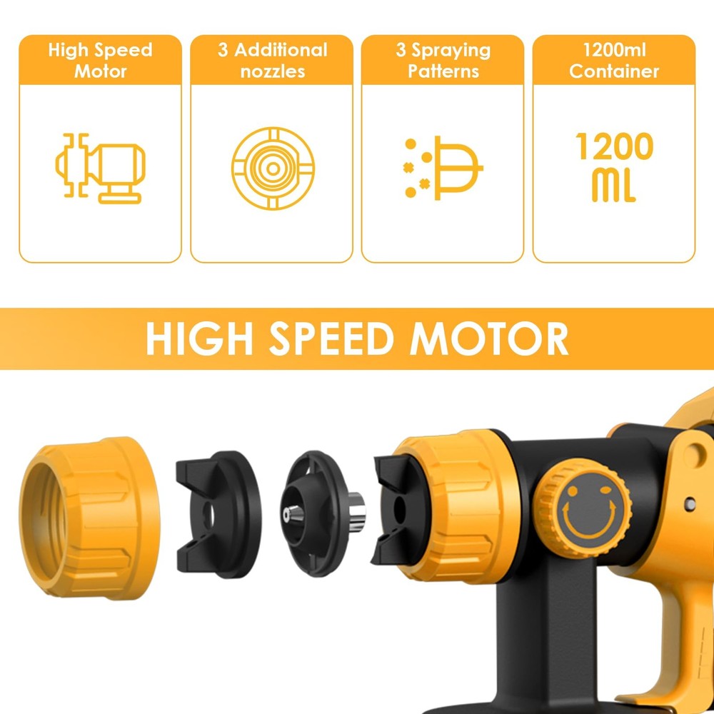 Introducing our Cordless Paint Sprayer, a versatile and convenient tool designed to make your painting projects a breeze. This sprayer is compatible with DE-WALT/MILWAUKEE batteries, allowing you to use it both indoors and outdoors without worrying about cord length or socket safety. With its wireless functionality, you can easily move around and use it wherever you need. Equipped with four different spray nozzles, this paint sprayer enables you to pair it with various types of paints for different applications. Additionally, a professional user manual is provided, making it effortless for users to obtain the correct dilution ratios. Featuring three spraying modes, this sprayer caters to different angles and requirements, giving you the flexibility to achieve professional-quality results at home. Its user-friendly design makes it simple and worry-free to operate, even for beginners. To enhance convenience, we have added a hanging hook design, allowing for easy storage when not in use. Our aim is to provide you with a seamless and enjoyable shopping experience, both through our product and our customer service. If you have any questions or concerns, our team is committed to addressing them with a positive attitude and working together to overcome any difficulties. We hope that our Cordless Paint Sprayer will bring you joy and ease as you embark on your painting ventures. 【Cordless Paint Sprayer】Compatible with Dewalt 20V MAX batteries and other Cordless Tool Battery Packs with the similar port(Battery NOT Included). The portable desgin without troublesome of cords and outlets, you can enjoy the convenience of spraying operation everywhere indoor and outdoor. 【Adjustable Spray Nozzles】:This electric spray paint machine comes with 4 nozzles, measuring 3.0 mm, 2.0 mm, 1.5 mm, and 1.0 mm.Easily switch between different spray modes to accommodate various materials and surfaces,ensuring optimal coverage and finish with every use.Made of pure copper, these nozzles not only prevent paint corrosion but also extend the lifespan of the spray machine. 【3 Spray Patterns】cordless paint sprayer equipped with 3 adjustable spray patterns to meet various spraying scenarios and materials. Such as garden,fence,furniture,walls,doors,windows,household appliances,auto parts spraying,furniture and wood product renovations,etc. 【Easy to Use & Clean】 Simple installation for everyone. It's easy to clean by soaking the parts into the water(paint thinner) and using the brush and needle to clean the left painting. Note:The Motor device is forbidden to use water clean. 【What You Will Get】1X Paint Sprayer, 4X Nozzles, 5 X Paint Filters, 1X Filter Funnel, 1X Nozzle Cleaning Needle, 1X Cleaning Brush,1X User Manual. If you have any questions on your product or order,please contact us via your order.