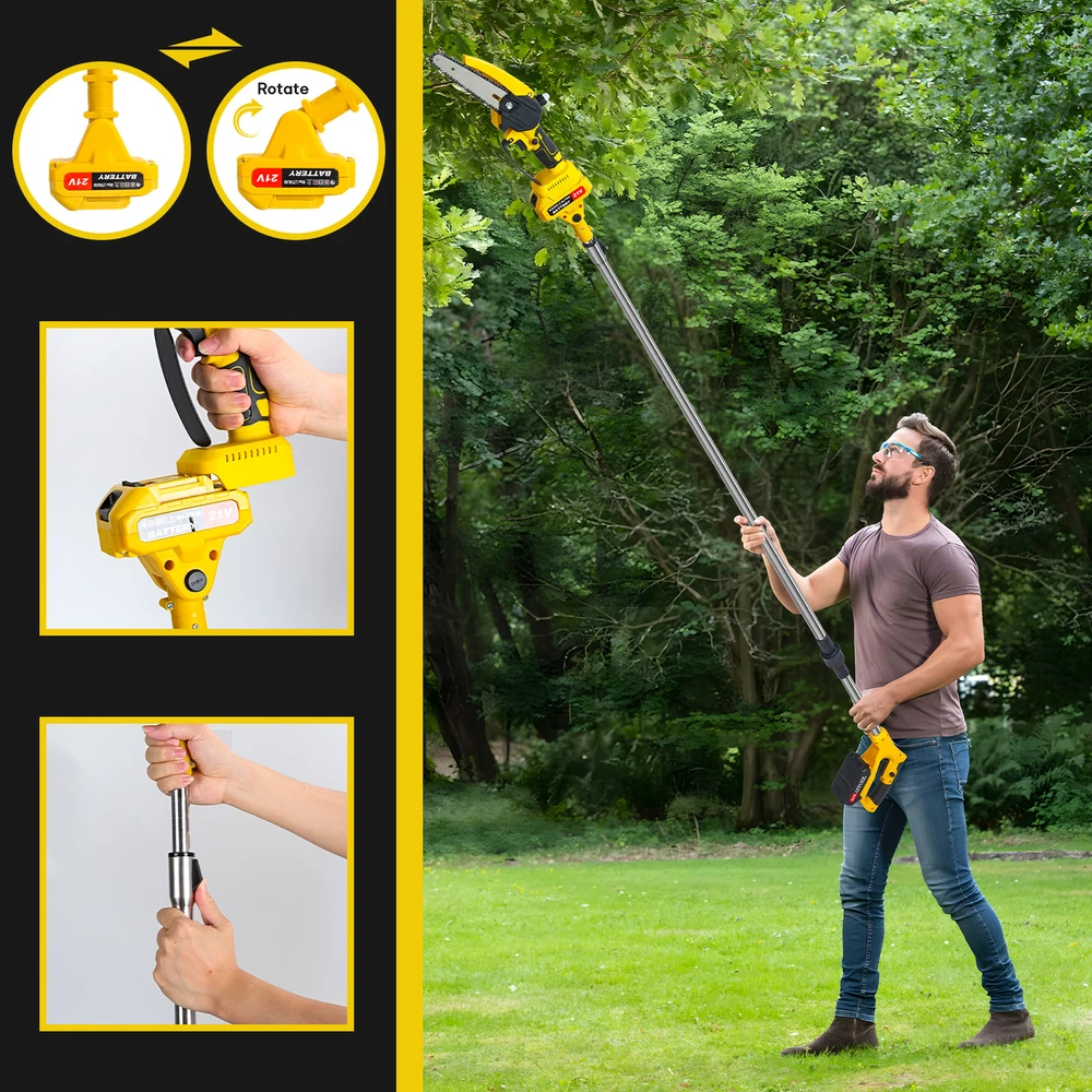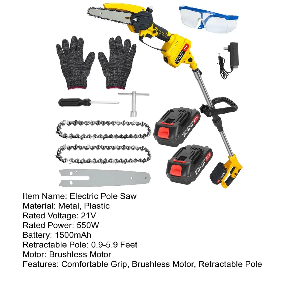 Other | | | | | | Categories Other > > > > > > > Cordless Pole Saw & Mini Chainsaw Combo for Tree Pruning > > > > > > < < < < < < < < < < < < < < > > > > > > > > > > > > > > Description : 0.9-5.9ft Retractable Extension Pole : The cordless pole saw has many new features: the extension pole can be connected to this handheld chainsaw, allowing you to extend up to 0.9-5.9ft feet for high branches trimming, the back of beds/borders and generally hard-to-reach areas, add the height of an adult (6ft) and you can reach 11.9 feet. Upgrade Sharp Chains & Brushless Motor : Professional brushless chainsaw uses an upgraded deeply quenched guide chain and brushless motor, which is extremely sharp and durable, enjoying a longer running time and a more efficient experience. Premium Material : The guide plate of the electric cordless chainsaw is forged from high hardness metal which is sharp. And the plastic shell offers you a comfortable grip. Outstanding Battery Life : Equipped with 2x 1.5Ah Batteries, the rechargeable electric chain saw ensures you can work for extended periods without interruptions. Enjoy the freedom of cordless operation with our cordless pole saw. Wide Applications : The cordless pole saw is an excellent alternative for all kinds of the household, garden, yard, or farm projects. It is suitable for wood cutting, tree limbs chopping, branch pruning, gardening and more. Item Name : Electric Pole Saw Material : Metal, Plastic Rated Voltage : 21V Rated Power : 550W Battery : 1500mAh Retractable Pole : 0.9-5.9 Feet Motor : Brushless Motor Features : Comfortable Grip, Brushless Motor, Retractable Pole Size Details : L: 30cm-180cm/11.82"-70.92", W: 15cm/5.91", H: 15cm/5.91" (Approx.) Notes : Due to the light and screen setting difference, the item's color may be slightly different from the pictures. Please allow slight dimension difference due to different manual measurement. Package Includes : 1 x Electric Pole Saw 1 x Telescopic Extension Pole 2 x Batteries 1 x Charger 1 x User Manual 2 x Chains 1 x Guide Plate 1 Pair of Gloves 1 Pair of Goggles Payment Shipping Return Contact Us 1. We acceptPayPal,Credit card,Debit card,Apple Pay,Google Pay ect as payment. 2. Please be sure your shipping address is correct before make a payment. 1. We ship to your eBay or Paypal address. Please make sure your eBay and Paypal address is correct before you pay. 2. Items will be shipped within 1-7 business days when we received payment. 3. Delivery time depends on destination and other factors. 4. International buyers please note: a. Import duties, taxes and charges are not included in the item price or shipping charges. These charges are buyer's responsibility. We will try our best to reduce the risk of the custom duties. b. Please check with your country's customs office to determine what these additional costs will be prior to buying. 30 DAY RETURN POLICY Customer Satisfaction is our main goal, all items are quality checked prior to being listed and sent out. Please contact us prior to leaving any Negative Feedback and allow us to make things right! If you not satisfied with it please include the original packaging and return form & tracking number otherwise the return may take longer to process the refund. Once we have received the item and inspected it we will issue the refund or resend within 1-7 business days. Please contact us in time if any enquriy under any circumstances. We greatly appreciate your positive feedback and we'll do the same to you. We care about our valued customers, and will always try our best to help you, if you have any problems. Working time: Greenwich Mean Time+8 / 9:00-18:30 in normal we will reply you in one working day.