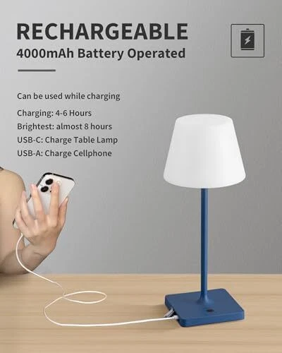 Menu 1. We require immediate payment. 2. We currently accept payment via eBay managed payments only. 3. Once payment is cleared, we will dispatch your shipment within 1-3 business days. Please refer to the "Shipping" tab for more information regarding shipping speed to your destination. Cordless Portable Touch Table Lamp Waterproof Set of 2, 4000mAh Rechargeable Battery Powered Dimmable LED Desk Lamps, Modern Baby Night Light for Bedroom, Restaurant, Bathroom, Bar (Blue 14.5") Product description Portable Cordless Design: The LED touch table lamp is elegantly designed with soft lighting, creating a cozy and romantic atmosp. It's medium weight and it fits in your hand, making it suitable for various occasions such as restaurants, bedrooms, bathroom, bars, outdoor gatherings, campsites, and cafes. This multi-functional, portable, waterproof cordless wireless desk lamp is an ideal choice. Touch Switch & Stepless Dimming: LED adjustable table lamp with reliable touch buttons on the lamp base, you can easily control the light on/off by tapping. Long press to change the brightness, adjustable from 10%-100%, provides 3W 2700K soft and cozy warm light, great for creating a sense of atmosp. Can be used for parenting, meditation, watching movies, etc. Suitable for all scenes and people of different ages to use home decor. Rechargable Battery Powered Table Lamp: Built-in 4000mAh rechargeable battery, charging time is 4-6 hours, 100% brightness mode can be used for about 8 hours, low brightness mode can last more than 24 hours. It turns RED when it is charged and turns GREEN when it is fully charged. battery powered lamp can charge your mobile phone at the same time in the charging state, it is recommended to charge your mobile phone when the table lamp is fully charged, if the table lamp power is too low it will turn off, you need to charge the table lamp to light up. IP44 Certification: IP44 certified PE plastic lamp, closed structure, rain and sun protection. Matte powder coated aluminum alloy body with delicate texture. Sturdy rubber protects the charging port from water sprays, so this waterproof light can be used as a shower light. Weighs 1.52 pounds and features a cordless design for easy mobility. The base includes a soft cushion to prevent tilting with the wind, making it an ideal table lamp for patios, restaurants, camping and more. Quality Service: Stylish Wireless LED Desk Lamp, suitable for self-use or gift for friends and family. If you have any questions after receiving the package, please feel free to contact us, we are happy to help you and give you a satisfactory solution. PLEASE MESSAGE US IF YOU HAVE ANY OTHER QUESTIONS, AND MANY THANKS FOR READING ALL OF THIS. Copyright ©#. All Rights Reserved.