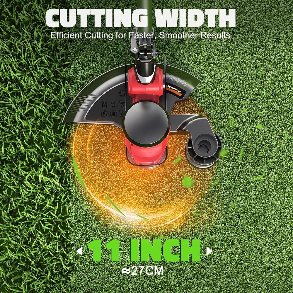 Product description Folding 3 in1 Weed Eater for Makita 18V Battery Adjustable height handles from to 50" to 60" The power display, allowing users to monitor remaining runtime. Features a brushless motor, which enhances efficiency, extends tool life. Note: It is not suitable for cutting larger-diameter shrubs or trees.