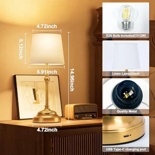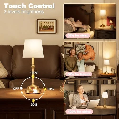 Menu 1. We require immediate payment. 2. We currently accept payment via eBay managed payments only. 3. Once payment is cleared, we will dispatch your shipment within 1-3 business days. Please refer to the "Shipping" tab for more information regarding shipping speed to your destination. Cordless Table Lamp, 5200mAh Battery Operated Lamp, Touch Dimmable Wireless Lamp Bedside Light for Bedroom, Living Room, Dining Room (Gold, 1 Pack) Product description 【Dimmable】 The wireless table lamp offers three adjustable brightness levels that you can switch easily with a touch of the base. Whether for ambiance, as a night light, or a bedside reading lamp, it meets all your needs 【Cordless Table Lamp】This table lamp is wireless design and very portable, you can move it anyw. It is suitable for placing in the living room, kitchen, bedroom, hallway, and also perfect for camping and picnic, providing you with light at any time 【Battery Operated Lamp】Built-in 5200mAh high-capacity battery with strong battery life. It can be charged using the included USB charging cable, with a charging time of 7-8 hours. Depending on the brightness setting, it can be used for 15 to 60 hours(To ensure the health of the product's battery, please use a 5V2A charger and data cable for charging 【Fashion Vintage Design】The wireless lamp is made of simple metal frame and woven fabric shade, incorporating fashion and vintage elements, which not only enhances the beauty of the space, but also creates a cozy and elegant atmosp for you 【Protect Your Eyes】The rechargeable lamp is made of high quality linen shade, which can effectively soften and diffuse the light, provide gentle and even illumination, protect your eyesight, and make you feel comfortable while reading and working 【Quality Service】If you encounter any problems with the Cordless table lamp within 2 years after purchase, please feel free to contact us, we will be happy to help you and make sure you are satisfied PLEASE MESSAGE US IF YOU HAVE ANY OTHER QUESTIONS, AND MANY THANKS FOR READING ALL OF THIS. Copyright ©#. All Rights Reserved.