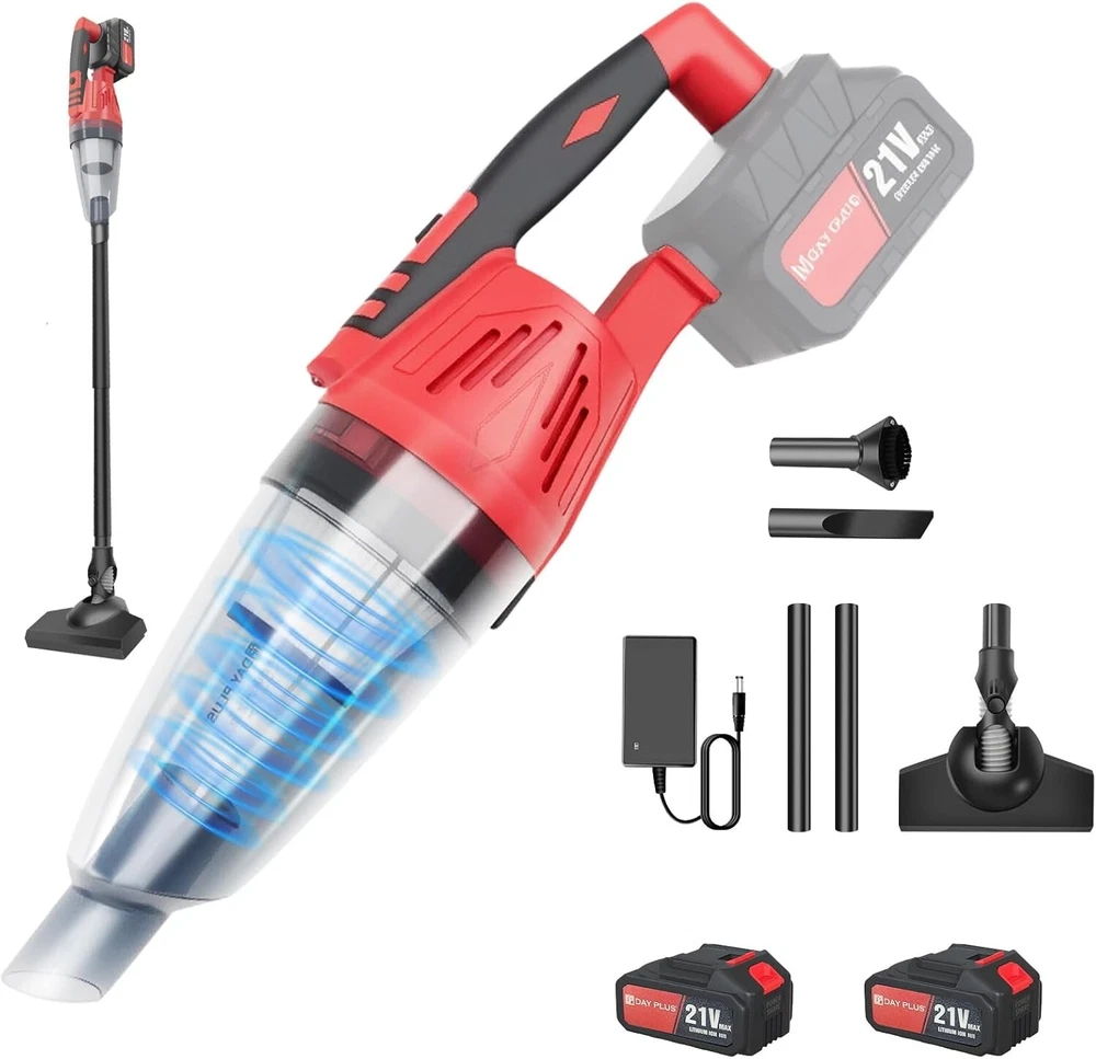 Specification: Name: Handheld Vacuum Cordless Colour: Red Collection container volume: 0.6L Size: 10.5x46.5cm/10.5x116cm Voltage: 21V Battery capacity: 2200MAH Rated power: 120W Features: 1.Powerful Cleaning-Equipped with a powerful suction that provides a strong suction power of 5500Pa, this dual-purpose hoover is perfect for thorough cleaning of home interiors and car interiors, carpets and rugs, leather finishes, etc., effectively removing dust. 2.Designed to be easy to manoeuvre and time-saving, perfect for busy families looking for convenience. 3.Charging with USB connection, allowing you to charge easily at home or on the go. 4. Compact and Portable-Compact and lightweight design makes it easy to carry and store, even in tight spaces there is room for storage and placement. Package includes: 1x Handheld Vacuum Cordless 1x Brush Nozzle 1x Crevice Nozzle 1x Nozzle 2x Extension Tube 3x Washable Filters 1x chargers 1x Instruction Manual 2xBattery Precautions: 1. The filter must be installed when using it 2. Do not use it in direct sunlight and in places with high temperature and high pressure. 3. Do not wipe the body with gasoline or highly volatile decontamination agents 4. The front shell cannot be taken off when the motor is rotating 5. This product is a vehicle tool, and it is forbidden for children to use it alone to avoid danger. 6. Under normal conditions, it can usually be used for half an hour and has no effect on the battery. 7. After using this product, please turn off the switch; when the dirt and dust are removed from the machine, press the fastening buckle, and then drain the foreign objects. 8. When repairing this product, it should follow the requirements of the manual, and at the same time, the filter part of the product should be kept clean at all times. 9. This product is not a toy. Please do not let children play with it alone to avoid danger.At the same time, the product should be placed in a dry place. Reminder: Please do not let children play alone. This product is not a toy. Please do not suck burning foreign objects, such as unquenched cigarette butts.