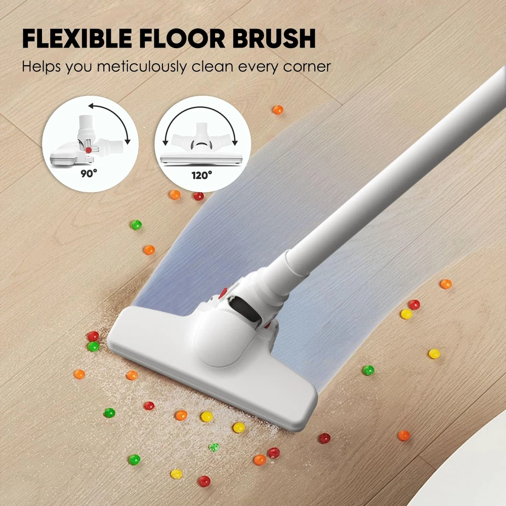 Lightweight Design: The main vacuum weights in at a mere 3 pounds, our cordless vacuum cleaner is designed for basic handling. Its lightweight build ensures comfortable operation, allowing you to easily clean around your home Design for Basic Small Room Cleaning: Whether it's pet hair, human hair, or everyday household dirts, this vacuum cleaner is ok to clean them. It is better to use it with the small room cleaning Multi-Scene Adaptability: From floors to curtains, and even car interiors, this vacuum cleaner is your all-in-one cleaning solution. Its versatility knows no bounds, making it the companion for tackling various cleaning scenarios.Note: it is not suitable for the long carpet Extended Runtime: With 4 hour charging time, you can enjoy up to 15 minutes of high-power mode or 30 minutes of low-power mode operation around. Choose the setting that suits your cleaning needs Versatile Attachments: Equipped with a crevice tool and a floor brush, our vacuum cleaner can transforms from a stick vacuum to a handheld vacuum. This adaptability ensures that you can reach tight spaces and clean various surfaces(not include the long carpet)