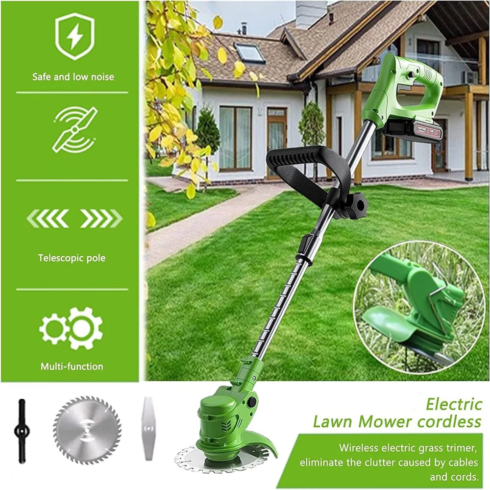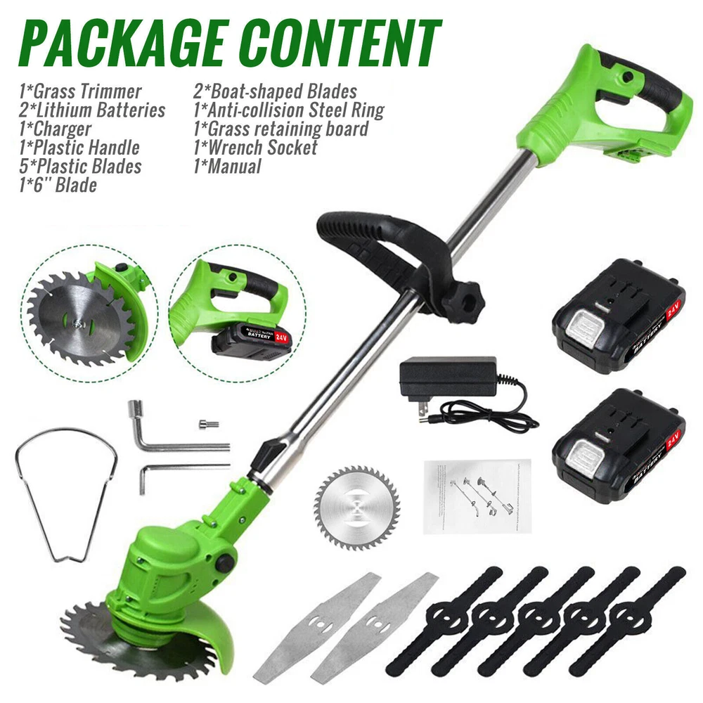 Cordless wacker Electric Weed Eater Lawn Edger brush cutter trimmer 新建网页 5 Feature: 【Powerful and Efficient Weeder】The multifunctional cordless electric weeder is widely used and can be used as a lawnmower, edge trimmer, and lawn mower to facilitate different mowing operations. The upgraded 1600 W electric lawn mower battery power supply is built to handle heavier workloads, allowing the cordless electric lawn mower to reach speeds up to 30,000 rpm. 【3 Types of Replaceable Blades】: This battery-operated grass eater is equipped with 3 types of blades. Nylon blades trim young grass. The stainless steel blade is used to quickly cut lawns, weeds and small shrubs. High cutting power manganese steel circular saw blade for pruning thick shrubbery branches. Different blades meet different weeding needs and are suitable for mowing around the yard. 【New handle lightweight and safe design】Our lawnmower weighs only 3.28 pounds, lightweight, even the elderly or women can control and use it easily&. Double safety button design, you need to press the safety lock and trigger at the same time to start the brush cutter, ensuring your safety. The new C-shaped ergonomically designed handle will not make you feel tired even after working for a long time, and can be hung anywhere. Easily keep your garden and yard clean and tidy. 【Adjustable Height and Cutting Angle】The stringless trimmer is equipped with an adjustable telescopic shaft that can be freely adjusted from 33 inches to 47 inches to meet the needs of most people for garden pruning work. The swivel head of this electric weed eater is adjustable (0 - 90°) to help you get into hard-to-reach corners without being restricted by wires. Telescopic design can further reduce the space occupied and make moving and storage more convenient! [2 Pcs 24V/2000 mAh lithium battery (high power, high efficiency)] 2000 mAh electric brush cutter is more efficient, longer running time (120-150 minutes without load), charging time (2-3 hours), two The battery packs work alternately to weed the entire yard with ease. Lower noise, no emissions, no need for multiple starts and minimal maintenance compared to gas lawn mowers. Specification: Material: aluminum + plastic Voltage: 21V Battery capacity: 2000mah Rotation speed: 20000 U/min Power: 900W Telescopic tube: 90cm/35.4 inches ~120cm/47.2 inches Round blade diameter: 15 cm/5.9 inches Straight blade diameter: 14.6 cm/5.74 inches Power supply type: 2 lithium batteries No-load running time: 90-150 minutes Package: 1 x lawnmower 2 x batteries 2 x rectangular alloy saw blade 2 x round alloy saw blades 5 x plastic saw blades 1 x baffle 1 x wrench 1 x charger 1 x instruction manual We only accept Paypal . Payment is expected within 2 days from the end of the auction. We send all the items are based on your paypal address. Therefore, please make sure your paypal address is valid. * International Buyers Please Note: Import duties, taxes and charges are not included in the item price or shipping charges. These charges are the buyer’s responsibility. Please check your country’s custom office to determine whether these additional costs will be prior to bidding / buying. We only ship this item to United State! We ship to your eBay address. Each package will be shipped to USA by UPS or Fedex with tracking number. Please check your shipping address carefully before checkout, it can't be changed if order completed. Ship within 1-2 business day once payment completed. Orders placed on weekend will be shipped within 3 days. Seriously promise: Refund or resend will be offered if item still not arrive in 7-10 business days. Just send us an email ,we will give you a satisfied solution as soon as possible. We maintain high standards of excellence FIVE STAR and strive for 100% customer satisfaction! Positive Feedback is very important to us. We hope that you contact us immediately BEFORE you give us neutral or negative feedback, so that we can satisfactorily address your concerns. We promise to offer the lowest price and high quality produce. Our working time: From Monday to Friday(9:00 am to 18:00pm), we do not work on holidays in China,hope you can understand and know that , thank you. Please always talk to us via ebay Message. We appreciate your business and look forward to growing our e-Bay sales with satisfied customers. If you dissatisfied for any reason, Please don't leave negative or neutral feedback at once. We work hard to make sure EVERY CUSTOMER 100% SATISFIED and resolve any problem for you and always leave positive feedback for all our customers. If you are satisfied with the product you received ,please leave us positive feedback and 5 scores DSR. Dear buyers,Welcome to our store!Your satisfaction is our top goal,we appreciate your business. If you have any questions, please feel free to contact with us by ebay Message during our business hours ( 9:30a.m. to 5:30 p.m.), or email us through eBay, we will try our best to help you to resolve it. If you are satisfied with our service, please rate the details of the transaction (Detailed Seller Ratings) on eBay and We will do the same for you. If you are not satisfied with the product or service ,please contact us before leave negative or natural feedback, we will try our best to solve the issue to your satisfaction, thanks. For any presale or after-sale questions,please do feel free to email us! Due to the time difference, each email will be replied within 1 working day,and weekend will be delayed a bitThanks for your patronizing!