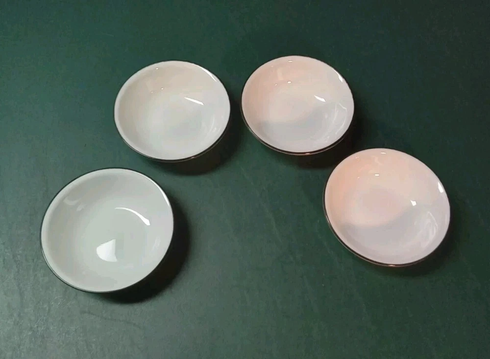Enhance your dining experience with this set of four Corelle Garden Get Away fruit/dessert bowls. The round glass bowls feature a shiny finish and black trim, making them perfect for all occasions. Measuring 5-1/4 inches in diameter, these bowls are ideal for serving fruits, desserts, and other dishes. Crafted in the United States, these original Corelle bowls are made of high-quality glass Vitrelle material that ensures long durability. The set includes four bowls, making it perfect for family dinners or large gatherings. These bowls are in good used condition with no chips or cracks. See photos.