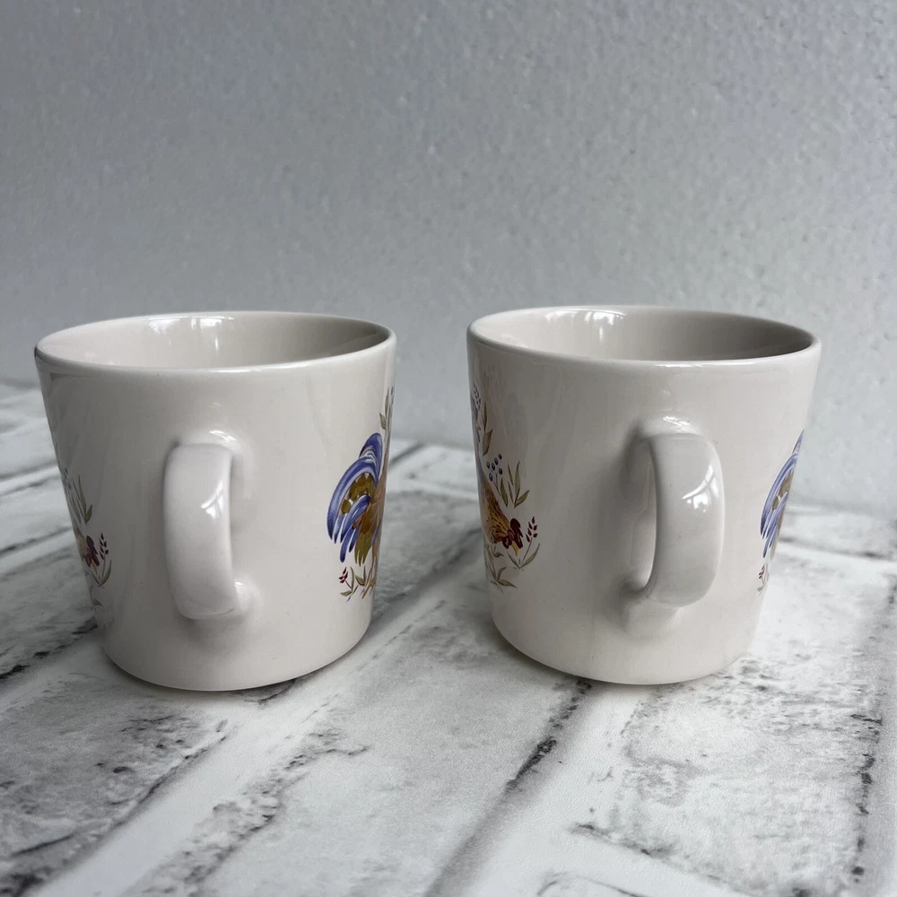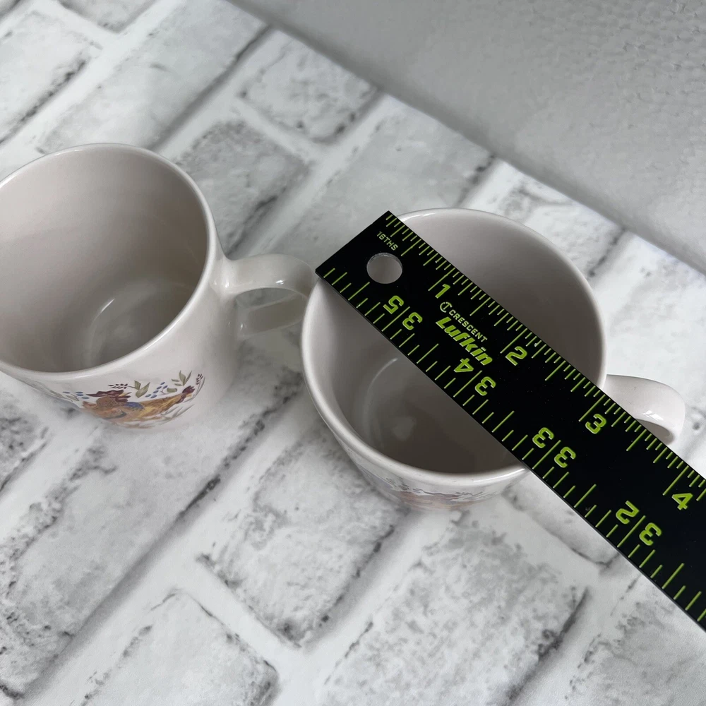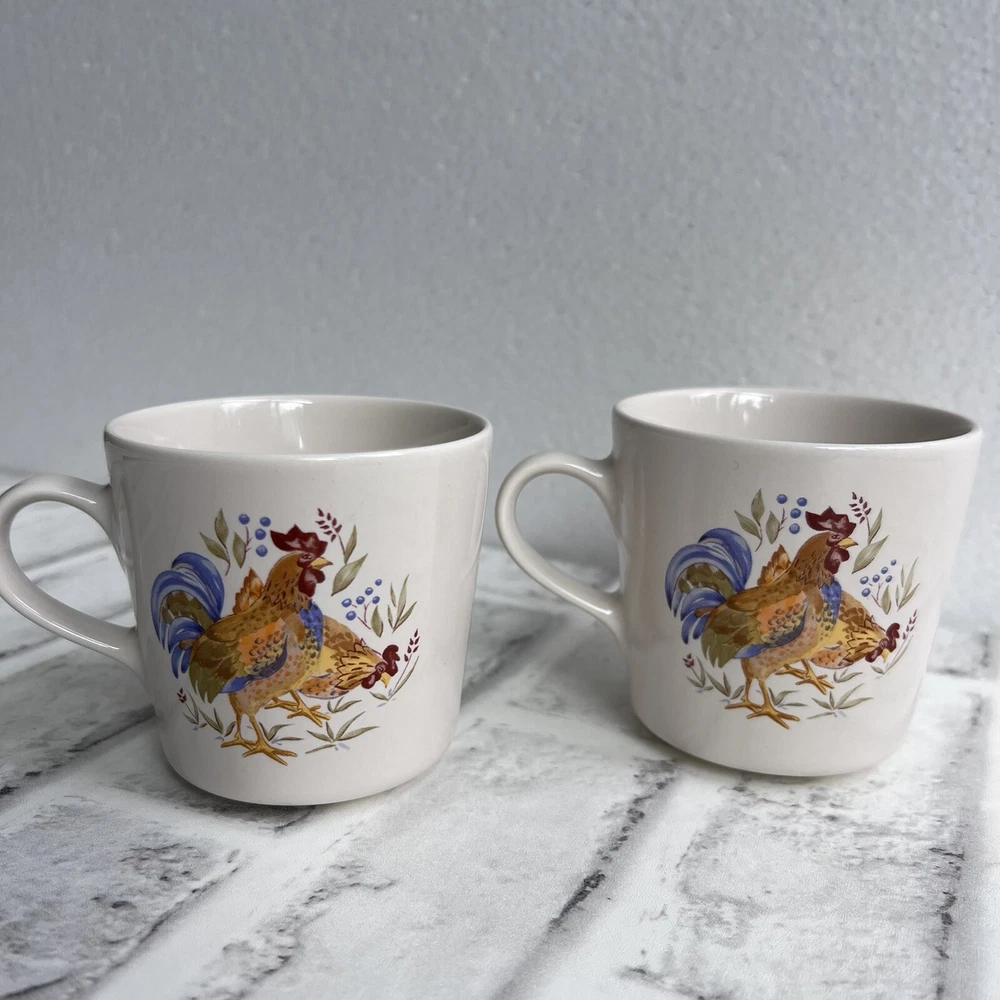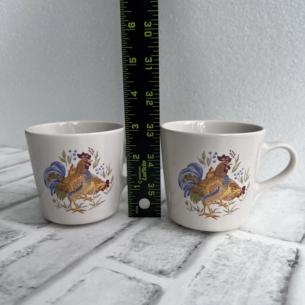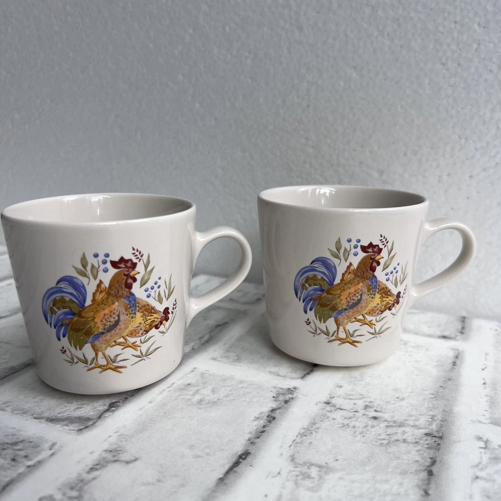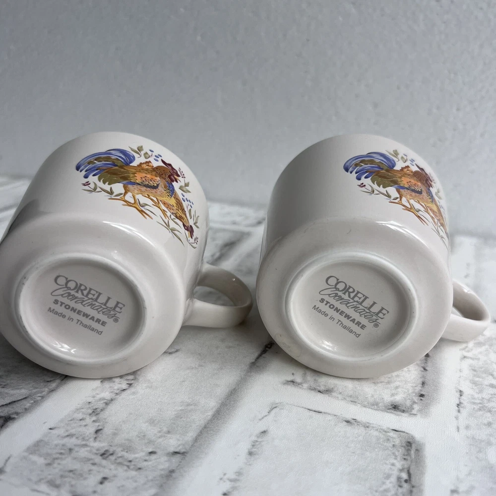 Corelle Set Of 2 Coordinates Country Morning Rooster Coffee Mugs Tea Cups Stoneware Approximate 7 oz capacity Condition: -good preowned condition, one has minor signs of use -please review all photos BIN-Y