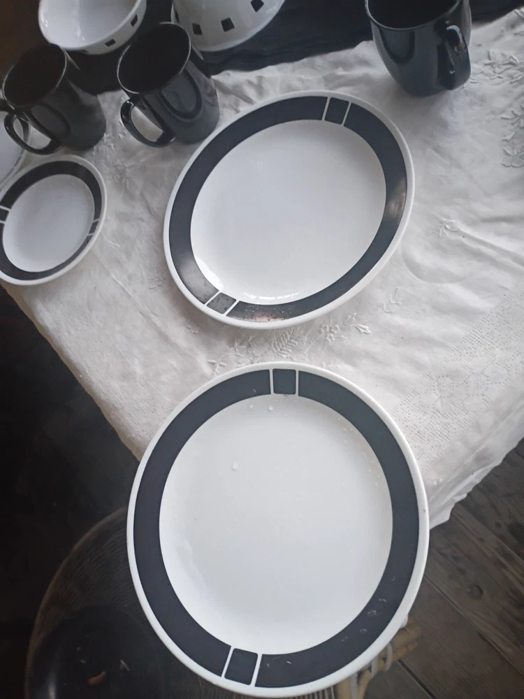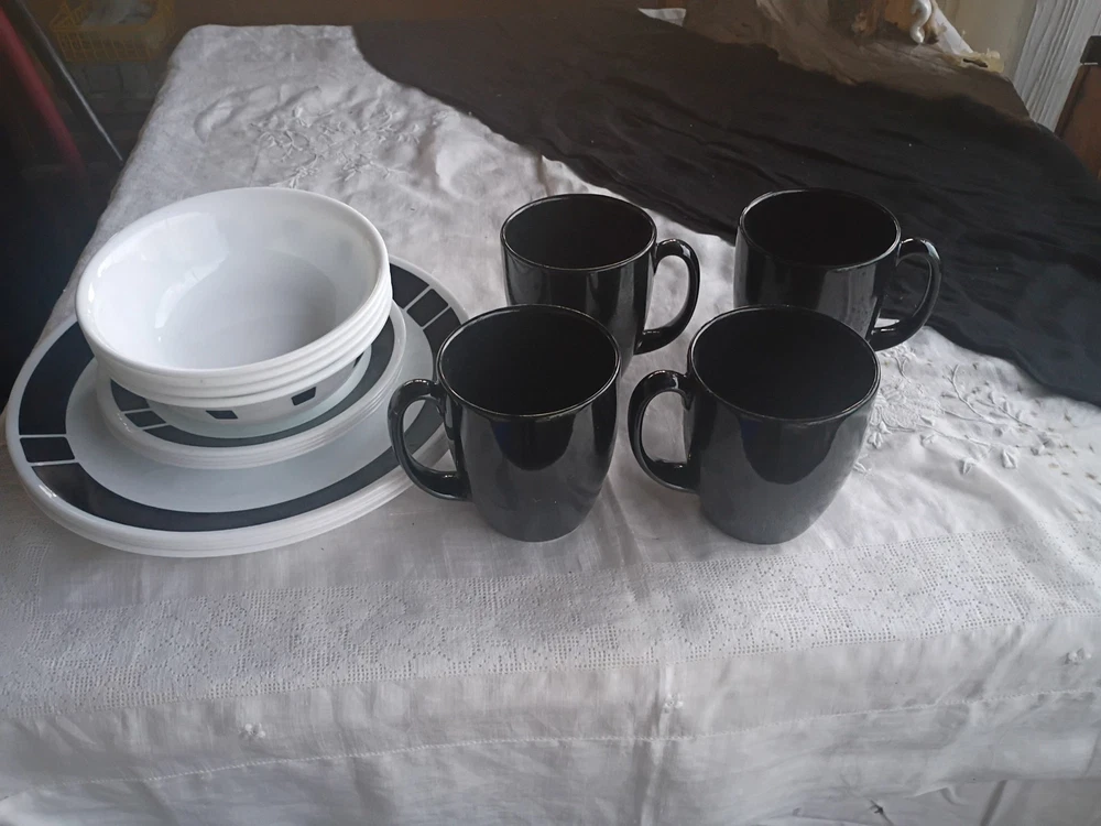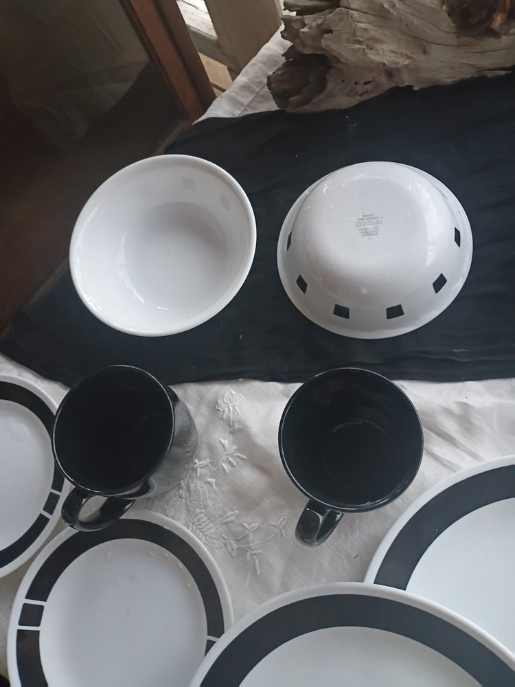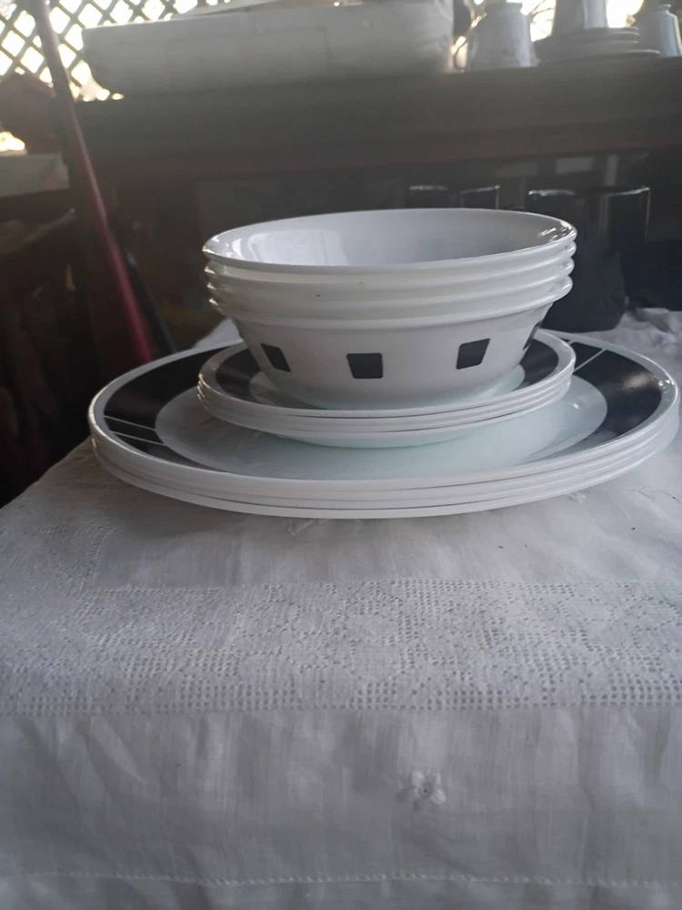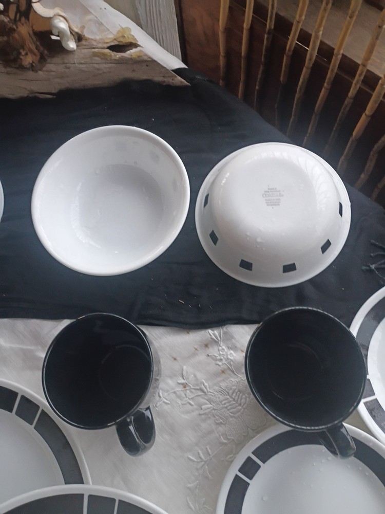 The Corelle Urban Black Set of 16 pieces is a stylish and versatile dinnerware collection perfect for serving meals to a group of four people. The set features a modern urban black pattern on a white background, adding a contemporary touch to your dining table. Made of durable glass material with a shiny finish, this set is both practical and eye-catching. Ideal for all occasions, this original set from 2007 is sure to elevate your dining experience with its sleek design and quality construction.