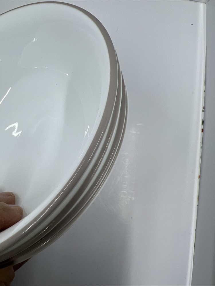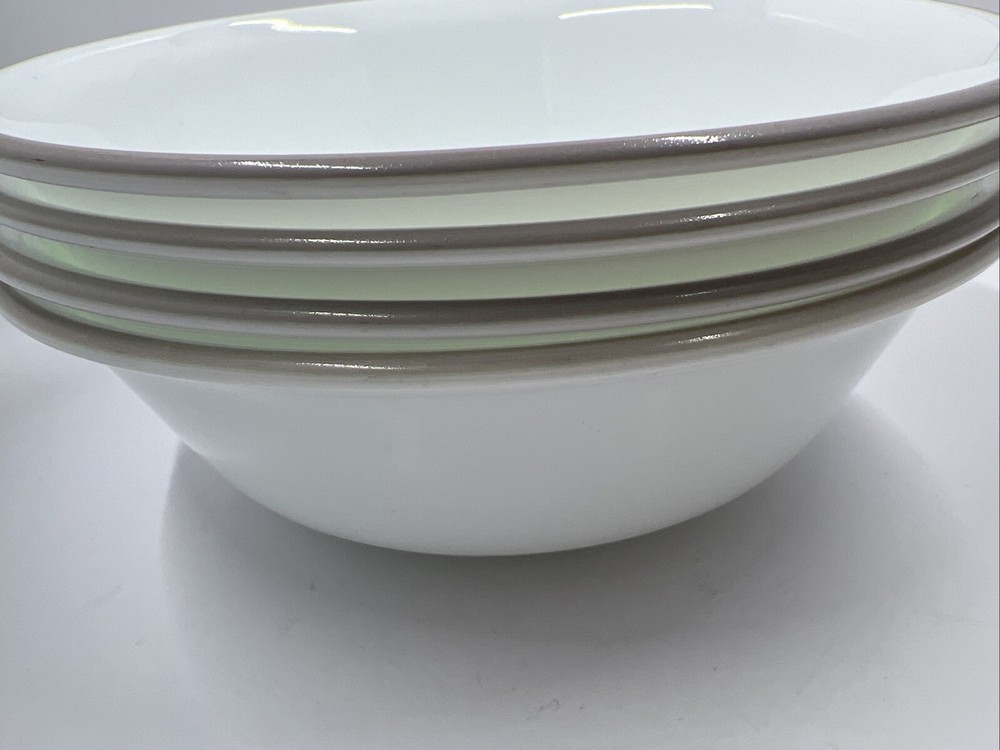 Occasion:All OccasionsMaterial:GlassItem Height:6 inModel:Corelle VitrelleType:Cereal/Soup BowlsPattern:MartiniNumber of Items in Set:Four-PieceShape:RoundCountry/Region of Manufacture:United StatesBrand:CorelleColor:White with brown rim