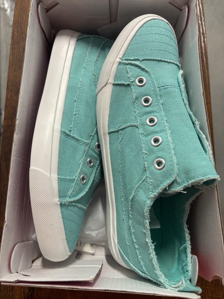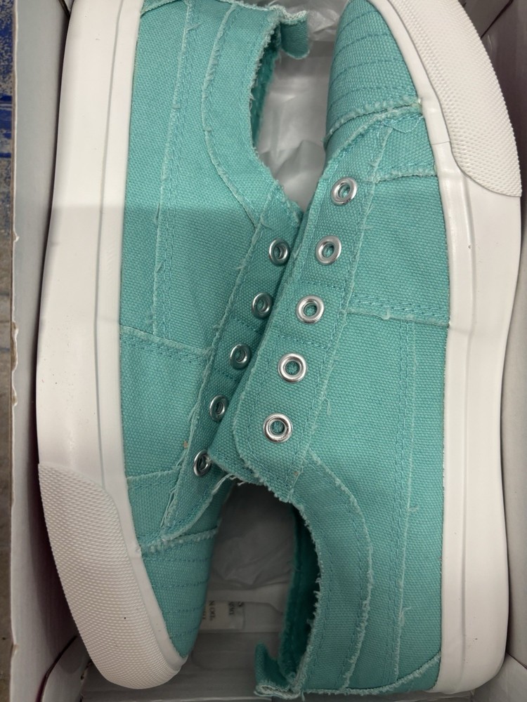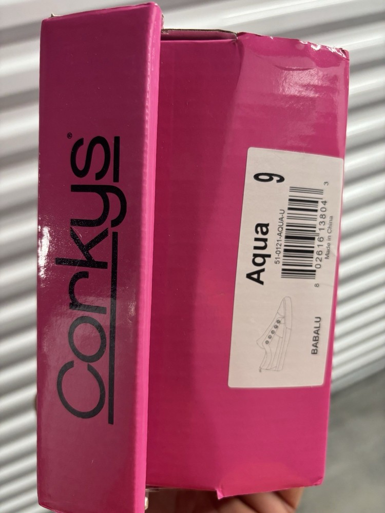 Condition: New with box Description: Stylish Corkys slip-on sneakers in a bright aqua color. Lightweight and comfortable, perfect for everyday casual wear. Features: * Easy slip-on design * Soft canvas upper * Cushioned sole for comfort * Lightweight and breathable Size: Women’s 9 Color: Aqua Notes: * New in original box * No laces needed (slip-on style) Ships fast. Message with any questions.