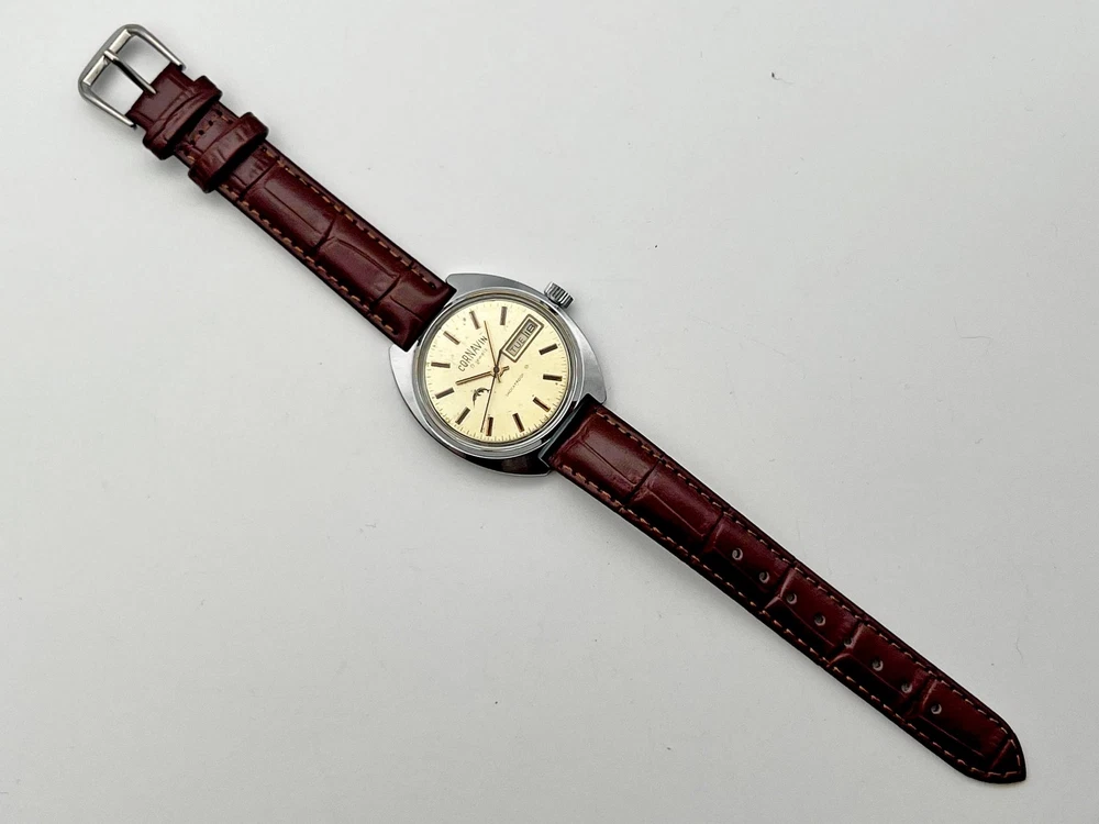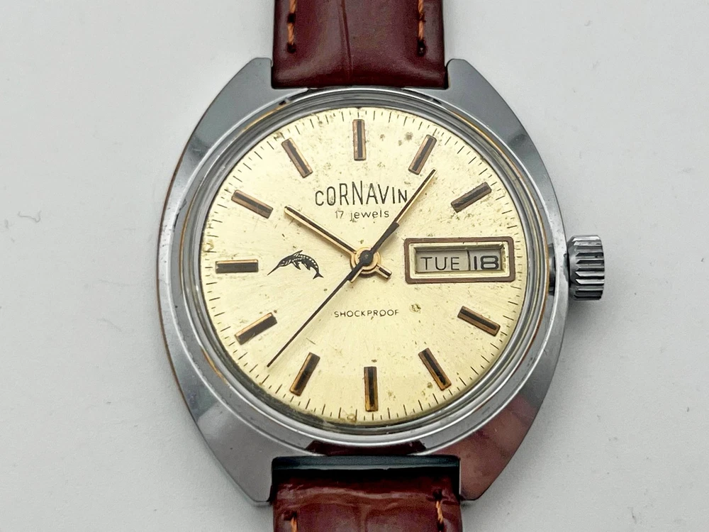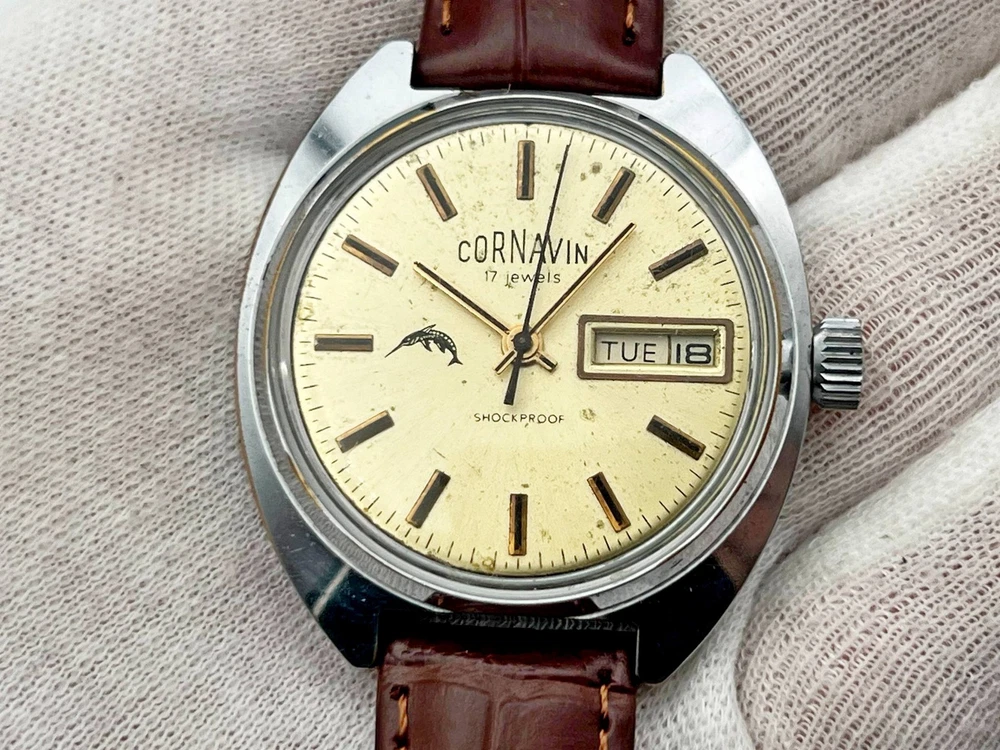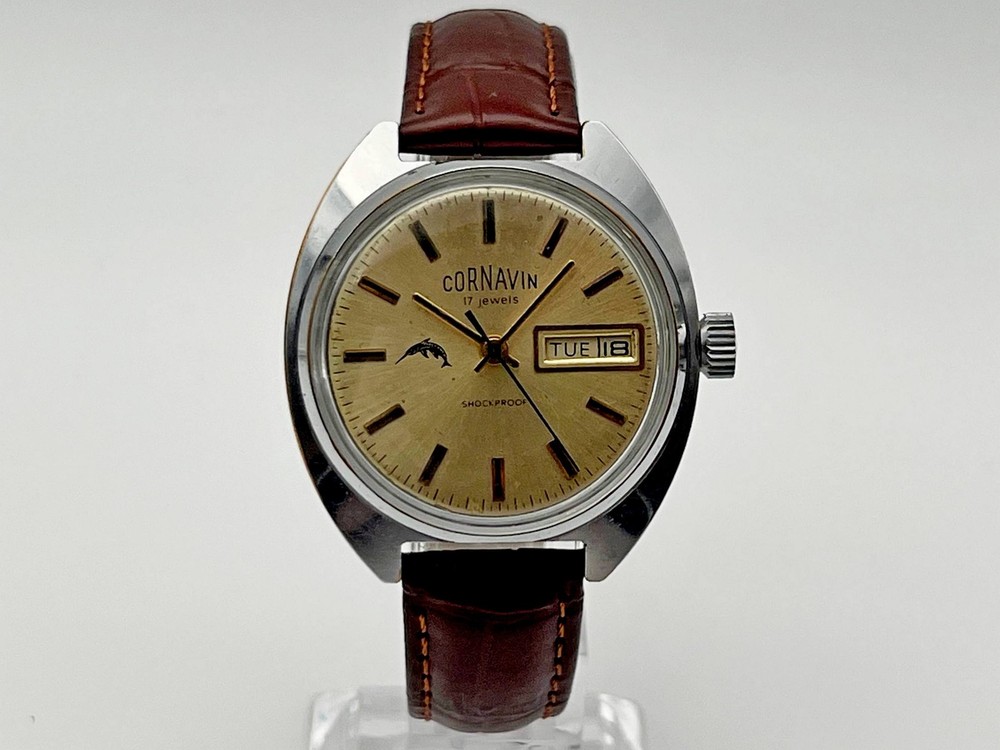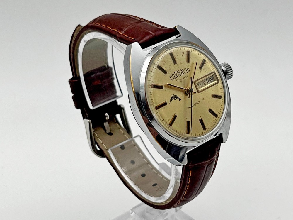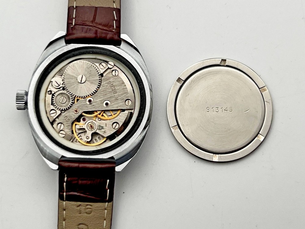 Cornavin Raketa 2628 SU Vintage Mechanical Wristwatch USSR Serviced Watch Soviet watch with rare dial, double Calendar, Brown Leather Band, Shockproof, 17 Jewels Production PCHZ - Petrodvorets Watch Factory The first batch of Raketa brand watches was released in 1961. The brand was named after Gagarin's flight. The watch is serviced by professional watchmaker. The service included complete disassembly, cleaning and subsequent lubrication of the mechanism. Keeps good time and runs well. Could be a great gift for someone you love or can be added to your collection. Contact me if any questions. I do offer combine shipping discount if you buy 2 items or more. I make shipments the next business day after the purchase. Please watch the photos carefully as they are important part of description. Thanks for your interest. Have a look at some other lots at our store. 💛💙