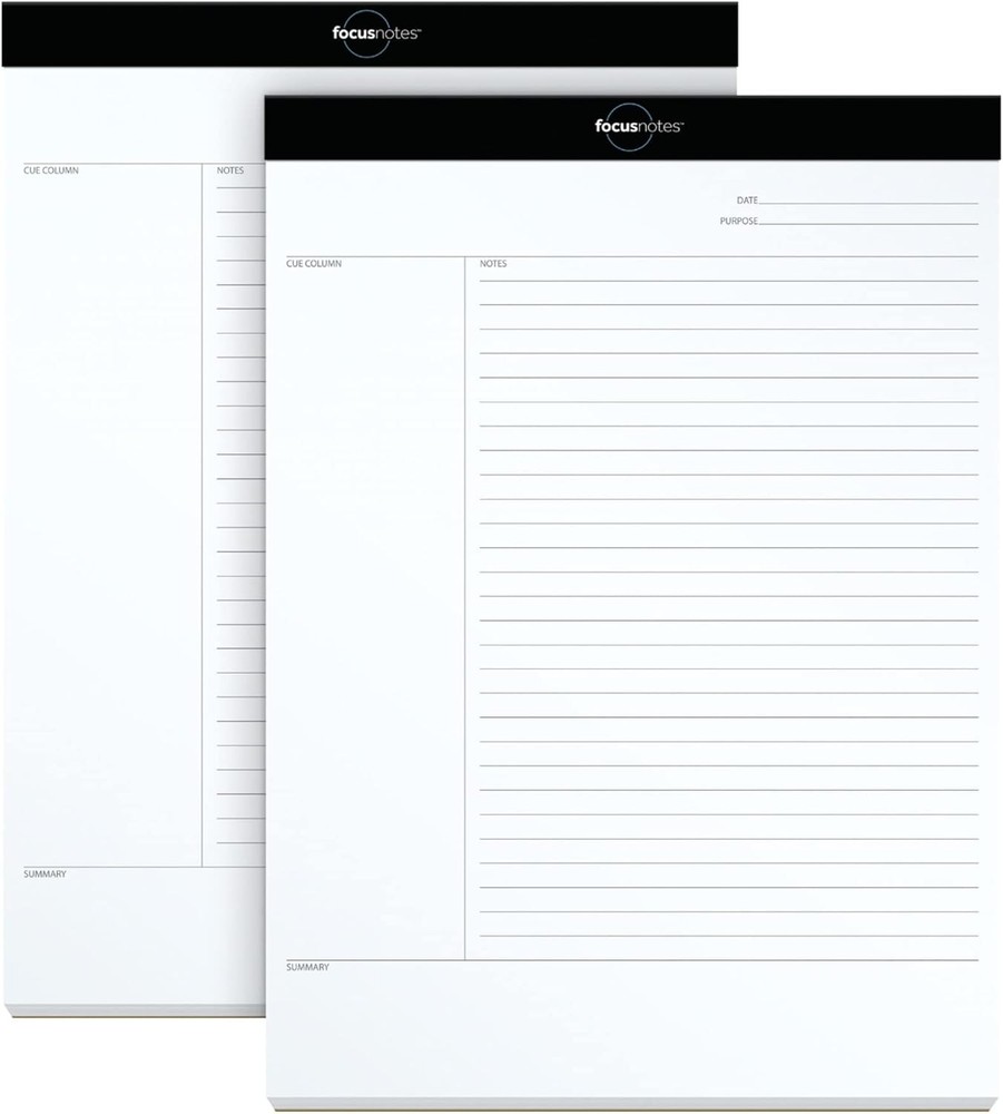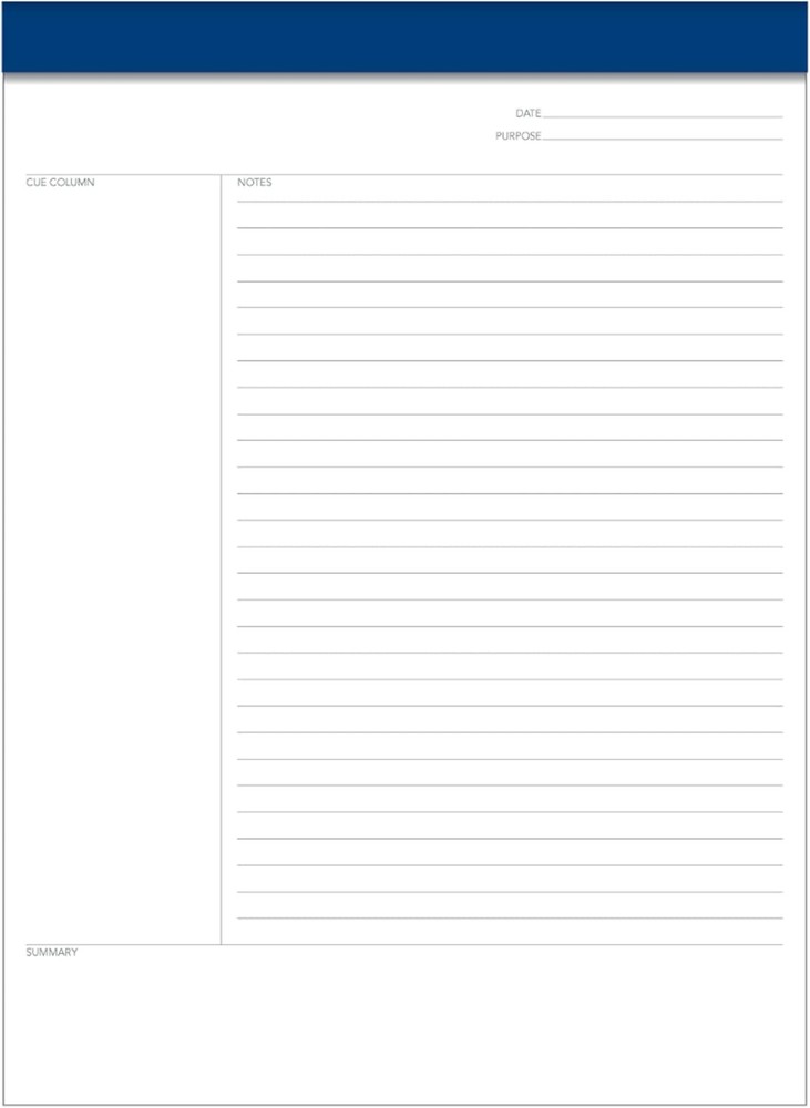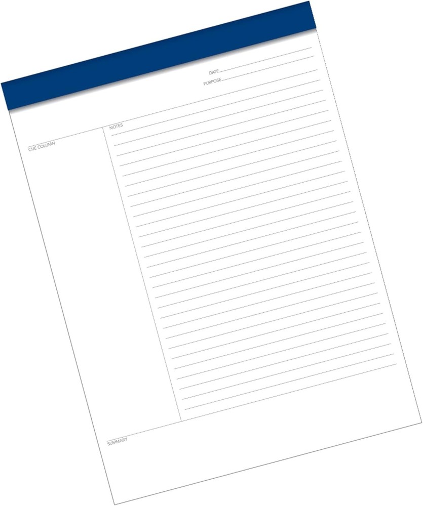 Comparable to the Cornell note taking system Featuring a cue column, notes and summary section on each page Everyday weight paper; Letter-Trim perforated sheets for easy page removal 8-1/2 x 11-3/4 inches 50 sheets per pad; pack of 2 pads