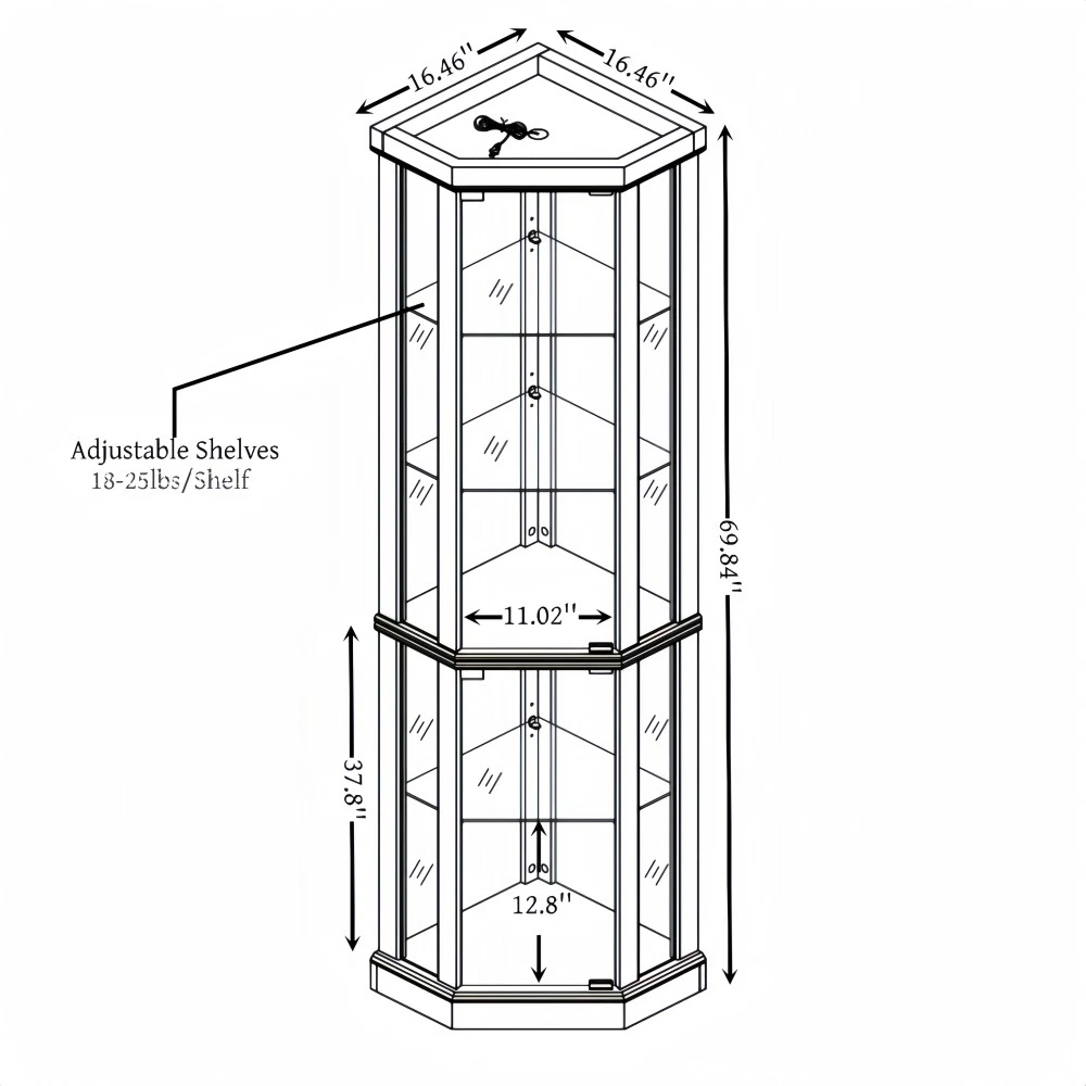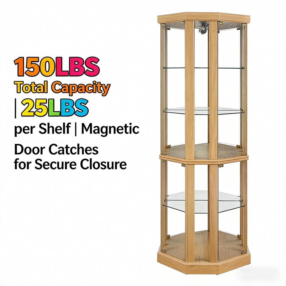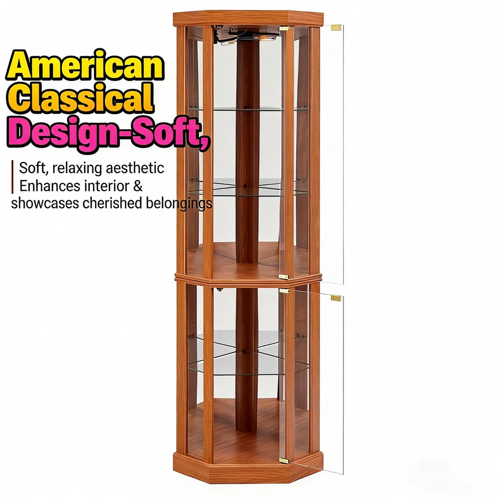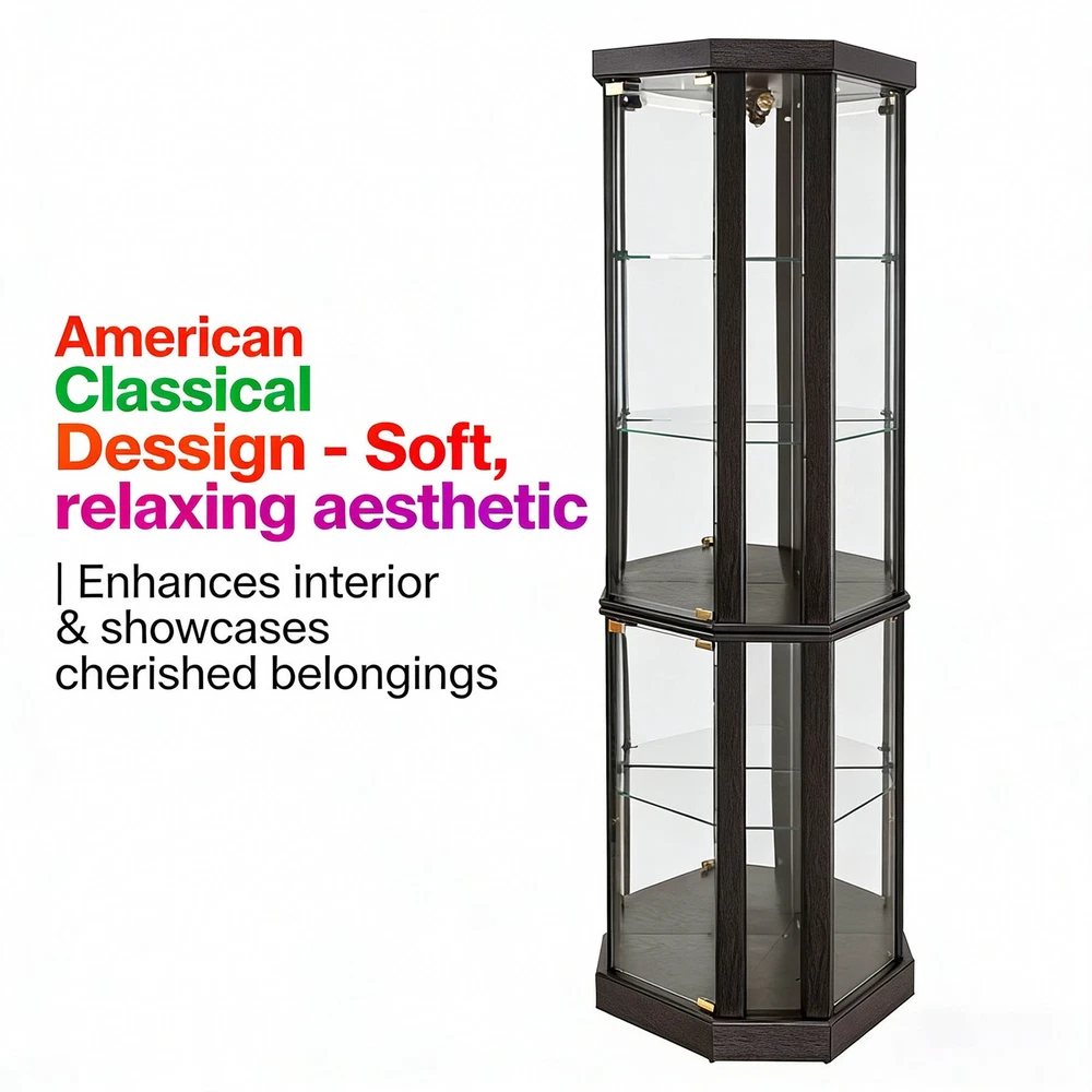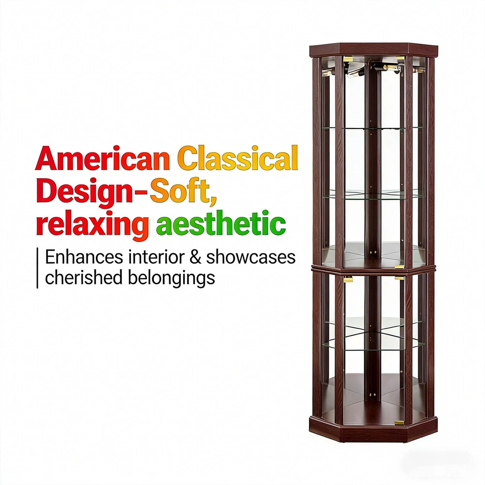 Corner Lighted Curio Cabinet - Glass Display Case for Antiques, Wine & More (5 Color Options) ✨ Transform Empty Corners into Stunning Showcase Spaces ✨ Tired of wasted corner space? Our Corner Lighted Curio Cabinet turns overlooked nooks into elegant focal points! Designed with timeless American style, built-in lighting, and mirrored back panels, this cabinet is perfect for displaying antiques, wine, bar glasses, or cherished collectibles. Available in five versatile colors, it seamlessly blends with any living room, bar, or dining area decor—combining functionality with sophisticated charm. 🎨 Choose Your Ideal Finish Dark Cherry Rich, warm, and classic—Dark Cherry adds a touch of traditional elegance to formal living rooms or dining spaces. It pairs beautifully with dark wood furniture and vintage decor. Antique White Soft, timeless, and versatile—Antique White brings a cozy farmhouse or cottage vibe. It brightens spaces and complements pastels, neutrals, and floral accents. Light Oak Airy, natural, and fresh—Light Oak suits coastal, Scandinavian, or casual styles. It adds warmth without overwhelming light-colored walls and furniture. Black Sleek, modern, and bold—Black creates a striking contrast in contemporary or industrial spaces. It makes your collectibles stand out and pairs with any accent color. Dark Oak Deep, earthy, and rugged—Dark Oak offers a rustic yet refined look, perfect for cabin-style or transitional homes. It blends with leather furniture and natural textures. 🔍 Key Specifications (All Colors) Category Details Assembled Dimensions (L×W×H) 16.50” × 16.50” × 69.85” (corner-fitting design) Assembled Weight 63.14 lbs Package Dimensions (L×W×H) 43.30” × 20.47” × 9.45” Package Weight 71.06 lbs Material High-Quality MDF + Clear Glass Weight Capacity 150 lbs total | 25 lbs per shelf Special Features Built-in Lighting + Mirrored Back Panels + Adjustable Shelves + Magnetic Door Catches 🌟 Why This Curio Cabinet Steals the Show Timeless American Classical Design: Soft, curved silhouettes and smooth lines create a serene, elegant look that enhances any interior. It adds a gentle touch to your space while letting your collectibles take center stage. Built-in Lighting for Dramatic Display: Included light illuminates your treasures with radiant brilliance, making antiques, crystal, or wine glasses shine. Mirrored back panels amplify the light and depth, creating a stunning visual effect that draws the eye. Customizable Display Space: Two side-hung glass doors open to a cabinet divided into two sections, with adjustable shelves. Personalize the layout to fit tall wine bottles, large antiques, or small trinkets—maximizing every inch of space. Sturdy & Secure Storage: With a 150-lb total weight capacity (25 lbs per shelf), this cabinet safely holds your valuables. Magnetic door catches ensure the glass doors close securely, keeping dust out and your items protected. Corner-Saving Design: Perfect for small or large spaces, the compact 16.5”×16.5” footprint fits neatly into corners, turning unused areas into functional, beautiful showcases. Ideal for living rooms, bars, dining rooms, or offices. Important Assembly Tip: Before assembling, please remove the protective film from the back panel to ensure the mirrored surface looks its best and functions properly. Our Promise to You: 1-Year Quality Warranty + 30-Day Free Return/Exchange. If you encounter any issues with your curio cabinet—whether it’s assembly, damage, or fit—our dedicated customer service team is here to assist you promptly and hassle-free. Turn empty corners into conversation pieces and give your cherished items the showcase they deserve. Choose your favorite color (Dark Cherry, Antique White, Light Oak, Black, or Dark Oak) and add to cart today—your space will thank you!