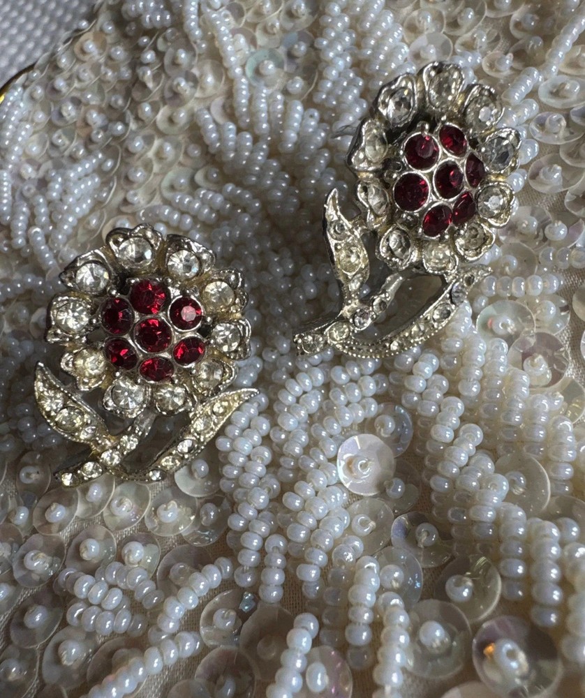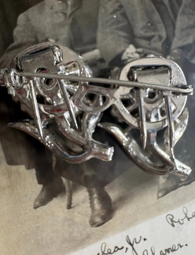 Coro Duette Vintage Brooch with Flowers and Rhinestone Accent
