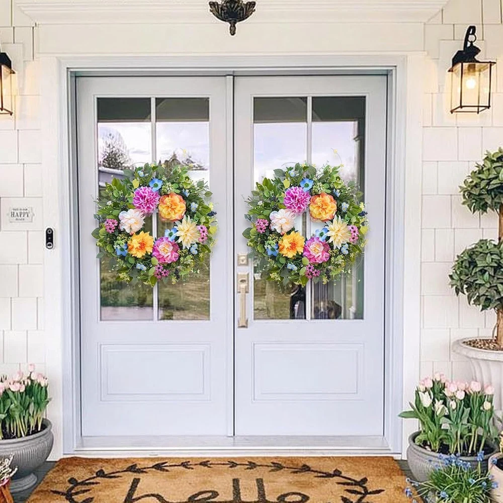 Egolot 24 Inch Colorful Forsythia Flower Wreath for Spring Summer Front Door Decor