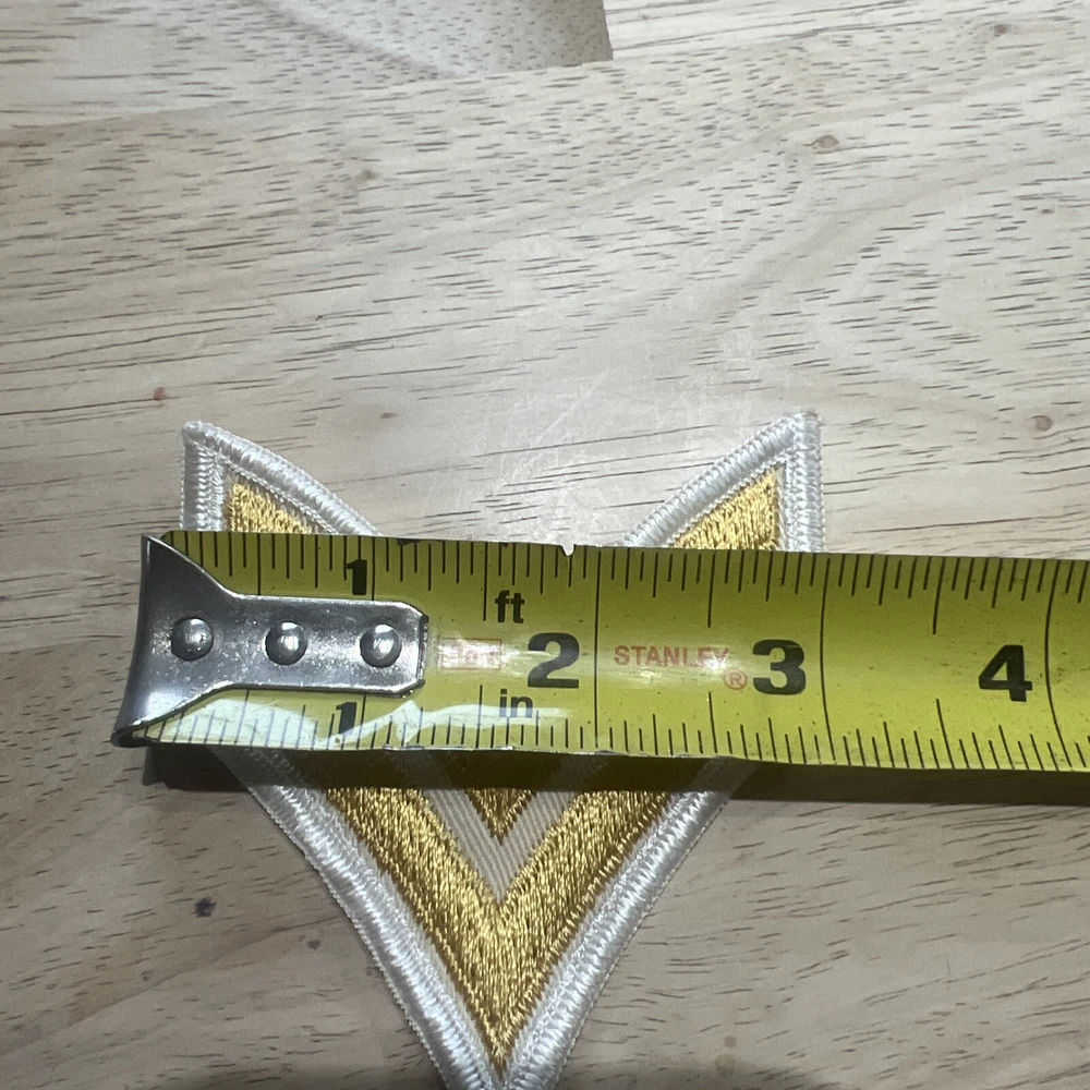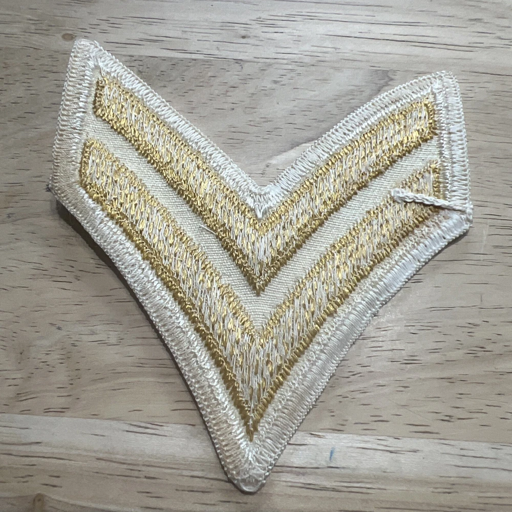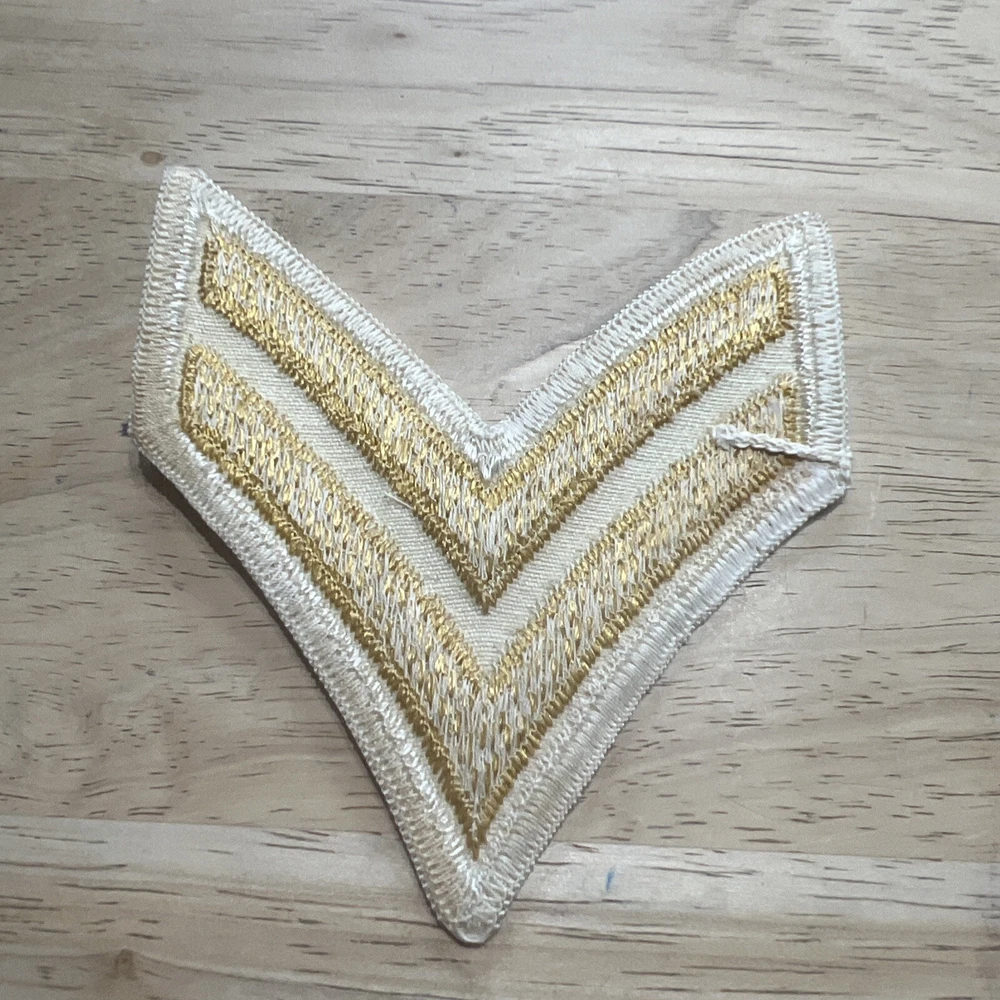This Corporal Rank Chevron Patch of the US Army Navy is a great addition to your collection. The patch features gold stripes on a white background, making it a unique and eye-catching item. It is perfect for those interested in militaria or those looking to add a touch of history to their collection. The patch is ideal for display on bags, hats, or clothing, and is sure to make a statement. It is a genuine item from the US Army Navy and is perfect for collectors looking for a unique and authentic piece. Add this Corporal Rank Chevron Patch to your collection today! Lot 4219
