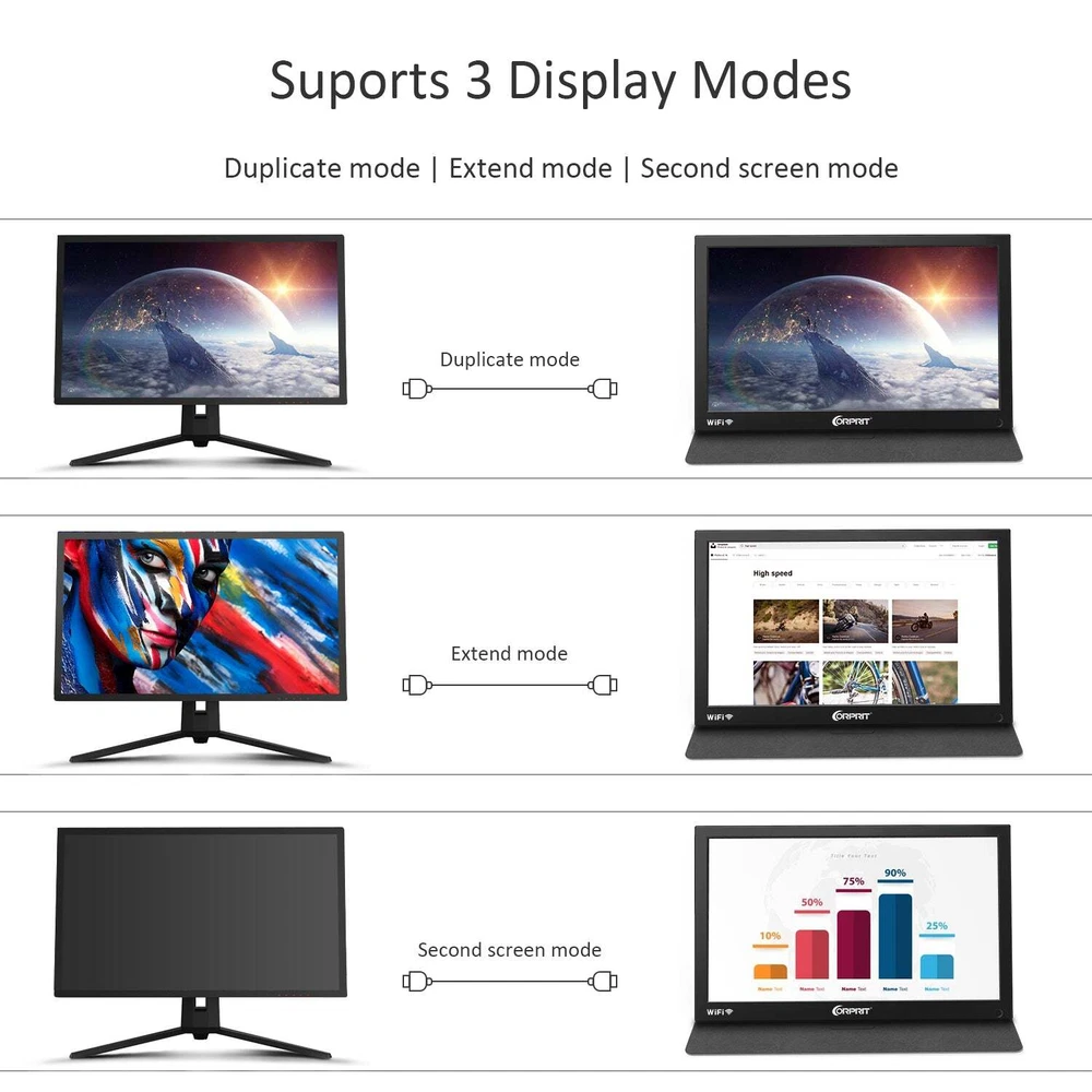 You may also like TOGUARD Dual Dash Cam 1080P+1080P Front and Inside Car Driving Camera 64GB Card 52.69 USD Free shipping TOGUARD 4K Dual Dash Cam UHD 2160P+1080P Front Rear Car DVR Camera night vision 67.59 USD Free shipping TOGUARD 12" Mirror Dash Cam 4K GPS Backup Camera Front and Rearview DVR Recorder 78.99 USD 89.29 USD Free shipping 12% off TOGUARD 3 Channel 4K GPS Dash Cam Car Recorder Camera Night Vision G-Sensor 59.59 USD 69.41 USD Free shipping 14% off 9"2.5K Dash Cam Car Stereo Radio Wireless Apple Carplay&Android Auto+Rear Camera 89.21 USD Free shipping TOGUARD Front and Inside Dual Dash Came FHD 1080P+1080P Car Camera Night Vision 52.99 USD Free shipping Corprit Portable Monitor 15.6 Inch FHD 1080P Laptop Monitor USB C Mini HDMI Gaming Computer Screen Ultra-Slim IPS Display External Monitor for Laptop PC Phone Mac Xbox PS5/PS4 Switch Black USA Warehouse! Fast delivery, fast received! Key Word: 【1080P FHD Monitor】 This portable computer monitor features a 1920 x 1080 resolution,16.7 million colors, 60Hz refresh rate, advanced eye protection IPS display, and 178° viewing angle. It delivers sharp and vibrant display colors, allowing you to enjoy High-Definition entertainment and a smooth gaming experience. 【Durable and Portable Design Monitor】 This travel monitor is a 15-inch screen and weighs about 4 lbs. This slim and lightweight design is easy to throw in your bag and go. It's very suitable for indoor entertainment or outdoor work. 【Versatile Digital Connectivity】 Mini HDMI & dual USB Type-C ports design makes this portable gaming monitor more convenient to connect your laptop, smartphone, PC, PS3, PS4, XBOX ONE, Switch, etc. It's ideal for extending your screen or playing games on a business trip, traveling, or for home entertainment. 【Smart Cover as a Stand】 This laptop screen extender comes with a durable PU leather cover, which can fold into different positions flexibly to create a stand for the monitor. 【Lightweight but Powerful】 This external monitor for a laptop can work in both landscape and portrait mode and can be used as a pc monitor, or screen extender for a laptop or phone. It has a uniquely designed Premium Black metal appearance, 2 built-in speakers to play audio, and supports HDR mode. What's in the Box? 1 x USB-C Portable Display 1 x Mini HDMI to HDMI cable 1 x USB-C to USB-C cable 1 x USB-C to USB-A cable (Power Supply) 1 x Smart Cover 1 x User Guide Specifications: Screen: 15.6" IPS Resolution: 1920*1080 Aspect ratio: 16:9 Brightness: 300cd/m² Color Gamut: 100% sRGB Contrast ratio: 1000:1 Interface: 2*USB-C, 1*Mini HDMI, 1*3.5mm Jack Full HD 1080P IPS Display Corprit upgraded portable monitor is featured with a 15.6-inch Full HD (1920 x 1080) advanced IPS display, 100% color gamut, up to 300cd/m2 brightness, HDR & DCR technology, which delivers stunning FHD quality and sharp and vibrant colors display. 178° Full Vision Angle Corprit monitor provides a 1000:1 contrast ratio, 16: 9 aspect ratio, 178° full Viewing Angle, which makes the picture clearer and sharper, let colors be more saturated and natural. Give you a resulting in a more comfortable viewing experience. The Real Game Partner Corprit portable monitor is a great idea to connect it directly to your phone, Xbox/PS4/Switches, or raspberry pi entertainment center when you're at home or traveling as an extra gaming monitor to improve viewing experience to enjoy watching. Return 1.This item comes with one year replacement warranty. We tested every piece just before shipped it to you 2. You have 14 days to contact us and 10 days to return it from the date it was received. Please contact us to ask RMA number before do return 3. Return must be in the original package. and with ALL original accessories if you return for refund. if you return for replacement. just return defective part to save postage 4. We will refund YOUR FULL WINNING BID AMOUNT. upon receipt of the item in its original condition and packaging with all components and accessories included. AFTER BOTH Buyer and Seller cancel the transaction from eBay. OR. you may choose to have a replacement 5. Return shipping is to be paid by the Buyer. We will pay the mailing cost of the replacement to buyer Shipping Fast shipping by USA LOCAL FAST SHIPPING , Mostly, all of the products will be shipped out within 1 working day after we received the payment and your contact phone number, We always ship to your paypal address, so if your shipping address is not matched with it, please note the address you want us to ship in paypal Why Choose the USA Stock ? 1. USA Local Shipping, No Extra Customs Cost to the USA 2. Fast Delivery: 2-7 Working days Delivery 3. Best After-Sales Service!! Feedback Please leave five stars positive feedback positive comment and Five-Stars . Contact us if you have any question, Give us a chance to serve you, negative feedback could not solve anything . Communication Please! 9.26" Touch Screen Car Stereo Radio For Wireless Apple Carplay/Android Auto GPS 59.99 USD Free shipping 2 IN 1 Wireless Carplay Android Auto Adapter, USB Type C Plug & Play Car Dongle 35.99 USD Free shipping 9.26" 4K Front Dash Cam Portable Wireless Apple Carplay Android Auto Car Stereo 105.29 USD Free shipping 2 in 1 Android Auto Wireless Adapter Wireless CarPlay Adapter Plug Play Radio 34.19 USD Free shipping 9"Touch Screen Portable Car Stereo Radio Wireless Apple Carplay/Android Auto GPS 65.36 USD Free shipping 9"Portable Car Stereo Radio Wireless Apple Carplay&Android Auto GPS+Rear Camera 68.99 USD Free shipping 9in Wireless Apple Carplay with 1080P Reverse Camera GPS Touch Screen Car Stereo 69.29 USD Free shipping Wireless Carplay Adapter USB Dongle Plug & Play For Apple Carplay Android Auto 33.59 USD Free shipping Wireless Car Stereo Apple Carplay with 2.5K Dash Cam+1080P Camera GPS Navigation 90.99 USD Free shipping 8" Portable Car Stereo Radio Wireless Apple Carplay/Android Auto Touchscreen GPS 48.99 USD Free shipping 10.26 Inch 