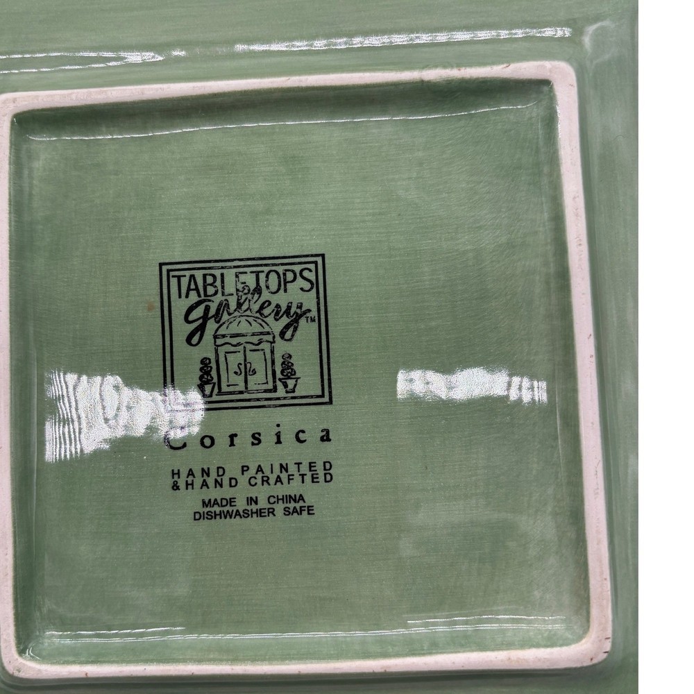 Elegant stoneware plates perfect for any dining occasion. This set of eight square plates features a unique, slightly textured surface in a rich green color. The plates are durable and have a quality feel, promising long-lasting use. The bottom of each plate is marked with the Corsica insignia, adding a touch of exclusivity. Keywords: Corsica dinnerware, green square plates, stoneware plates, dinnerware set, table setting, modern plates, kitchen decor, dining plates, set of 8 plates, square dinner plates, **Sold by a Proud Military Family** ~10% of every item I sell is donated to our charity - Veterans Community Project. Please visit my eBay store for all the items I have listed to help this great cause. If you loved this item, please visit my store for more items like it! Please remember to share the love with a positive feedback! • I ship within 2 business days • All items come from a pet-friendly, smoke-free home