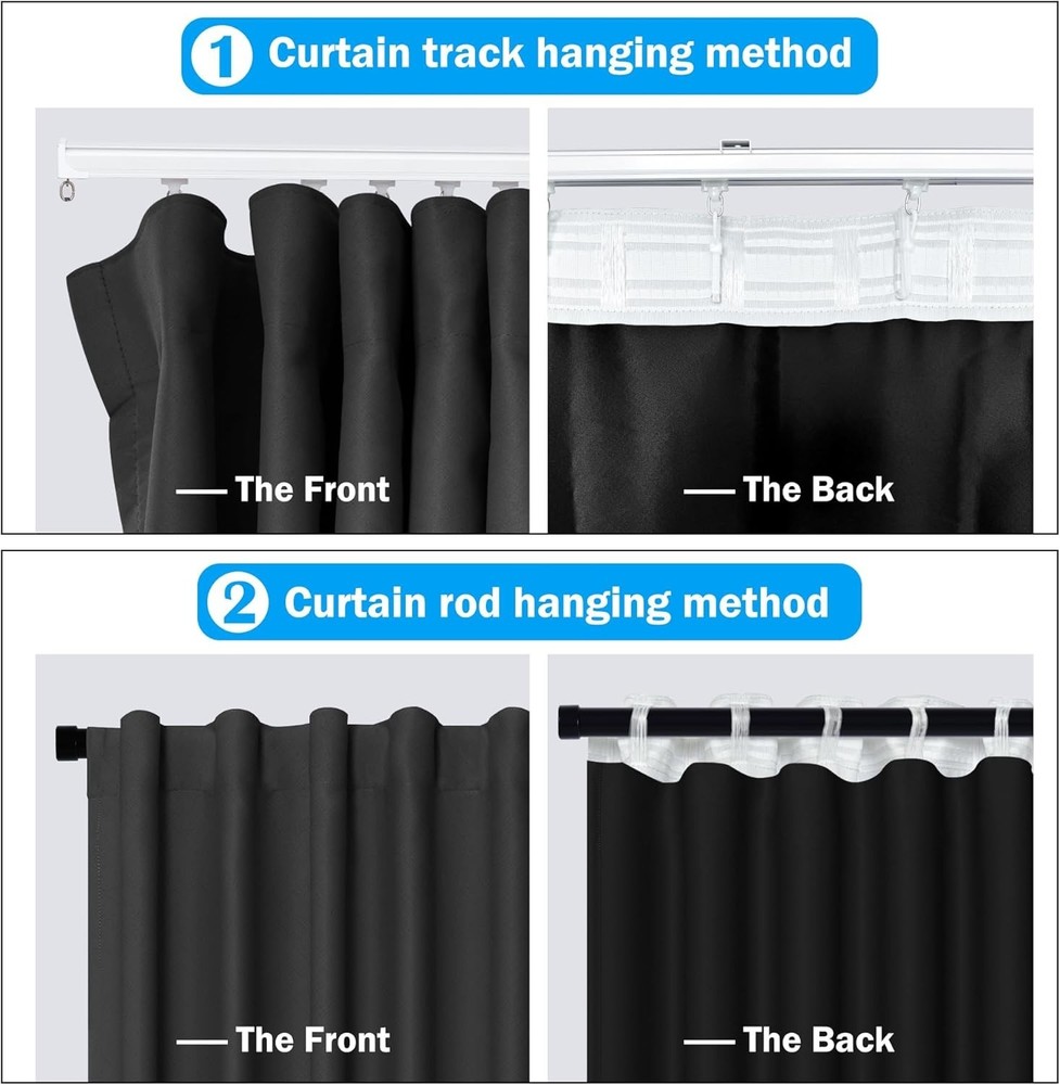 Room Divider Curtains: Curtains can be a temporary solution to create new spaces without building walls, harmoniously dividing your room and creating personal space. Widely used in patio glass doors, bedrooms, living rooms, offices, closets, bars. hooks curtains are suitable for both curtain track and ceiling curtain track / rod. Blackout Curtains: The curtains we offer are 100% black-out, and the additional sewn black lined backing is enough to completely block out sunlight and UV rays. This gives you an environment where the room is completely darkened. Despite the sunny day, you can still get a good night's sleep. Sound Proof Thermal Curtains: Makefeile room divider curtain are madewith woven with 3 layers of durable polyester which are 40% thicker than ordinary curtains,The sound absorption effect is 25% higher than ordinary curtains, and its heat insulation effect is also 30% better than other curtains. Provide you with a quiet and cozy environment for working and resting! Balanced temperature: Thickened polyester fabric can keep indoor temperatures balanced by blocking heat in summer and cold in winter, while providing complete privacy. No chemicals and formaldehyde that are harmful to the human body are added, bringing a harmonious life to your family. Easy to care for: High-quality polyester fiber decorative surfaces can last for years. It can be washed in a washing machine, but you need to keep the water temperature below 86°F, and the detergent can be used as a household detergent without the risk of discoloration and bleaching. After washing, it can be ironed at low temperature.