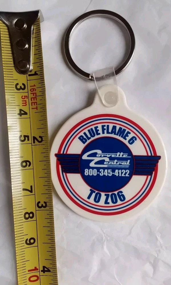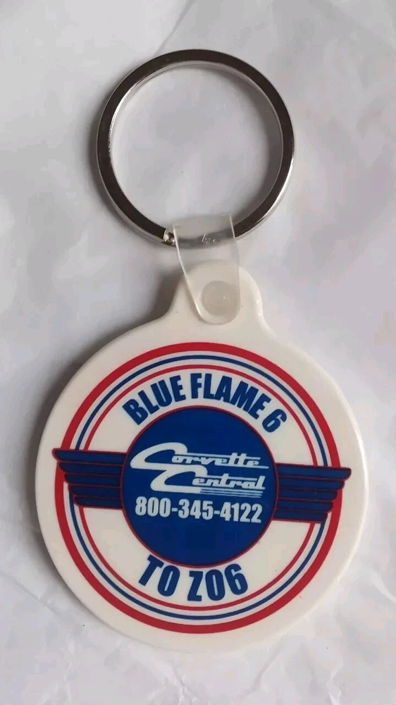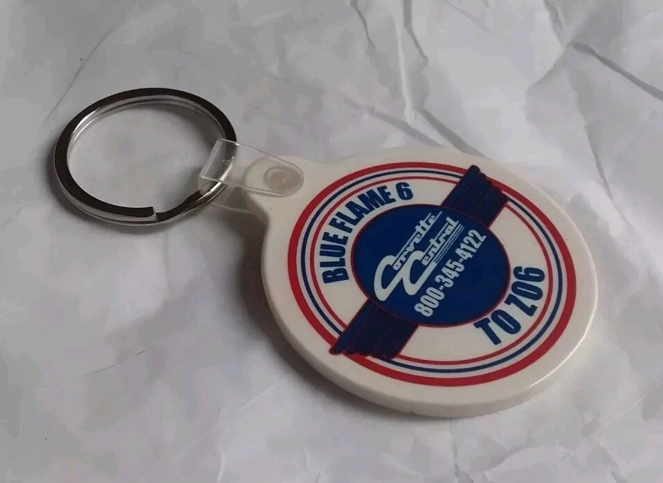 Corvette Central Keychain Blue Flame 6 Soft Plastic Car Key Ring T0 Z06 Vintage