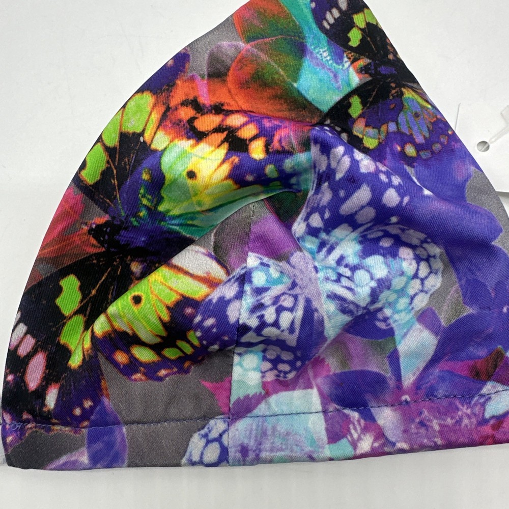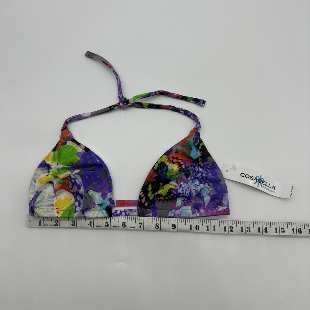 The Cosabella Mare Farfalla ADJ Tri Push Up Top is a stylish bikini top in a flattering push-up style. Made from a blend of spandex and polyamide, this top features a beautiful floral pattern in shades of gray. With delicate lace accents and a classic Italian theme, this top is perfect for beach days or lounging by the pool. Designed by the renowned brand Cosabella in Italy, this top is sure to make a statement in your swimwear collection. Check pictures for flaws and measurements