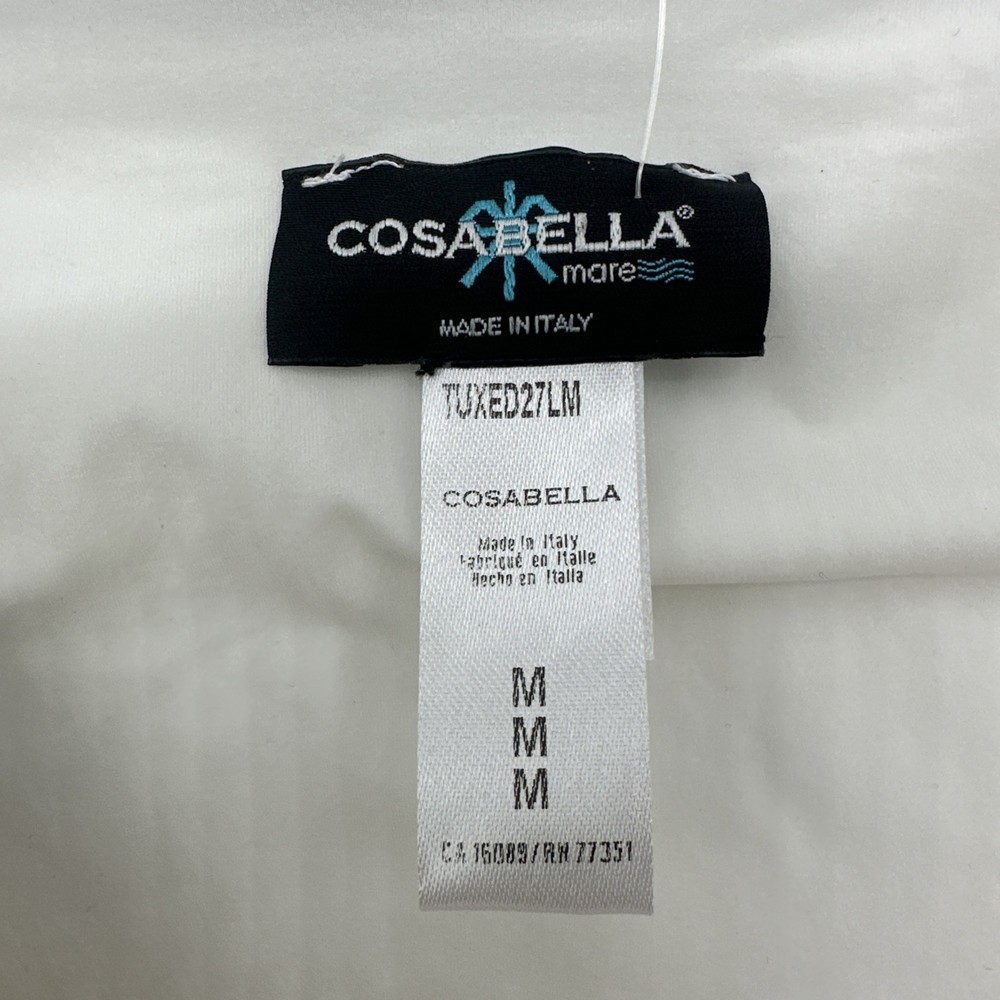 The Cosabella Mare Tuxed222M Women's White Tuxedo One Piece Swim is a stylish and elegant swimwear piece designed in Italy. Made from a blend of spandex and polyamide, this one-piece swimsuit features a solid white color with a stretchy material that provides a comfortable fit. The tuxedo style adds a touch of sophistication, making it perfect for beach days or lounging by the pool. The Italian design and beach theme make this swimsuit a chic choice for women looking for a high-quality and fashionable swimwear option. Check pictures for flaws and measurements