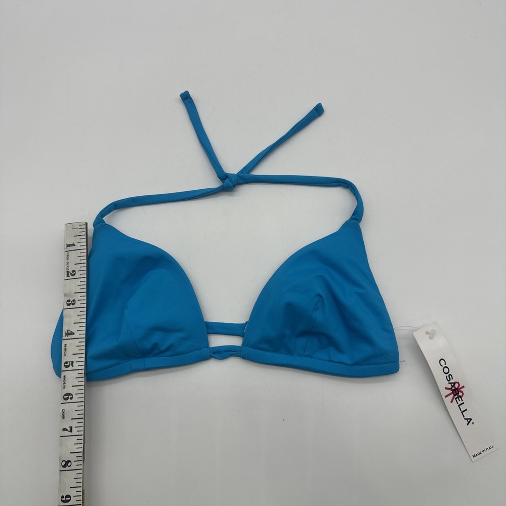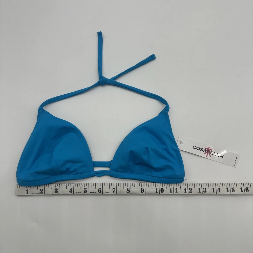 The Cosabella Turquoise Blue Sol Push Up Triangle Swim Top is a stylish and vibrant bikini top designed for women. Made with a blend of spandex and polyamide, this top offers a comfortable and supportive fit. The push-up feature enhances the bust, while the Italian theme adds a touch of elegance to your beach look. With its solid turquoise blue color and trendy design, this top is a perfect choice for any summer getaway or poolside relaxation. Check pictures for flaws and measurements