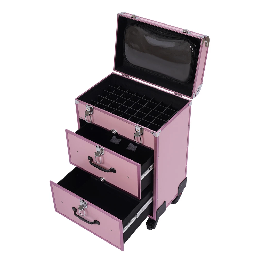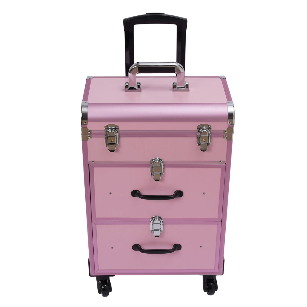 Description This is a movable multi-layered makeup case designed for professional beauty artists to make up anytime and anywhere. This rolling makeup case is constructed of high-quality aluminum alloy that is sturdy and durable. It has extra large capacity compartments and multi-layer drawers. This case is ideal for all people who love beauty or nail art. Key Features High-quality Materials: The frame of the makeup case is wrapped with high-quality aluminum alloy, which will not easily rust and fade. And the thicker, all-aluminum drawbar makes the case more stable, refusing to shake. Large Capacity: This makeup case has 3 layers, the top layer can store nail polish or lipstick; the bottom two drawers can store full-size cosmetics and beauty appliances, such as perms, manicure machines an Cosmetic Pro Rolling Makeup Train Case Aluminum Trolley Train Case Box Organizer Aluminum Pink Rolling Makeup Trolley Train Case Box Organizer Salon Cosmetic Description This is a movable multi-layered makeup case designed for professional beauty artists to make up anytime and anywhere. This rolling makeup case is constructed of high-quality aluminum alloy that is sturdy and durable. It has extra large capacity compartments and multi-layer drawers. This case is ideal for all people who love beauty or nail art. Key Features High-quality Materials: The frame of the makeup case is wrapped with high-quality aluminum alloy, which will not easily rust and fade. And the thicker, all-aluminum drawbar makes the case more stable, refusing to shake. Large Capacity: This makeup case has 3 layers, the top layer can store nail polish or lipstick; the bottom two drawers can store full-size cosmetics and beauty appliances, such as perms, manicure machines and light therapy supplies. This multifunctional product can meet your storage needs. Excellent Weight-bearing Capacity: The rectangular construction and aluminum alloy frame give the case a superb load-bearing capacity (up to 110.3 lbs). You can safely put all your hair and beauty tools on it. Sorted Storage: Beauty products with different functions and sizes are stored in the corresponding drawer and compartment, making the tools ranged orderly, so it is convenient for you to quickly find the tools you want. Easy to Move and Carry: The universal wheels are easy to move and very convenient, especially for nail salons and beauty salons that have a lot of tools and need to move frequently. And it comes with a telescopic pull bar (maximum length is 32.7inchs) and a top handle, which is easy to carry on trips and business trips. Stylish Appearance: This rolling make-up case gives a stylish and exquisite look with its simple construction and stylish pink. Such a retro make-up case will decorate your dressing room well and make a good impression when you are working outside. Secure & Reliable: The metal locks of the case protect the contents securely and the lockable design ensures security and privacy. Worry-free Service: We have been working hard to provide better service and quality for our customers, which is our goal. If there is any quality problem with our products. Please contact us in time. Details Transparent Storage Bag: The transparent storage bag on the inside of the lid allows for wet and dry storage, for example, you can store wet beauty eggs and powder puffs to avoid cross-contamination. Rounded Edges: The top of the cosmetic case has been designed with rounded corners rather than sharp edges to avoid scuffing. Reinforced Lock: Reinforced lock not only makes it convenient for you to open and close, but also does not affect the appearance, and solves the embarrassment of bursting when going out. Application This rolling make-up case is suitable for professional make-up artists, hairdressers, nail technicians, and beauticians in beauty centers, salons, private homes, parties, and other occasions. Specification Number of Layers: 3 Color: Pink Material: Aluminum Alloy Frame and Plastic Fireproof Board Panel Shape: Rectangular Processing Method: Frosted Rolling Wheel Style: Universal Wheel Carrying Parts: Retractable Handle Gross Weight: 9kg/ 19.8lbs Net Weight: 7.5kg/16.5lbs Package Size: 57*42*32cm/22.4*16.5*12.6inch Product Size: 36*23*58cm/14.2*9.1*22.8in Maximum Load:50kg/110.3lbs Package Included 1 x Makeup Case 4 x Universal Wheels 2 x Keys Notes Please allow the slight color difference caused by the shooting light and 1-3cm error due to manual measurement, and make sure you do not mind before you order. Payment Delivery details Terms of sales About us Contact us Payment We accept ebay payment 。 Fees such as import duties, taxes are not included in the item price or shipping costs. These charges are the buyer's responsibility. Delivery details Shipping: 2-9 working days to: USA Terms of sales We maintain high standards of excellence and strive for hundred percent customer satisfaction. Feedback is very important to us. We hope that you contact us immediately before you give neutral or negative feedback, so that we can address your concerns. It is impossible to address issues if we do not know about them! About us Your satis faction is our ultimate goal. We work hard to earn your trust and future business. Our certified technicians have tested each item before shipping. The unit comes with 1 year limited warranty on all manufacturing defects. a) If you receive a defective item, you may return it or ask for a discount. Please contact us within 14 days after you receive the package. b) What you returned must be intact and in its original packaging as re? u. Customer is responsible for shipping costs of the returned item. c) We will cover the cost of shipping back t with the shipping rate indicated in the registration page. We will send you a new unit or refund the full payment you paid. Thank you. Contact us Business Hour Business Hour: Monday To Friday: 8:30 AM to 5:00 PM (Beijing China time) Due to time zones, our reply to your questions may not be immedi