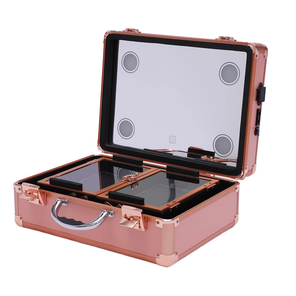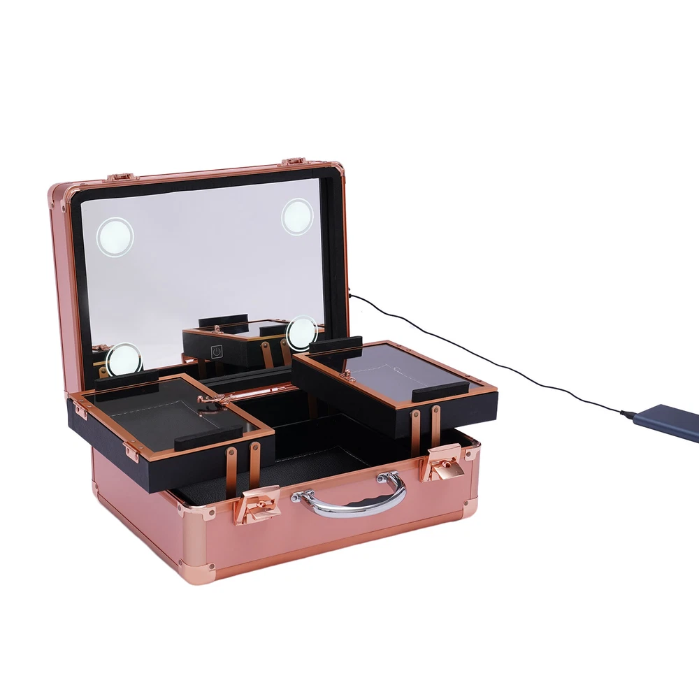 Specification Main Material: ABS Color: Rose Gold Plug Type: US Light Source: LED Light Color: Cold White, Warm White and Natural Light Voltage: 110-240v, 50-60Hz Power Cord Length: 1.8m/5.91ft Package Size: 40*21*35cm/15.75*8.27*13.78in Top Cover Mirror Size: 37*28*6.5cm/14.6*11*2.6in Bottom Tray Size: 37*28*9.5cm/14.6*11*3.7in Overall Case Size: 37*28*16cm/14.6*11*6.3in Center Tray Size: 15*22*4cm/5.9*8.7*1.6in Gross Weight: 4kg/8.82lbs Net Weight: 3kg/6.61lbs Package Included 1*Makeup Train Case 1* Power Cord Cosmetic Storing Organizer Box Makeup Cosmetic Storage Makeup Case w/Mirror Description Whether traveling or on business, we all want to show our most sophisticated appearance. But we are always annoyed because the cosmetics are too fragmented and not well stored. Therefore, we have customized this makeup train case for you. It comes with 4 dimmable LED lights and a mirror, making it a self-contained portable vanity. Many features such as compartmentalized storage and sophisticated appearance make it stand out. Key Features Large Capacity Zoned Storage: It has two layers. The upper layer consists of 2 separate trays of 5.9*8.7*1.6inch for your usual lipsticks, brushes, blushes, etc. The lower layer is a 14.6*11*3.7in a one-piece tray that provides more space for your nail polish, essential oils, foundation, etc, so you can say goodbye to a cluttered desktop. Elegant Look: It is made in rose gold style with all the components matching that color and keeping in line with the specially made handles for an impressive look. Makeup Assistant: It comes with 4 LED lights designed in the corners of the lid and a top mirror. The LED lights can adjust the light color between cold white, warm white and natural light, and the brightness of the makeup lights can be adjusted by touching the screen, allowing you to apply makeup anytime and anywhere. Security Protection: It comes with 2 locks to protect privacy and security during travel. Therefore, it is also suitable for holding watches, bracelets and some other valuables. Considerate Design: This make-up case comes with a 12V rechargeable jack, an external power supply jack, and a power jack. And the power cord can be used for an external curling iron, mobile phone, and hairdryer power when it is powered up to meet your needs while working. High Quality: It is made of high-quality ABS material, which is sturdy and durable, and the metal reinforced corners have good wear resistance. It can be used for many years. Easy to Clean: ABS stain-proof plastic is easy to clean. If the tray gets dirty with cosmetics, just wipe it with a damp cloth and it will be as good as new. Humanized Design: In addition to the makeup fire compartment itself which is closed, the two separate trays on the upper level also have their separate lids, which can effectively prevent dust and stains on your cosmetics. Ideal Gift: This elegant makeup train case is what every girl needs, so it is a great gift for girls. Portable: It is designed as a mini suitcase with dimensions of 5.9*8.7*1.6in and weighs only 6.61lbs. The curved grip makes it easy to hold and carry on your journey. Details Enhanced Corners: Durable aluminum material for long-term use can hold all your daily cosmetics and tools and keep their shape. Glass Lids: The two separate trays on the upper level feature clear glass lids, making it easy for you to be able to find your cosmetics at a glance. 5.91ft Power Cord: It comes with a 5.91ft power cord, allowing you to have plenty of length at your disposal. Therefore, it is more convenient for you to use it. Application This product is suitable for storing cosmetics and skin care products, as well as jewelry, such as necklaces and earrings. Besides, it also can be used in dark places for makeup. Specification Main Material: ABS Color: Rose Gold Plug Type: US Light Source: LED Light Color: Cold White, Warm White and Natural Light Voltage: 110-240v, 50-60Hz Power Cord Length: 1.8m/5.91ft Package Size: 40*21*35cm/15.75*8.27*13.78in Top Cover Mirror Size: 37*28*6.5cm/14.6*11*2.6in Bottom Tray Size: 37*28*9.5cm/14.6*11*3.7in Overall Case Size: 37*28*16cm/14.6*11*6.3in Center Tray Size: 15*22*4cm/5.9*8.7*1.6in Gross Weight: 4kg/8.82lbs Net Weight: 3kg/6.61lbs Package Included 1*Makeup Train Case 1* Power Cord Notes Please allow the slight color difference caused by the shooting light and 1-3cm error due to manual measurement, and make sure you do not mind before you order. Payment Delivery details Terms of sales About us Contact us Payment We accept ebay payment 。 Fees such as import duties, taxes are not included in the item price or shipping costs. These charges are the buyer's responsibility. Delivery details Shipping: 2-9 working days to: USA Terms of sales We maintain high standards of excellence and strive for hundred percent customer satisfaction. Feedback is very important to us. We hope that you contact us immediately before you give neutral or negative feedback, so that we can address your concerns. It is impossible to address issues if we do not know about them! About us Your satis faction is our ultimate goal. We work hard to earn your trust and future business. Our certified technicians have tested each item before shipping. The unit comes with 1 year limited warranty on all manufacturing defects. a) If you receive a defective item, you may return it or ask for a discount. Please contact us within 14 days after you receive the package. b) What you returned must be intact and in its original packaging as re? u. Customer is responsible for shipping costs of the returned item. c) We will cover the cost of shipping back t with the shipping rate indicated in the registration page. We will send you a new unit or refund the full payment you paid. Thank you. Contact us Business Hour Business Hour: Monday To Friday: 8:30 AM to 5:00 PM (Beijing China time) Due to time zones, our reply to your questions may not be immediately. But within above working time, we will