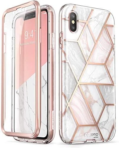 Cosmo Series Designed for iPhone Xs Max Case 2018 Release, Full-Body Bumper Case with Built-in Screen Protector, Marble, 6.5 360-Degree coverage Features a shock-absorbent TPU bumper and scratch-resistant polycarbonate back plate,Front cover includes a touch sensitive built-in screen protector that prevents scratches and cracks,Features raised bezel to keep phone screen and camera off surfaces.Wireless charge enabled,Back cover is fingerprint-resistant and Features a glitter design that compliments your personal style,Designed specifically for iPhone XS Max case (2018 Release), Not compatible with standard iPhone x/ XS
