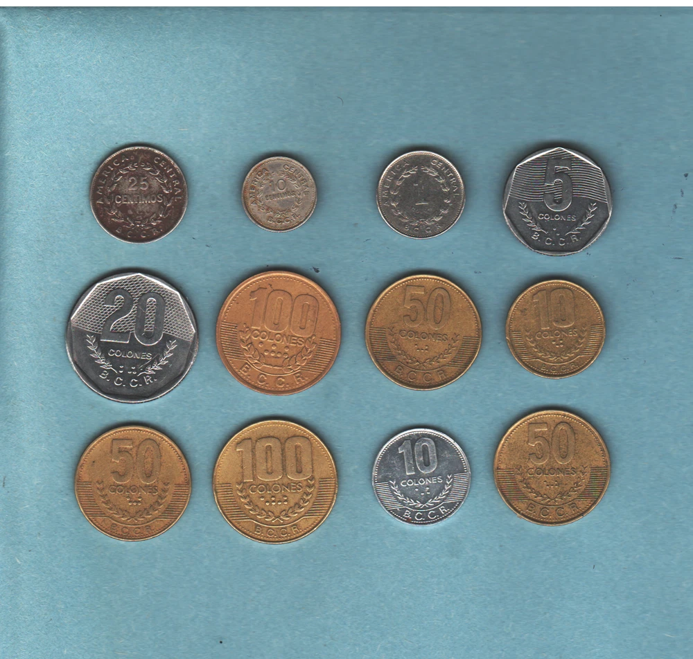 Costa Rica 12-Coin Lot: 1 - 1969 Twenty Five Centimos 1 - 1976 Ten Centimos 1 - 1984 One Colon 1 - 1985 Five Colones 1 - 1985 Twenty Colones 1 - 1995 One Hundred Colones 1 - 1997 Fifty Colones 1 - 1999 Ten Colones 1 - 1999 Fifty Colones 1 - 1999 One Hundred Colones 1 - 2005 Ten Colones 1 - 2002 Fifty Colones Would make a great Heritage Gift or a fine addition to your personal collection. You grade. Selling all of my coins "AS IS", no returns.