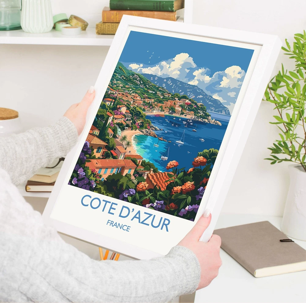 Cote Dazur Travel Poster Wall Art Travel Print Of Cote Dazur Cote Dazur Art Lovers Gift South Of France French Coast Art Gift Material: Premium luster photo paper Print type: Inkjet printing One side printed + The finish provides the highest possible resolution and color saturation + Lasts up to 200 years in color and 400 years in black-and-white + Printed on high-quality resin-coated photo base paper medium + Posters can be hung with double-sided tape, tacks, or framed + Hand washing with a gentle cry cloth is recommended for extended durability I will hand select the best choice of paper for your chosen design to ensure top quality results for a beautiful, bright and luxurious print. All prints are sealed in cellophane slips for protection during transportation, and are shipped in a protective cardboard envelope.