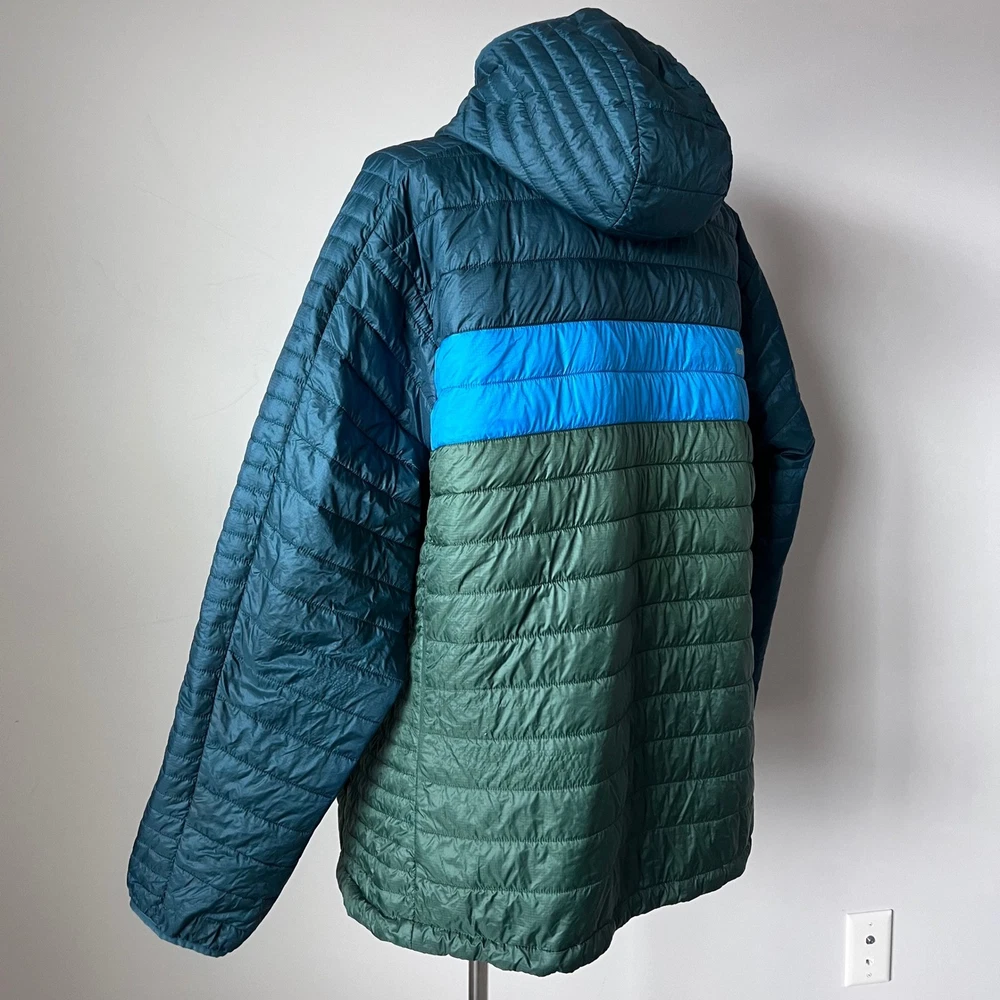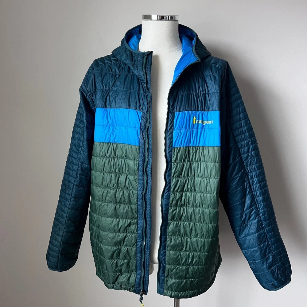 Jacket/Coat Length: Mid-Length Size Type: Regular Garment Care: Machine Washable Style: Puffer Jacket Country of Origin: China Occasion: Casual, Travel, Workwear Size: 2XL Brand: Cotopaxi Department: Men Closure: Zip Fabric Type: Microfiber Season: Fall, Spring, Winter Model: Cotopaxi Capa Jacket Lining Material: Nylon Vintage: No Insulation Material: Polyester Accents: Logo, Zipper, Quilted Fit: Regular Outer Shell Material: Nylon Features: Full Zip, Hooded, Insulated, Lightweight, Lined, Breathable, All Seasons, Thermal, Limited Edition, Pockets, Packable Color: Multicolor Type: Jacket Performance/Activity: Hiking, Walking