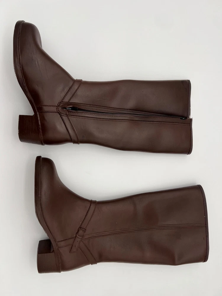 Elevate your footwear collection with the timeless elegance of Styled In Paris' Cottage Craft boots. Crafted with sophistication, these knee-high boots feature a sleek brown vegan leather upper, complemented by a durable rubber outsole for reliable traction. Designed to cater to a size 7 US (EUR 38), these boots are a versatile addition to any wardrobe, ideal for an array of casual occasions. The boots boast a comfortable mid-calf shaft style with an almond toe and a low heel height for day-long wearability. With a solid pattern that exudes understated chicness, and a synthetic lining ensuring a snug fit, these versatile boots are ready to complement your every ensemble, seamlessly transitioning through the seasons from spring to winter.