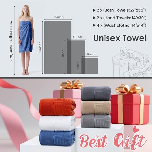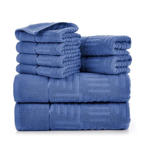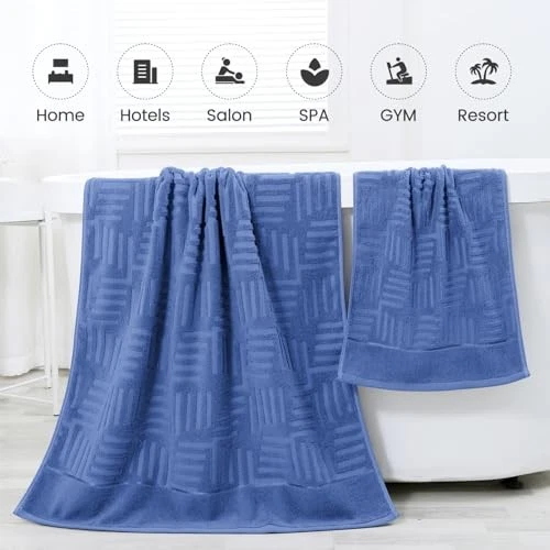 Cotton Bath Towel Set 8-Piece - 2 Large Bath Towels (27"x55"), 2 Hand 01-blue