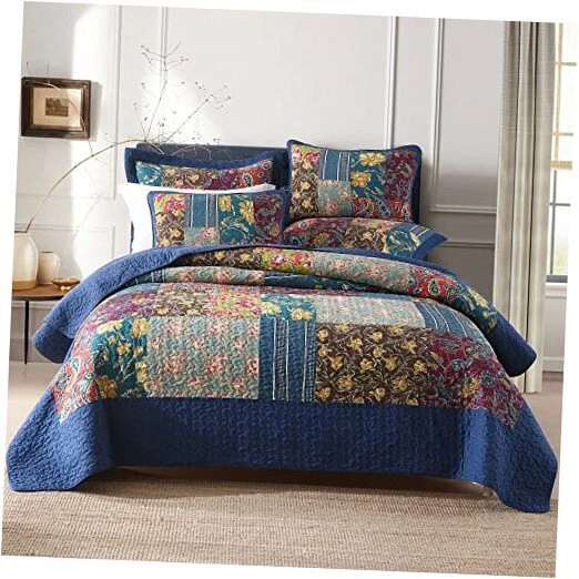 Return Policy Fast Delivery Trusted seller Cotton Bedspread Quilt Sets Reversible Bedding Coverlet Sets,3 Pieces Patchwork Blue Vintage Floral Paisley Bedspread, Queen Size Product Description Cotton Bedspread: 100% cotton fabric both in covers and fillings, soft and cozy. Real patchwork: Special splicing handmade craft with intense stitching process making the real patchwork bedspread more durable and comfortable. Rustic vintage design: European classical paisley floral pattern making your room more elegant and charming, creating a wonderful bedroom space. Reversible quilt sets: This quilt has vintage rustic floral pattern in the front and pure blue color in the back, which is reversible to use. 3 pieces quilt sets: 1 queen size bedspread (90 by96 Inch) with 2 Pillowcase (20 by27 Inch). Machine washable: Wash separately in cold water. Tumble dry at low heat. Shipping Returns Payment Shipping Shipping is FREE to all addresses other than APO/PO boxes in the lower 48 states. All our stock ships from US-based warehouses. Shipped via USPS or UPS (depending on location and package weight) Unless stated otherwise, all orders will ship within 24-72 hours of your payment being processed. Check our feedback to see the great reviews of FAST shipping we offer. Returns Seller does not accept returns Payment We currently accept payment via eBay managed payments only. Once payment is cleared, we will dispatch your shipment within 1-3 business days. Please refer to the "Shipping" tab for more information regarding shipping speed to your destination.