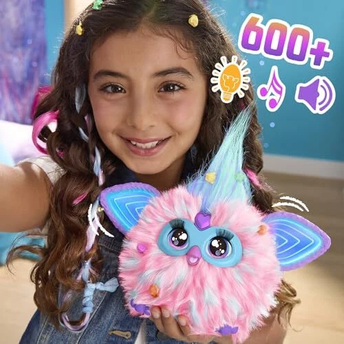 Hey shopper, meet ! This curious little creature is an incredibly interactive toy friend with 5 voice activated modes and over 600 phrases, jokes, songs, and so much more to discover. Tell what you want to do with these 5 commands: Dance Party, Copy Cat, Tell My Fortune, Let's Chill, and Lightshow. also responds to hugs, pats on the head, shaking, and feeding its pretend pizza charm (or your finger - yum). The more they play, the more fun they can unlock! Care for by feeding them and combing their hair. Dress them up with the clip-on beads and make fashion accessories that can wear, too. Electronic plush toys for 6 year old girls and boys and up make great gifts for and a fun companion to have by their side. As would say, "Dah-no-lah" (party time!) and all related properties are trademarks of Hasbro. HEY BESTIE, MEET : Give a friend who's always ready for BFF time with this incredibly interactive toy for girls and boys that moves, talks, sings, lights up, and even responds to speech YOUR VOICE UNLOCKS 5 MODES: Press the voice activated toy's heart gem and say "Hey !" to make listen, then say a command to explore each mode (does not connect to the internet) OVER 600 RESPONSES: Chat, sing, and laugh together with this talking toy that's full of adorable, hilarious, and sometimes sassy surprises. Speaks both English and Furbish COOL LIGHTS AND SWEET DANCE MOVES: is also a dancing toy with amazing blinking eyes and a light up color changing toy whose ears glow with different light effects TALKS TO OTHER FRIENDS: When you have 2 friends together, pair them up and watch them interact! Each sold separately. DOES NOT CONNECT TO THE INTERNET (BUT DOES SHUT OFF): doesn't connect to the internet or other devices for a screen-free experience. Even better, can power down when the fun is done for the day GIVE THE GIFT OF FRIENDSHIP: Standing over 6 inches/15 cm tall, is a great gift for girls and boys to take on the go or bring joy to their room. Find your own and give a gift to remember