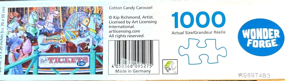 Cotton Candy Carousel HTF COMP 1000 pc Puzzle Ferris Wheel Cotton Candy Girl Buy more than one item and save a lot on postage! I am happy to combine shipping on multiple items by weight. I will refund any overage paid. Please look at my site joycescorner for additional puzzles and other items. I usually add a few different one each week. Feel free to contact me if you have any questions. I try to ship items within 2 business days of completed payment. Thank you for looking!