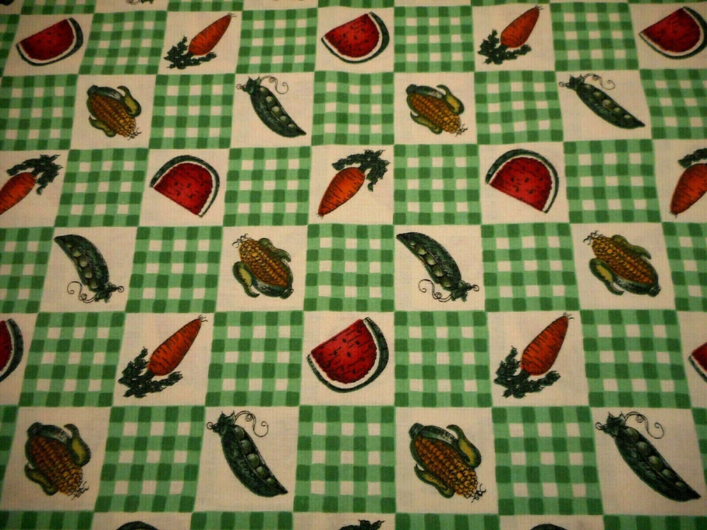 This is a very nice 100% cotton fabric. This is a Vintage fabric that is out of print. It has carrots, corn, peas & watermelon on beige patches separated by green & beige checked patches. Computer monitors show colors and shades differently. If you have any questions regarding this, please contact me before purchasing the item. I have been a quilter for 30 years and am an accomplished seamstress and would be happy to answer any question you might have. This is for 1 Yard of fabric. It you purchase more than 1 Yard, I will give you one continuous cut. If you have a problem with anything you purchase from me, please contact me before leaving neutral or negative feedback and I will work it out with you. Payment is due within 48 hours. Payments that aren't receive within 5 days will automatically go to Ebay's resolution center for non-payment. INSTRUCTIONS FOR COMBINED SHIPPING: I do combine shipping. Put all your items into your shopping cart & request an invoice using the request total option BEFORE completing the payment process, or I won't be able to combine your shipping. Payment is due upon receipt of the invoice. Thank you for looking and God bless you and your family. IF THERE IS A PROBLEM WITH ANY PURCHASE, PLEASE CONTACT ME, THE SELLER, VIA EBAY'S MESSAGING SYSTEM PRIOR TO OPENING A CASE--OPENING A CASE, EVEN IF RESOLVED SMOOTHLY, CAN HURT THE SELLER'S RATINGS. THANK YOU