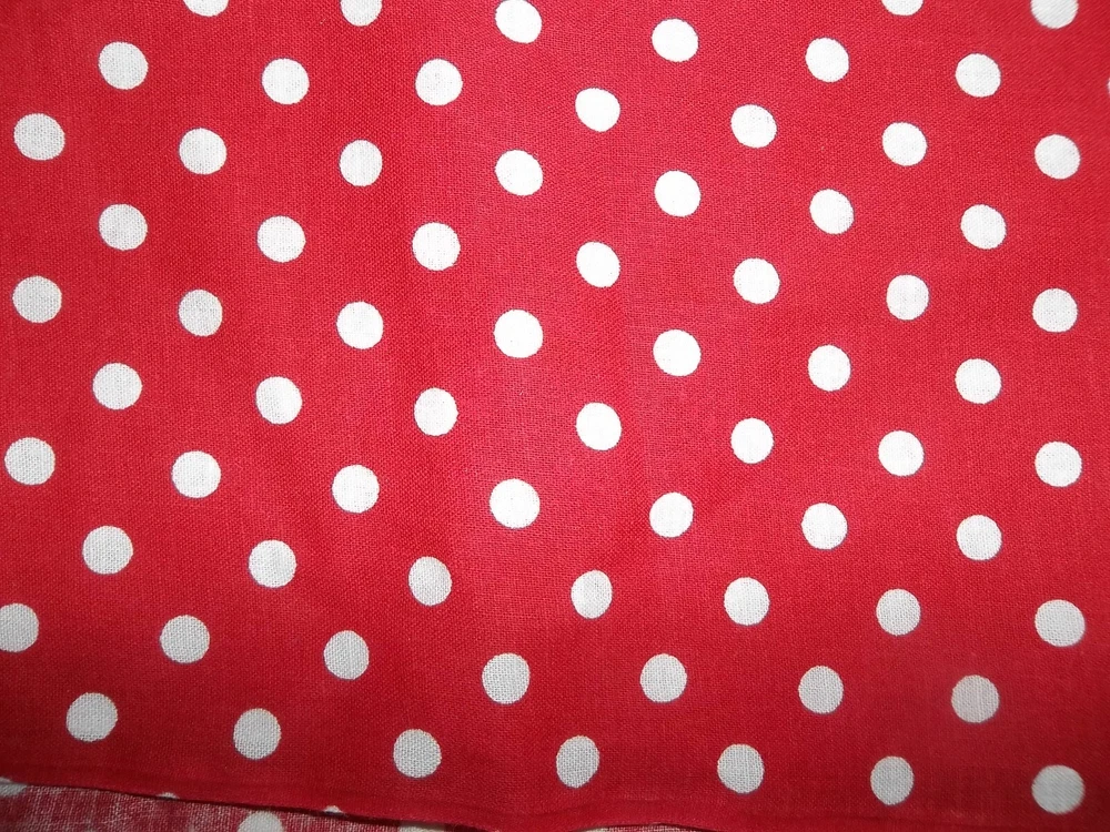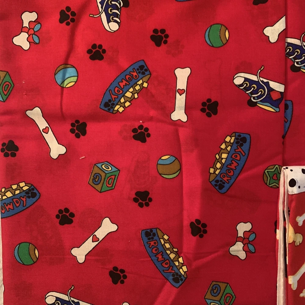 Fabric: Lot of 8 Fabrics all red prints Timeless Treasures red dogs print 9 x 44" Red Dog theme toss print Dream Spinners 2 yards x 44" white with red hearts irregular shape pc. less than a yard Fleur de lis print red on white 1 yard x 44" red white polka dot 2 pieces 19 x 8" red with white sailboats 19 x 32" red and green mini floral 24 x 25" plus odd extensions red floral on white 2 pieces 22 x 17" plus 7 varying size usable scrap A STASH BUILDER! Good amount for the price. Attractive prints. Pre-owned, but new - never used, from an estate stash. Will combine ship with other fabric lots. .