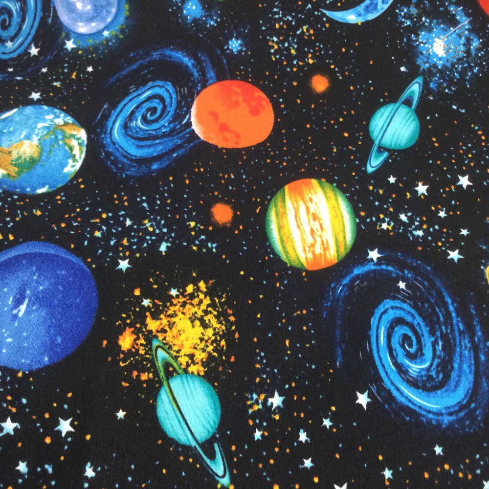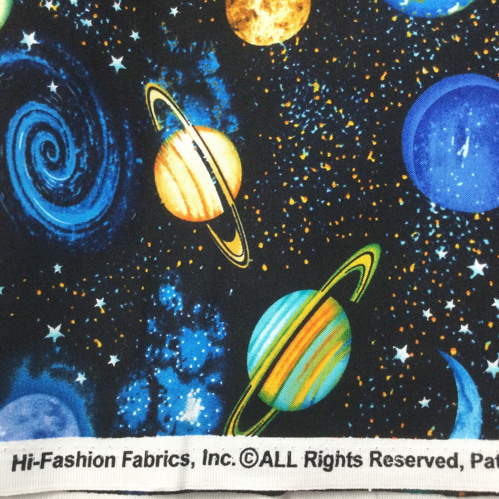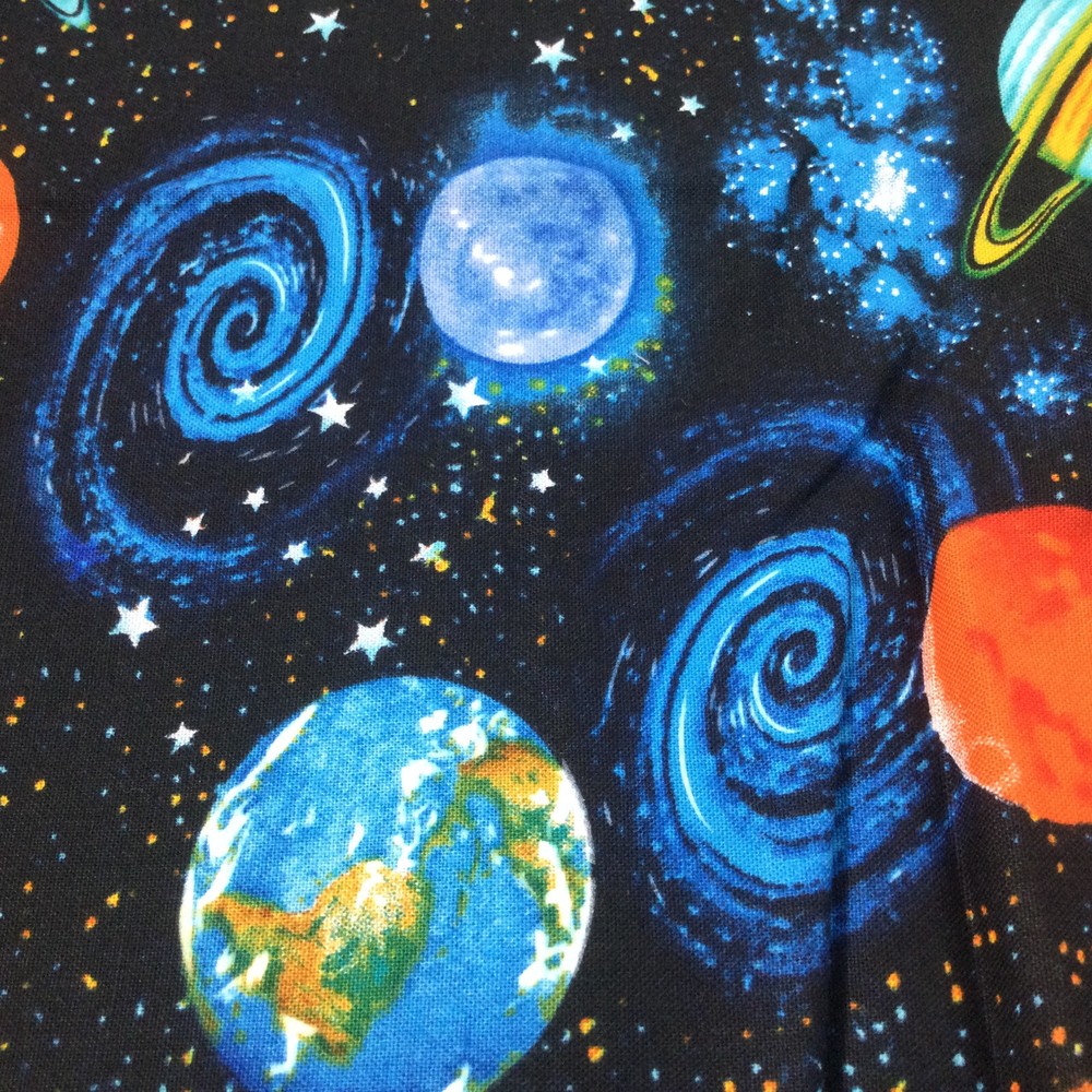 Cotton Fabric Remnant Blue Orange Black Universe Planets Kids Room. 60" L x 46" W. InvN/ES/3