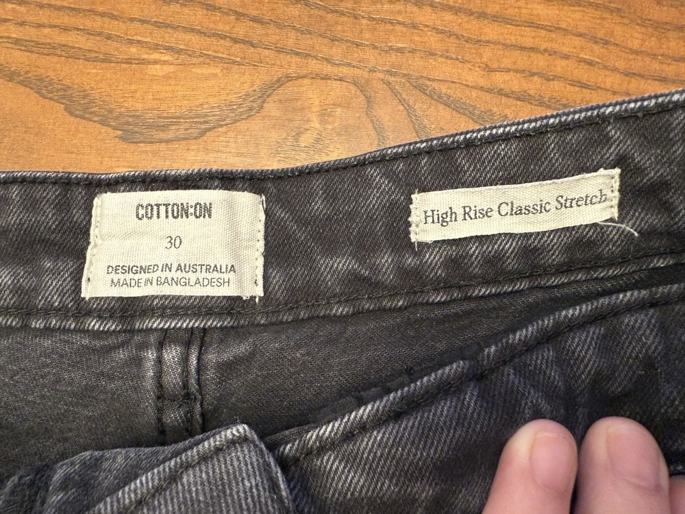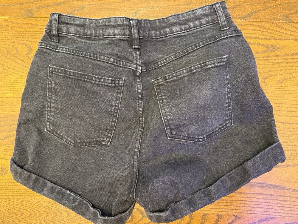 The Cotton On Black Jean Shorts in size 30 are made of 99% cotton with a high rise fit, perfect for a casual occasion during the summer or spring seasons. These regular fit shorts feature a flat front with a button closure and a 5-pocket design, making them both stylish and functional. The black denim fabric adds a versatile touch to the shorts, while the brand Cotton On ensures quality and style. Machine washable and easy to care for, these shorts offer comfort and convenience for everyday wear.