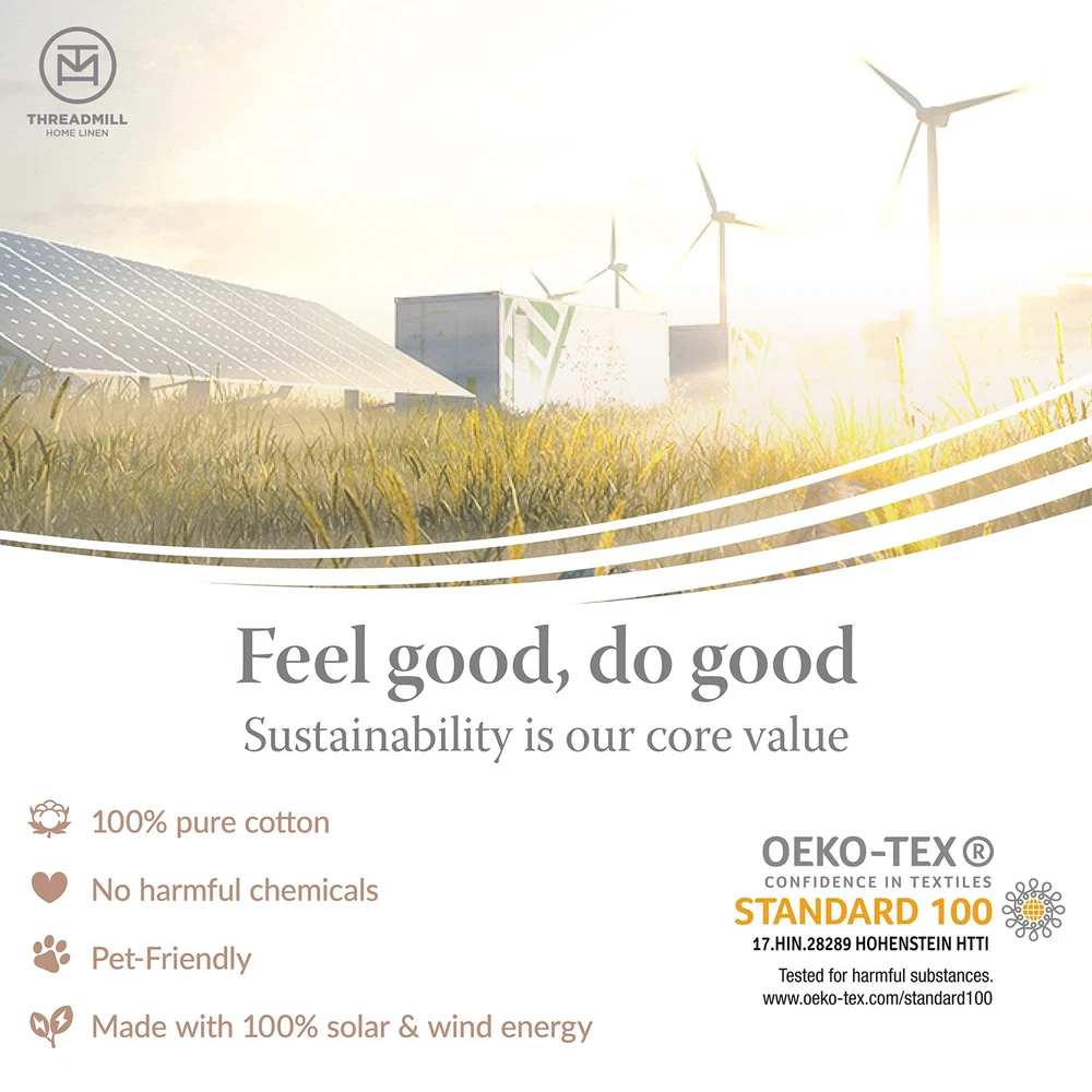 ALL-IN-SOFTNESS & COMFORT WITH 100% PURE COTTON JACQUARD BEDDING: Welcome cool and cozy sleepy nights with our simple, everyday use 300 thread count collection. Crafted with long staple cotton yarns, these smooth sheets have the unmatched comfort, lightweight, and softness of a cloud. This signature jacquard design bedding set provides remarkable elegance and durability, making them completely worth the price. LIGHTWEIGHT BEDDING SET WITH SNUGLY FITTING DEEP POCKET BOTTOM SHEET: Enjoy breezy nights and forget night sweats with our cooling and airy 300 thread count sheets. Each 4 piece Queen sheet set includes 1 flat sheet (92" W x 104" L), 1 fitted sheet (60" W x 80" L + 16" deep pocket) and 2 Standard pillowcases (20" W x 30" L). Designed to snugly fit your mattress, the elasticized bottom sheet comes with a sizable deep pocket and stays tucked through the night. CONVENIENT, MACHINE WASHABLE BED LINENS WITH UNBEATABLE QUALITY: Get affordable bedding with the quality of higher thread count sheets in our 300 thread count sheet set. Each set is expertly made using superior quality materials to ensure resistance, fade resistance, and long-lasting strength. They get softer and softer with every wash, making them worth every penny. To avoid shrinkage and wrinkles, machine wash them at room temperature, tumble dry on low and fold them neatly right after. ACCENTUATE YOUR BEDROOM DECOR WITH ELEGANCE: Master bedroom or guest room, our simple yet classy cotton sheets are perfect for every room in your house. Our elegant 300 thread count range is meant for affordable yet ultimate bedroom experience. Give your bedroom a pop of color or add a subtle hue of pastel, these divine sheets can work wonders for all. With attractive colors, these bedding sets also bring with them an undeniable cozy feel & comfortable touch for the ideal good nights’ sleep. CERTIFIED & SUSTAINABLE PRACTICES WITH 100% SATISFACTION : We take pride in making some of the world’s finest linens while respecting the environment. Our products and practices are free from harmful chemicals, earning the OEKO TEX certification. All these premium sheets are manufactured in wind and solar energy powered factory. They are packed in a zero plastic, reusable cotton tote bag and delivered with a 100% satisfaction , giving you exceptional .