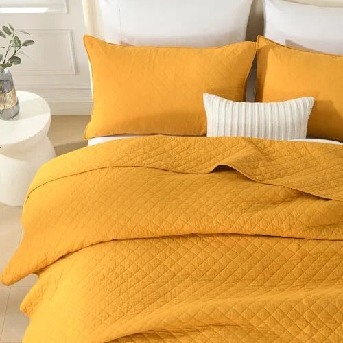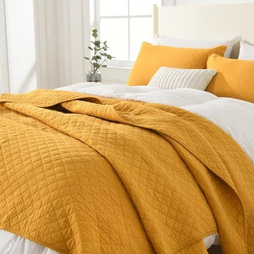 Return Policy Fast Delivery Trusted seller Cotton Quilt Bedding Sets Queen Size, 3 Pieces Reversible Lightweight Coverlets Comforters Bedspreads for All Seasons,Geometric Stitched Pattern,Yellow Product Description Durable soft Cotton Bedspread: 100% pure cotton, more durable, soft, lightweight and environmentally friendly, which helps you to enjoy a great sleeping environment every night for all seasons. Package includes: This Quilt set Queen includes 1 reversible quilt Queen (90x98inch) and 2 pillow shams (20x 27inch), perfect for queen size beds. Nice Decor: We put more attention on the ability of our 3-piece quilt sets’ design and workmanship. Special elegant solid geometric pattern coupling with a wide range of color options. T's always a color to match your home's style. All Season use bedding sets: This quilt set is suitable for year-round use. Super lightweight as a quilt for summer nights and delivers essential supplementary warmth as a bedspread during cold winter days. Easy care: Machine wash separately in cold water, won't wrinkle or shrink even after washing. Tumble dry on low and do not bleach. Shipping Returns Payment Shipping Shipping is FREE to all addresses other than APO/PO boxes in the lower 48 states. All our stock ships from US-based warehouses. Shipped via USPS or UPS (depending on location and package weight) Unless stated otherwise, all orders will ship within 24-72 hours of your payment being processed. Check our feedback to see the great reviews of FAST shipping we offer. Returns Seller does not accept returns Payment We currently accept payment via eBay managed payments only. Once payment is cleared, we will dispatch your shipment within 1-3 business days. Please refer to the "Shipping" tab for more information regarding shipping speed to your destination.