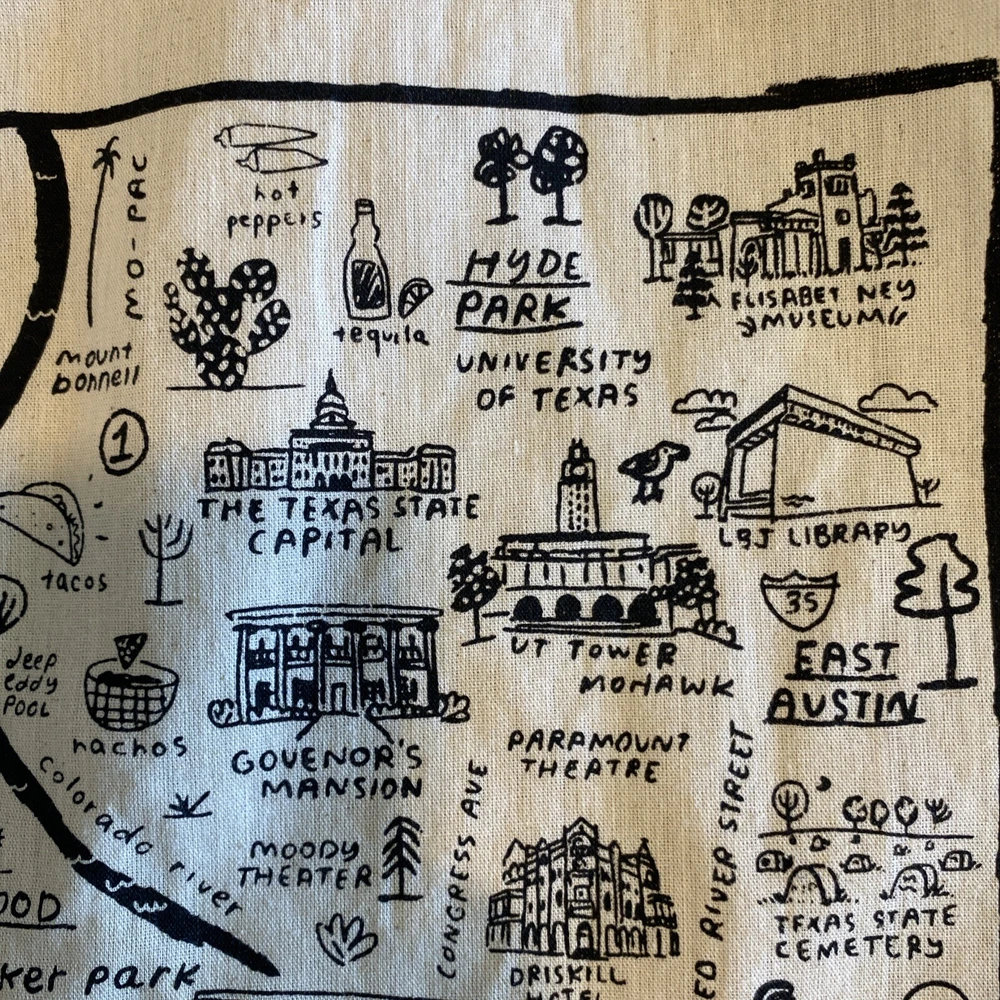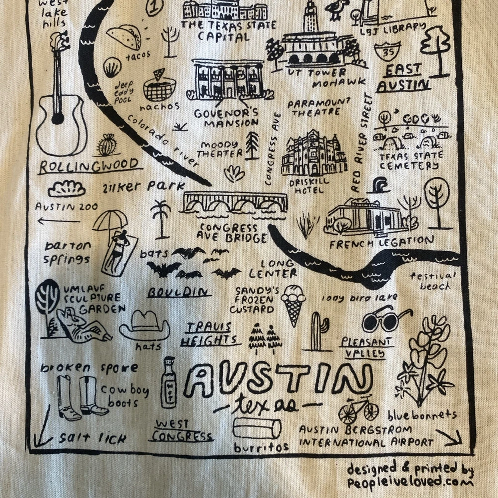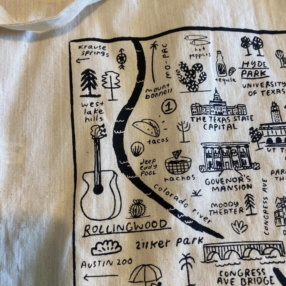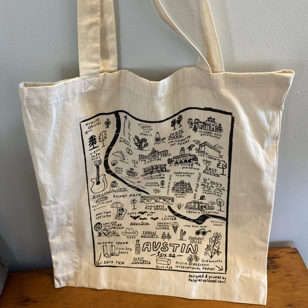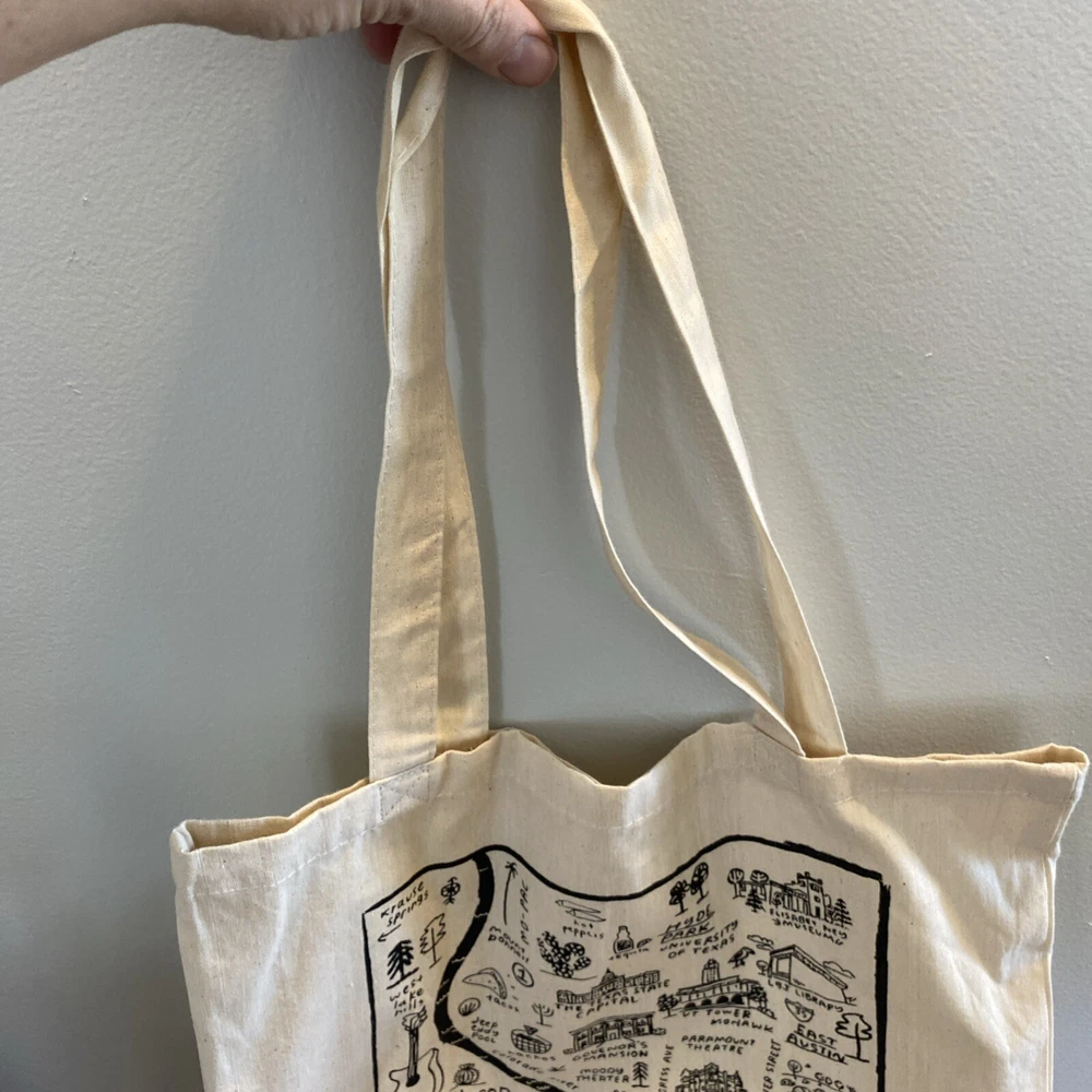 Cotton Tote Bag Austin Texas Canvas Beige Local Landmarks Printed