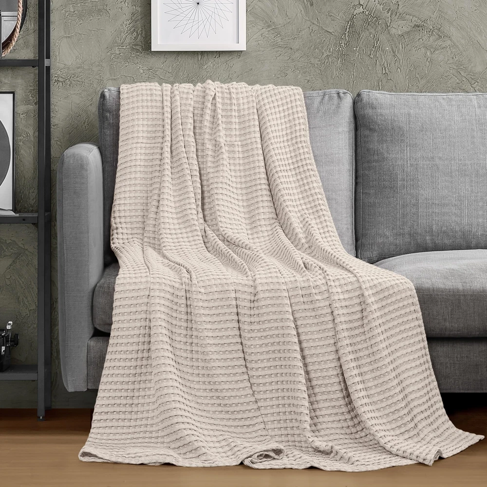 Waffle Weave – Skillfully constructed and neatly woven with a waffle weave texture, available in Queen, King, Twin Big, Throw and Full size is perfect for your comfort. The waffle weave pattern gives off a plush yet smooth feel. Add this layer of a cozy blanket to your bedding for a soothing retreat while enhancing the décor of the room. Quality Cotton Material – The waffle weave blanket is made of 100% cotton, creating a lavish experience for you and your family. When you drape it over yourself, on the bed or the couch, you will feel that it’s lightweight and allows breathability; providing a peaceful sleep at night. Solid Craftmanship – Featuring ring spun technology, it is expertly designed with self-binding edging that makes these blankets stronger and softer. Hence, the finishing of our waffle weave blankets is flawless and thorough. All-Season Blanket – A bedding essential in day-to-day life, this blanket will keep you warm in winters and cool on a hot summer night. This blanket has a versatile usage apart from bed or couch layering. You can use it outdoors for a picnic, traveling, while resting at the office, or carrying it in your cars. Care Instructions – The waffle weave blankets can be washed easily, as the fabric is cotton. There is no need to use harsh chemicals. They can be tumble dried or hung up to dry. To obtain the best results, it is recommended to wash them separately on first use.