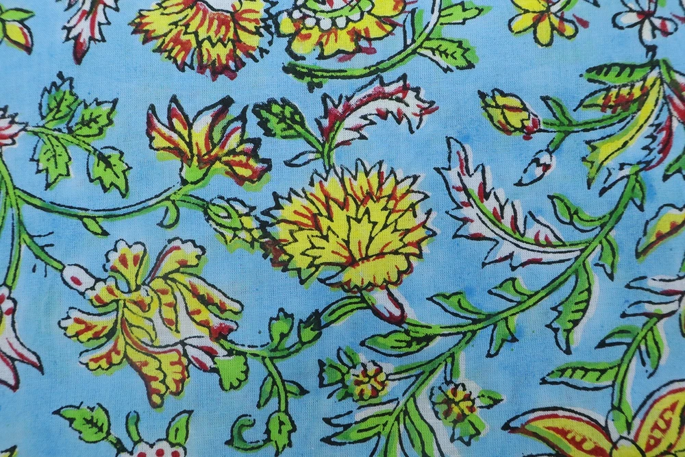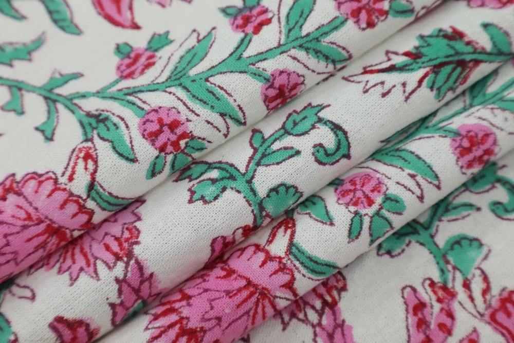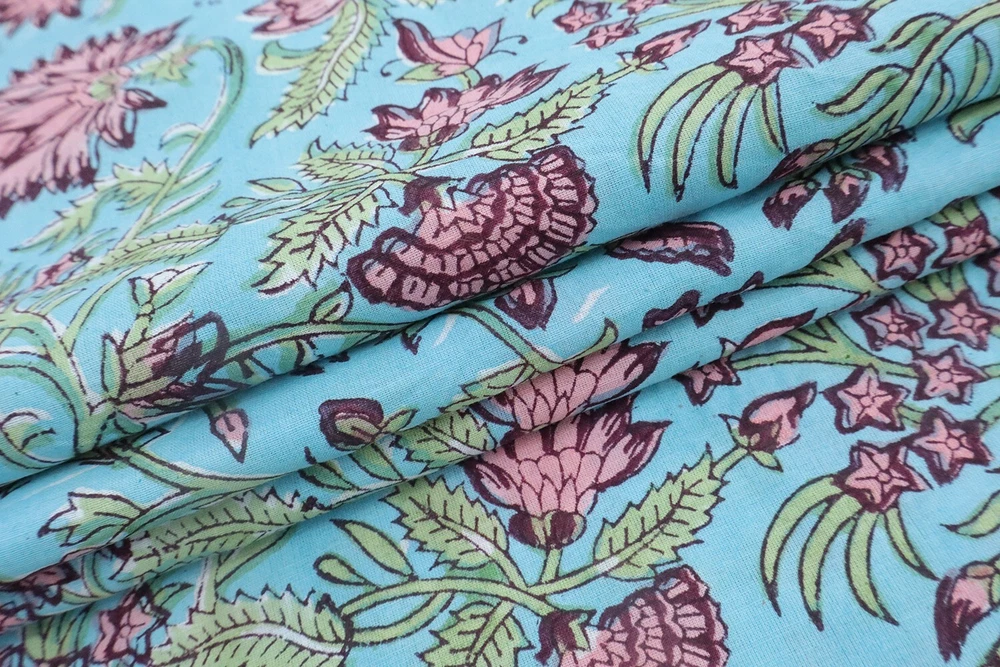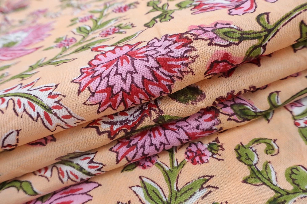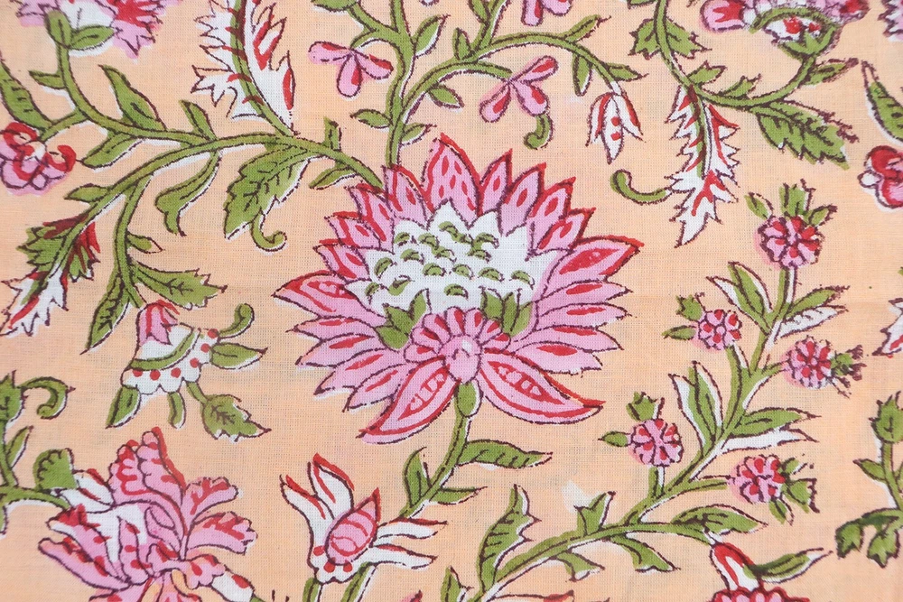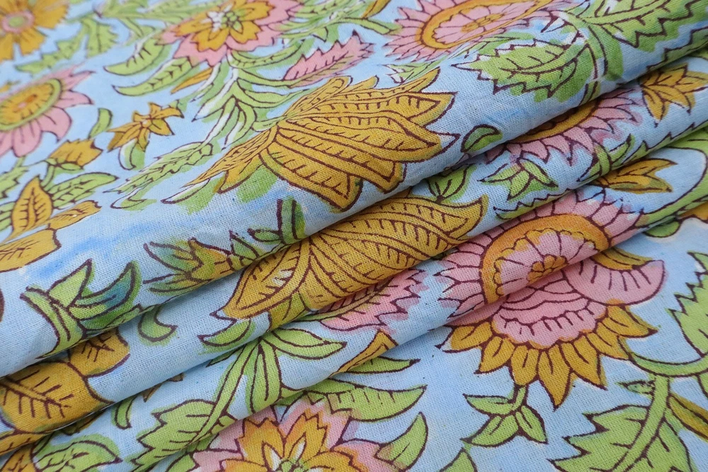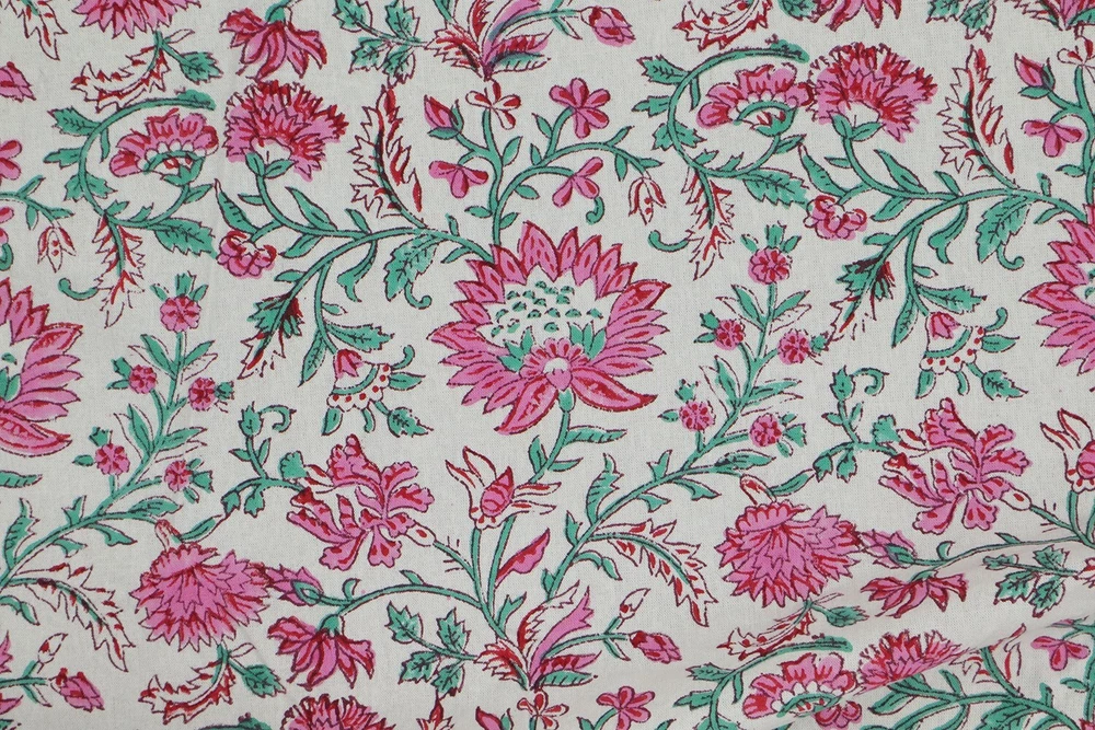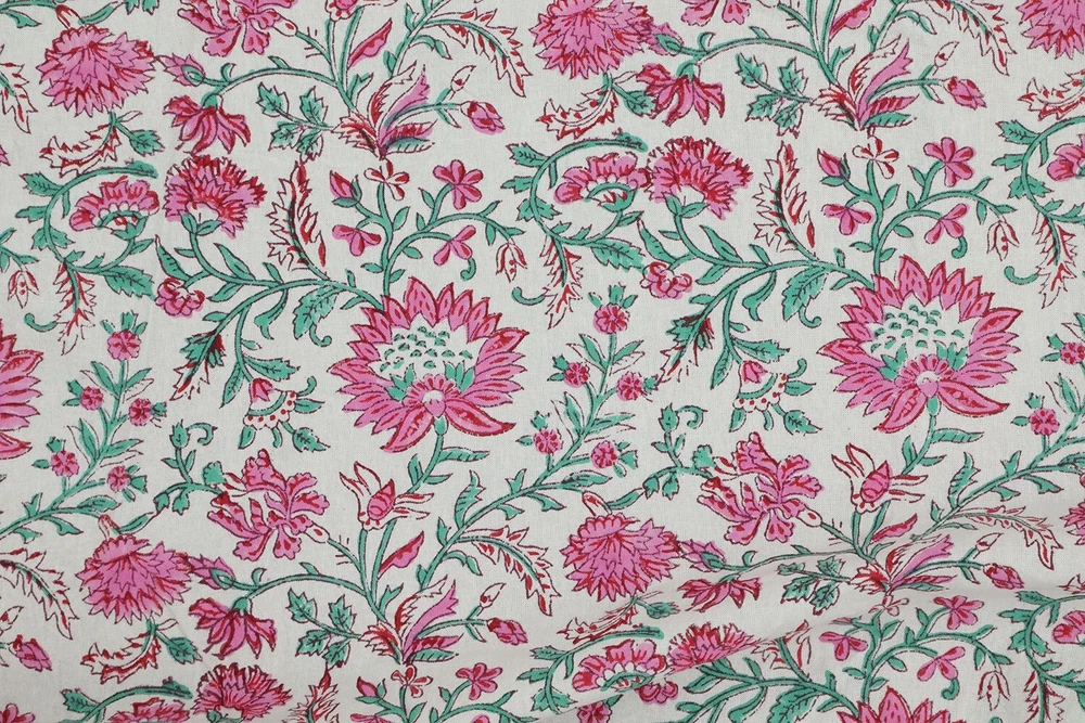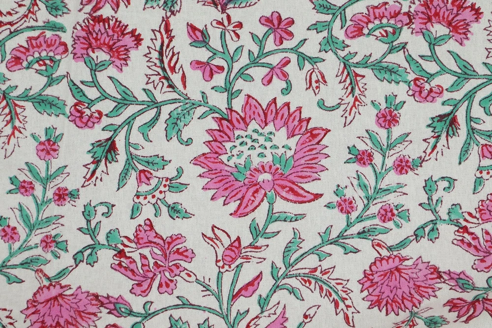 Craft your next project with Bella Pinks' Cotton Floral Hand Block Print Fabric, a true testament to traditional Indian craftsmanship. Each yard is adorned with a vibrant, multicolored floral pattern that brings a touch of nature's charm to your creation. Whether you're designing apparel, from blazers to dresses, or adding a festive touch to your home with holiday-themed crafts, this versatile fabric is an excellent choice. The fabric is light-weight, made from premium cotton, and features a hand-dyed, colorfast finish ensuring your piece maintains its allure through time and washing. With a width up to 45 inches, it's perfect for a variety of applications. Proudly handmade in India, this fabric supports an antique/vintage aesthetic that adds a timeless elegance to any project.
