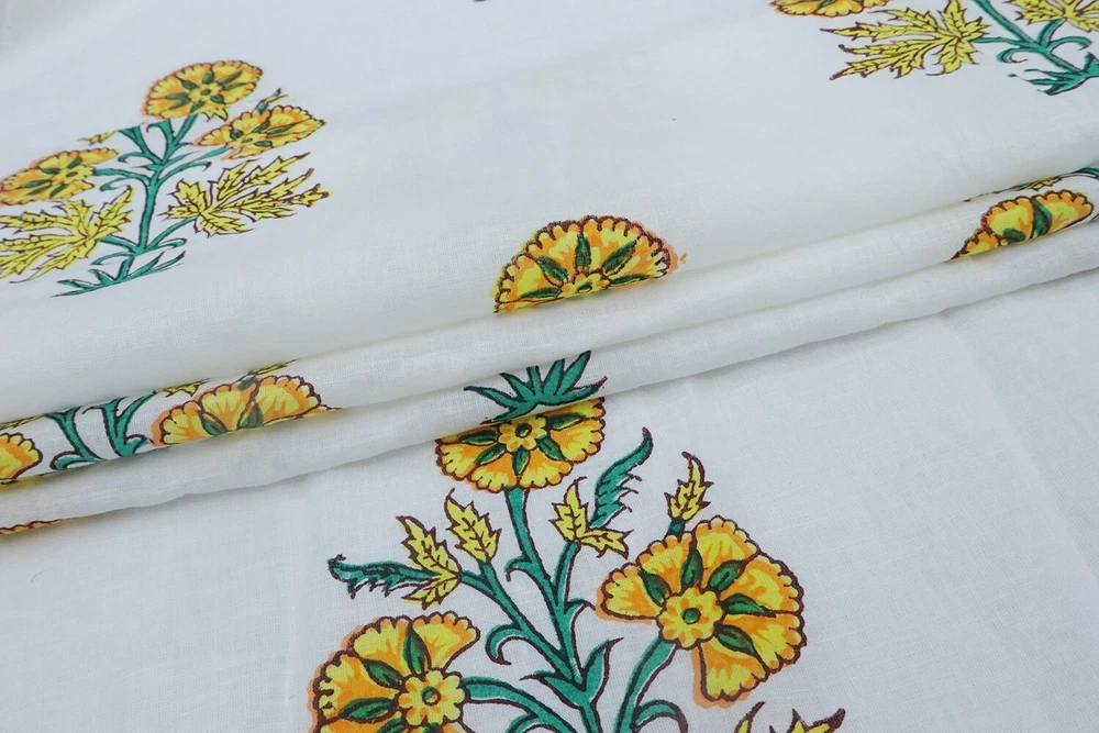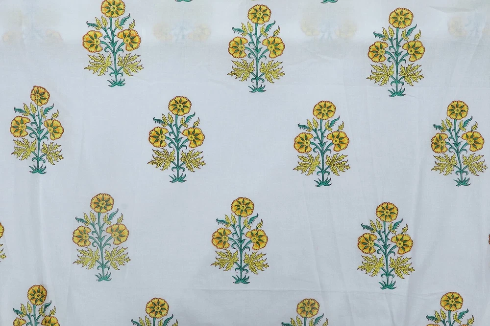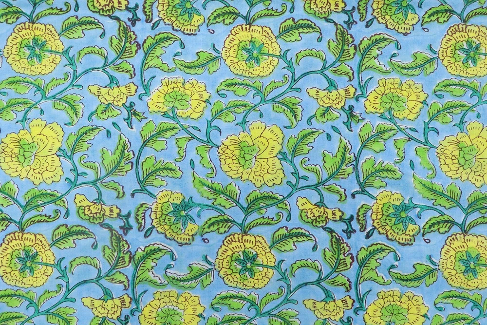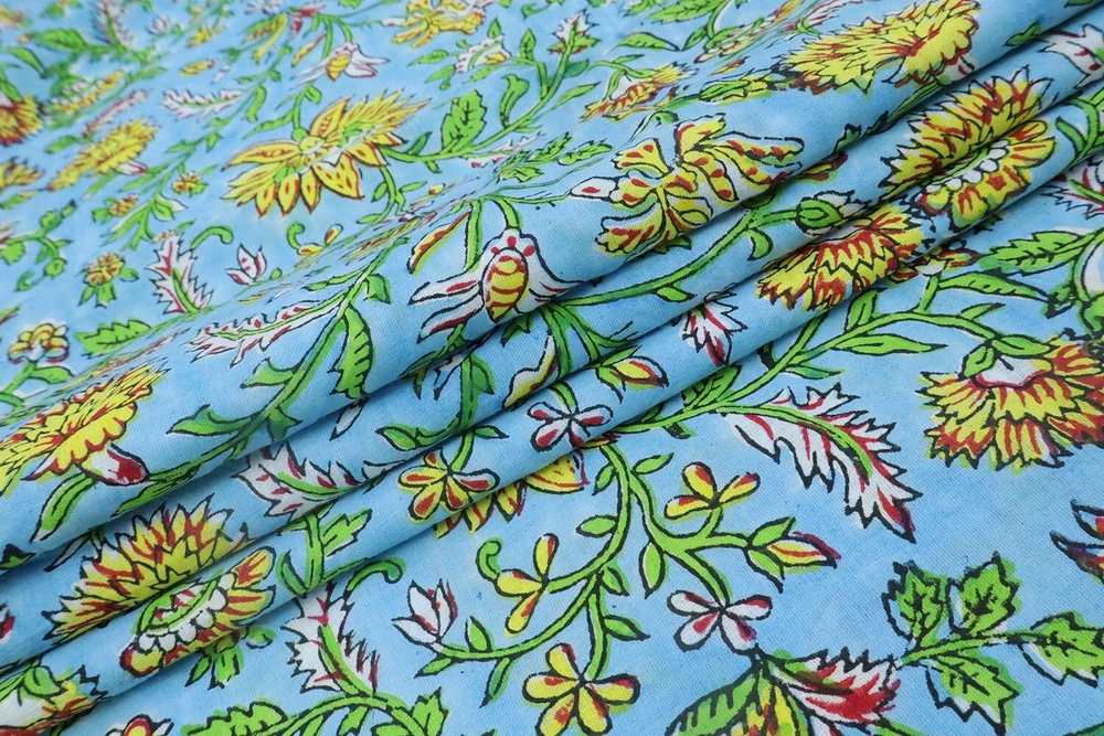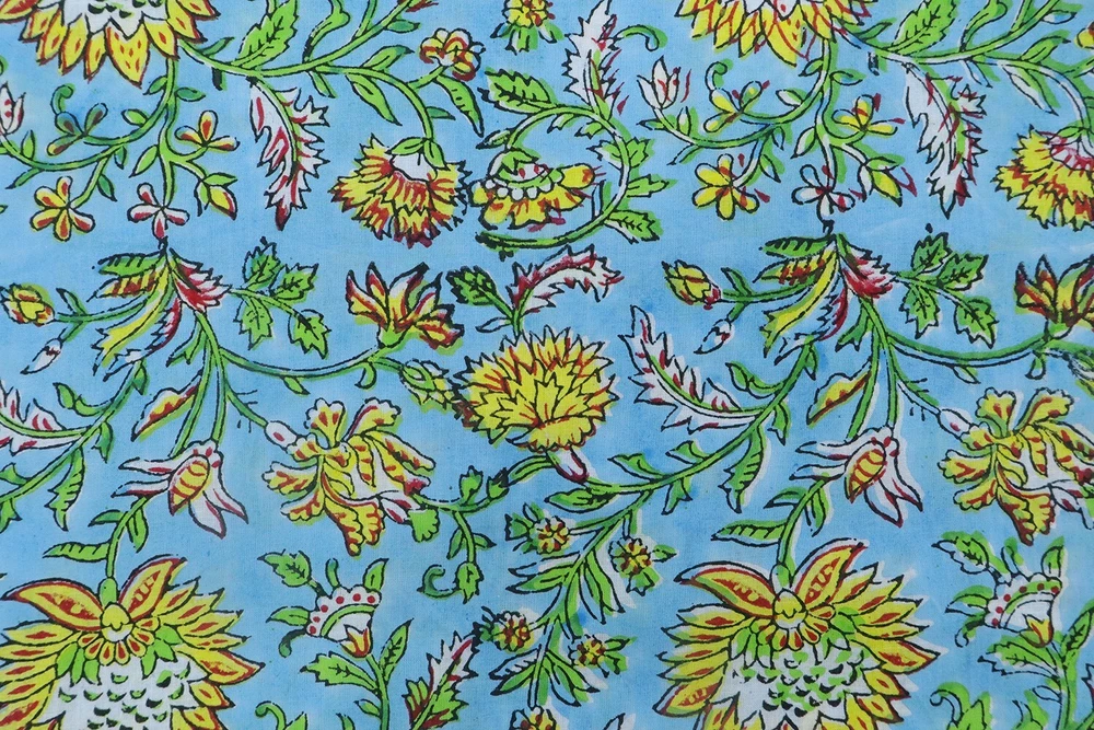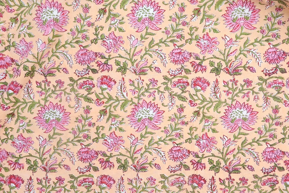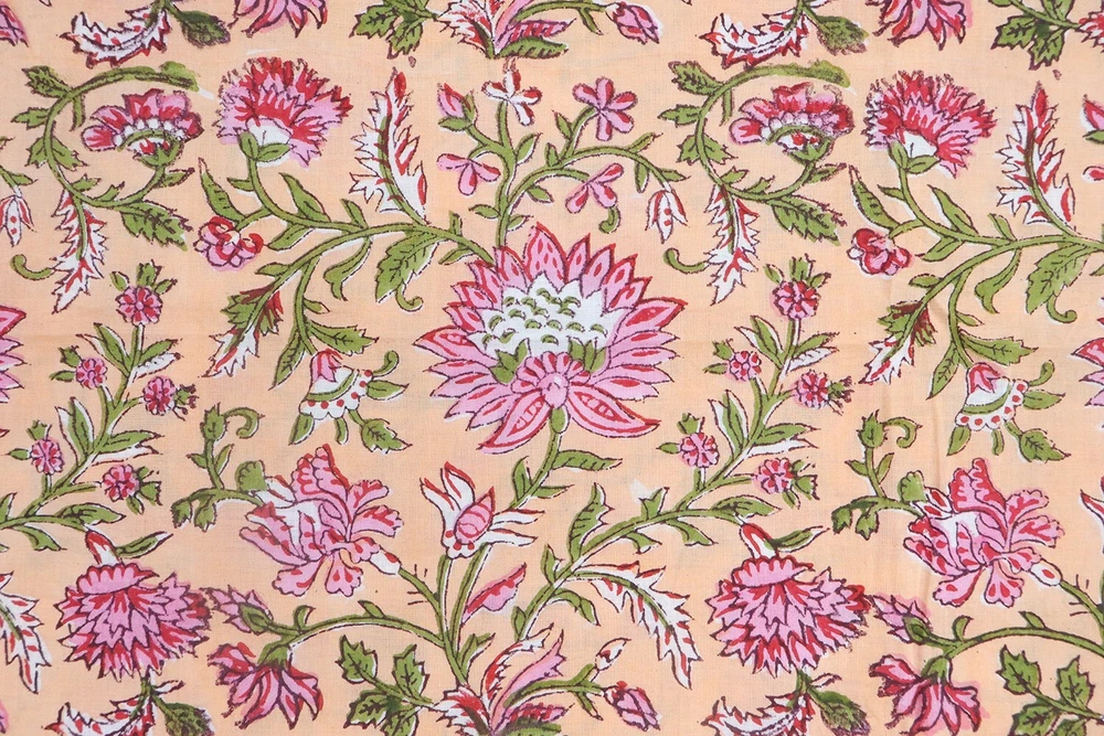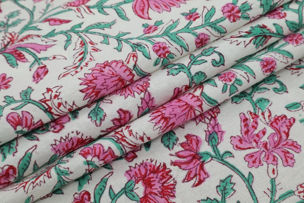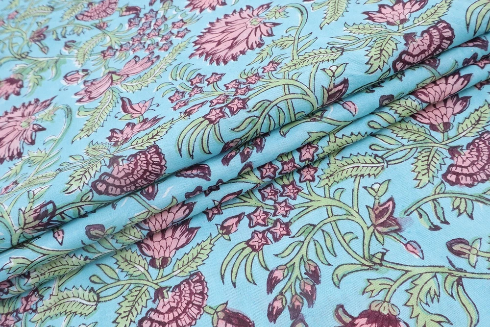 Craft your next project with Bella Pinks' Cotton Floral Hand Block Print Fabric, a true testament to traditional Indian craftsmanship. Each yard is adorned with a vibrant, multicolored floral pattern that brings a touch of nature's charm to your creation. Whether you're designing apparel, from blazers to dresses, or adding a festive touch to your home with holiday-themed crafts, this versatile fabric is an excellent choice. The fabric is light-weight, made from premium cotton, and features a hand-dyed, colorfast finish ensuring your piece maintains its allure through time and washing. With a width up to 45 inches, it's perfect for a variety of applications. Proudly handmade in India, this fabric supports an antique/vintage aesthetic that adds a timeless elegance to any project.