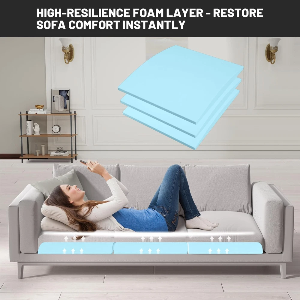 Made from high-density foam and expertly designed to restore sagging cushions, our sofa restoration cushions eliminate dents caused by prolonged use. These couch supports for sagging cushions provide firm support, making them an ideal couch cushion support for enhancing comfort and rejuvenating your sofa. Suitable for most domestic sofas, our sofa cushion support ensures your seating is both supportive and comfortable, effectively serving as the perfect couch support to maintain your furniture's appearance and functionality. 【Revitalize Your Sagging Seats】Our couch support is specially designed to restore sagging cushions and eliminate dents from prolonged use. It provides firm support, rejuvenating your sofa and elevating your comfort. 【Quick and Easy Installation】 Simply put our couch support under your cushions for an effortless fix. These couch supports for sagging cushions offer a fast, hassle-free solution to restore your sofa's original shape and support. 【High-Quality Materials】Crafted from premium 40D high-density foam, the curved arch design ensures superior firmness and stability, providing durable support that extends your sofa's lifespan and maintains its comfort. 【Customizable Fit】 Measuring 20" x 20" with a 2" center thickness, these sofa support for sagging cushions fit most household sofas and can be easily trimmed to achieve the ideal fit for your furniture. 【Warm tips】 Our sofa restoration cushion is vacuum packed and will regain its shape within a day after unpacking. If the product can not be restored to the original after opening the vacuum bag for a day, you can soak it in water, wring out the water to dry and then use it again, the restoration effect will be better.