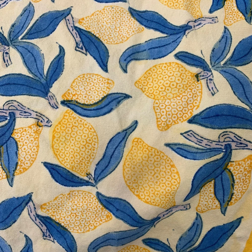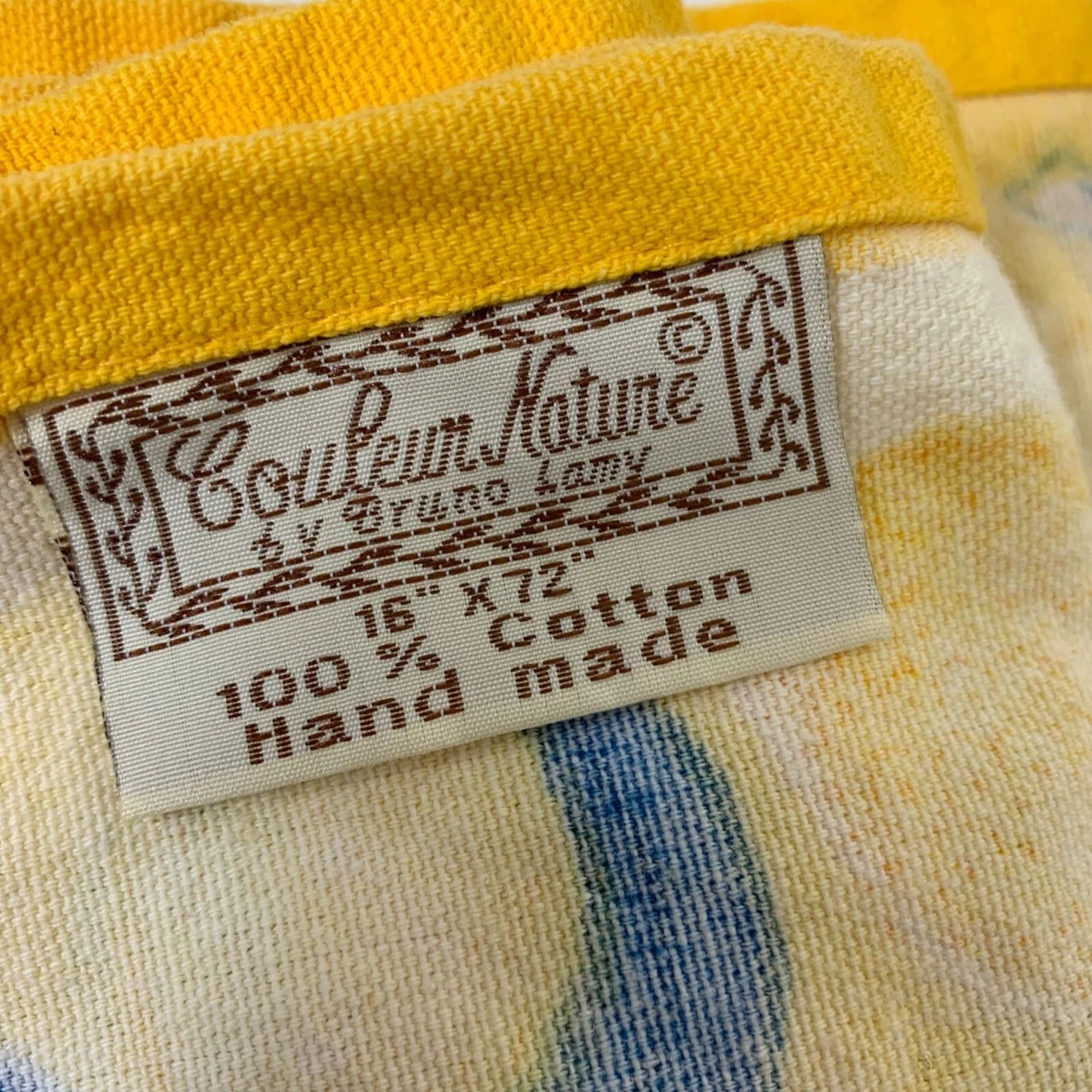 Couleur Nature by Bruno Lamy Hand Made Blue and Yellow Lemon Print Table Runner Small pink discoloration on two corners. See pics. Great preowned condition! Lemon print 100% Cotton Handmade 68” x 17” 1P25 43-5978 8 oz Tags: country, home decor, hand crafted, rustic