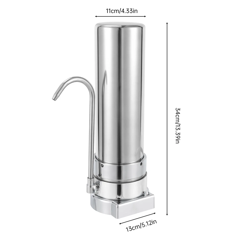 Countertop Filtration System, 304 Food-Grade Stainless Steel Description This Is Is a Highly Efficient Countertop Filter System That Can Effectively Remove Impurities and Odors from Water, Making the Water Fresh and Healthy. the Product Is Made of 304 Stainless Steel, Strong and Durable, Not Easy to Rust and Corrosion, Long Service Life. Simple Operation, Easy Installation, Compact Size, Does Not Occupy Space. It Is Not Only Suitable for Home Use but Also Can Be Applied to Enterprises, Schools, and Other Public Places to Provide People with More Pure Drinking Water. Key Features Efficient Filtration: the Countertop Filter System Is Designed with an Internal Pp Cotton Filter Layer with a Filtration Precision of 5 Microns, Which Can Effectively Filter Sediment, Rust, Hair, and Other Particulate Matter in the Water. Safe and Health: the Countertop Filter System Is Made of Lead-free 304 Stainless Steel, the Filtered Water Is Healthier and You Can Drink It with Confidence. Durable and Sturdy: It Is Made of High-quality 304 Stainless Steel, Which Is Strong and Durable and Not Easy to Rust and Corrode. in Addition, Its Plastic-plated Base Can Effectively Ensure a Longer Service Life. Small and Lightweight: This Countertop Filter System Measures Only 13.39*5.12*4.33 Inches and Weighs 2.2 Pounds. the Compact Size Does Not Take up Sink Space and Is Easy to Carry. Easy to Install: with Its Simple Structure and User-friendly Design, It Can Be Easily Hung on the Cabinet Wall or Even Placed Directly on the Floor, Making It Ideal for Users Who Do Not Want to Drill Holes in Their Cabinets. It Is Easy to Install and Remove and Can Accommodate a Variety of Faucet Models. Easy Maintenance: It Can Be Disassembled and Cleaned for Easy Maintenance. Also, Once the Filter Expires, You Can Simply Replace the Cartridge Inside Without Replacing Its Stainless Steel Housing. Energy Saving and Environmental Friendly: It Can Be Used Without Power and Does Not Produce Wastewater. Not Only Will It save You Money, but It Is a Responsible Alternative to Eliminating Millions of Plastic Water Bottles. Rotatable Spout: It Has a Rotatable Spout Design, Which Is Convenient for Taking Water in a Larger Space and Brings Unparalleled Convenience to Your Life. Customer Service: Your Satisfaction Is Our Top Priority and We Will Solve Your Problem. If You Are Not Satisfied with Our Products, You Can Contact Us and We Will Make Sure You Have a Pleasant Shopping Experience in Our Store. Details Smooth Surface: This Stainless Steel Countertop Filter System Has a Smooth Surface and Rounded Edges, Together with a Smooth Handle, Giving You a Comfortable Feel. 10-Inch Cartridge: It Has a 10-Inch Cartridge, Which Can Effectively Filter the Sediment, Moss, Hair and Other Impurities in the Water, Providing You with Safe and Healthy Water. Application It Is Suitable for Tap Water Filtration in Many Scenarios Such As Home and Office. Specification Material: 304 Stainless Steel, Plastic, Pp Color: Silver Filtration Precision: 5μm Cartridge Diameter: 25.4 Cm/10 Inches Water Flow: 0.8l/Min /0.211gpm Applicable Water Temperature: 4-38℃ Water Pressure: 0.1~0.4mpa Bottom Diameter:13cm/5.12in Top Diameter: 11cm/4.33in Height: 34cm/13.39in Package Size: 14*14*34cm/5.5*5.5*13.4 Inch Net Weight: 1kg/2.2 Lb Gross Weight: 1.5kg/3.3 Lb Package Included 1* Countertop Filter System All Accessories for Use Notes Please Clean the Inside of the Faucet Before Installation. It Is Recommended to Replace Every 8-12 Months,the Exact Time Depending on the Local Water Quality. Please Allow the Slight Color Difference Caused by the Shooting Light and the 1-3 Cm Error Due to Manual Measurement, and Make Sure You Do Not Mind Before Ordering. Payment Delivery details Terms of sales About us Contact us Payment We accept ebay payment 。 Fees such as import duties, taxes are not included in the item price or shipping costs. These charges are the buyer's responsibility. Delivery details Shipping: 2-9 working days to: USA Terms of sales We maintain high standards of excellence and strive for hundred percent customer satisfaction. Feedback is very important to us. We hope that you contact us immediately before you give neutral or negative feedback, so that we can address your concerns. It is impossible to address issues if we do not know about them! About us Your satis faction is our ultimate goal. We work hard to earn your trust and future business. Our certified technicians have tested each item before shipping. The unit comes with 1 year limited warranty on all manufacturing defects. a) If you receive a defective item, you may return it or ask for a discount. Please contact us within 14 days after you receive the package. b) What you returned must be intact and in its original packaging as re? u. Customer is responsible for shipping costs of the returned item. c) We will cover the cost of shipping back t with the shipping rate indicated in the registration page. We will send you a new unit or refund the full payment you paid. Thank you. Contact us Business Hour Business Hour: Monday To Friday: 8:30 AM to 5:00 PM (Beijing China time) Due to time zones, our reply to your questions may not be immediately. But within above working time, we will reply your email within 24 hours. If it's non-workdays, please kindly be patient and wait till Monday. Please contact us with ebay message. Please feel free to contact us if you have any questions. Monday To Friday: 8:30 AM to 5:00 PM (Beijing China time) Due to time zones, our reply to your questions may not be immediately. But within above working time, we will reply your email within 24 hours. If it's non-workdays, please kindly be patient and wait till Monday. Please contact us with ebay message. Please feel free to contact us if you have any questions.